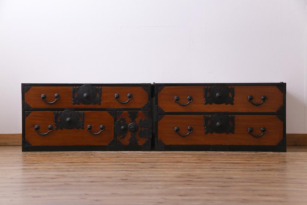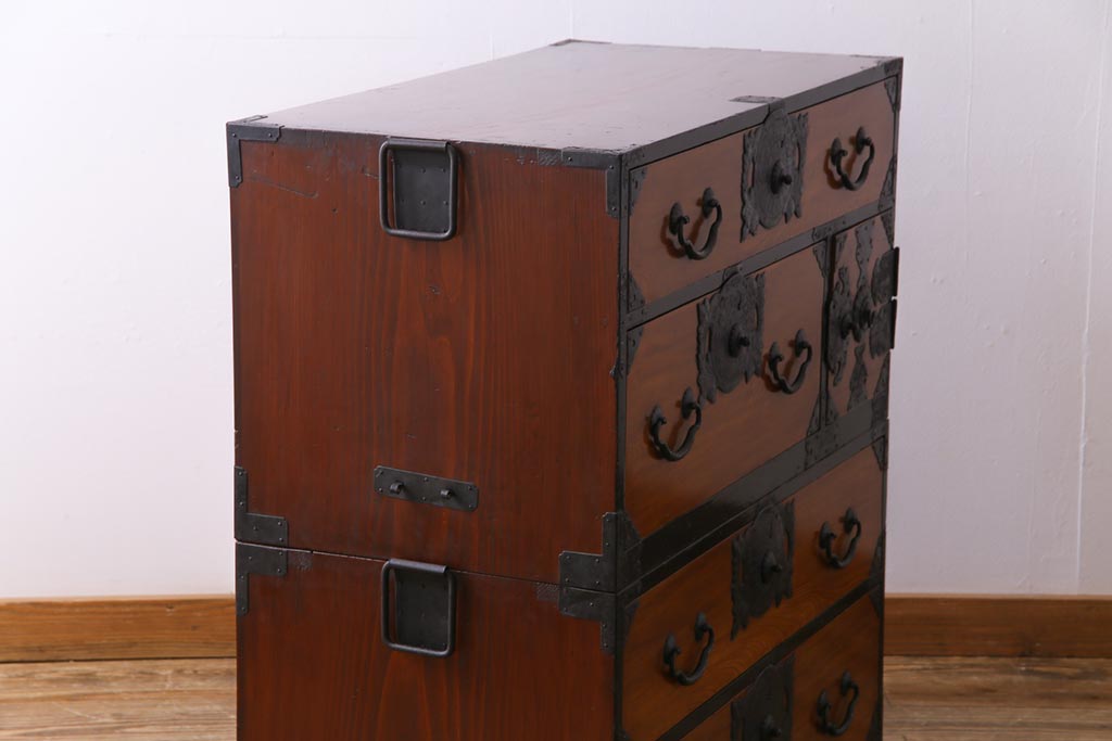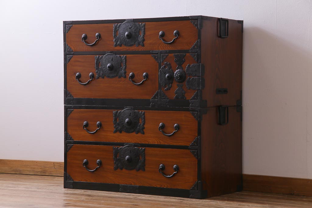 アンティーク家具 和製アンティーク 前面ケヤキ材 味わいと存在感を放つ仙台重ね箪笥(仙台箪笥、衣装箪笥)