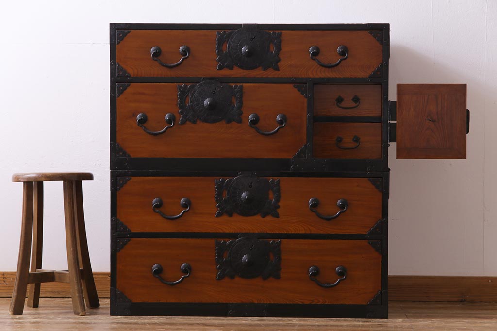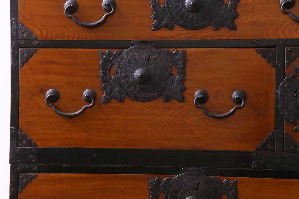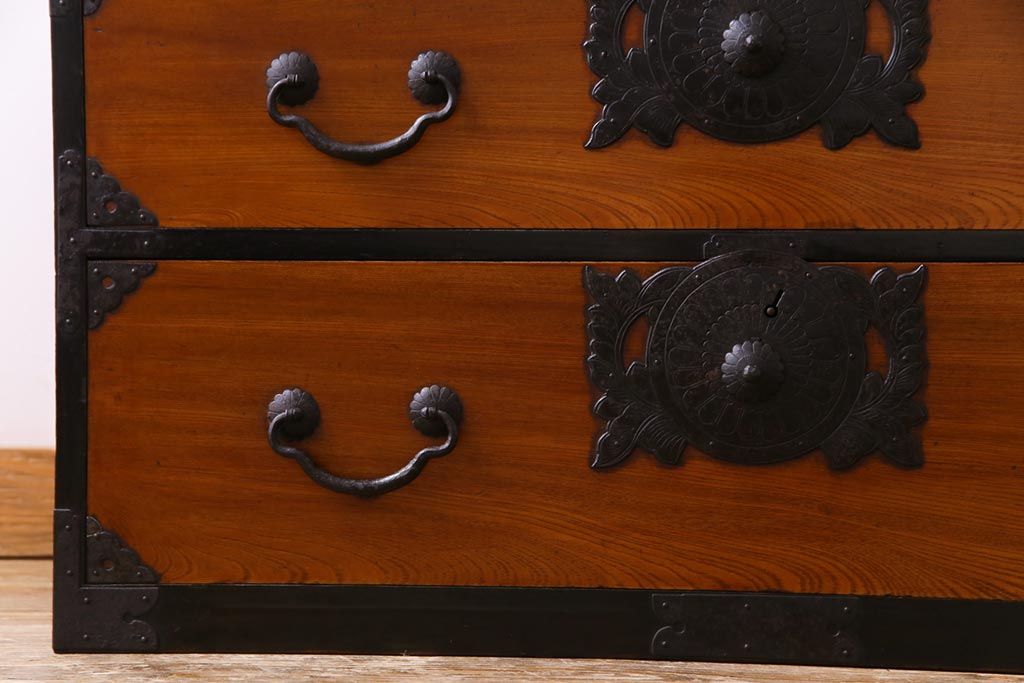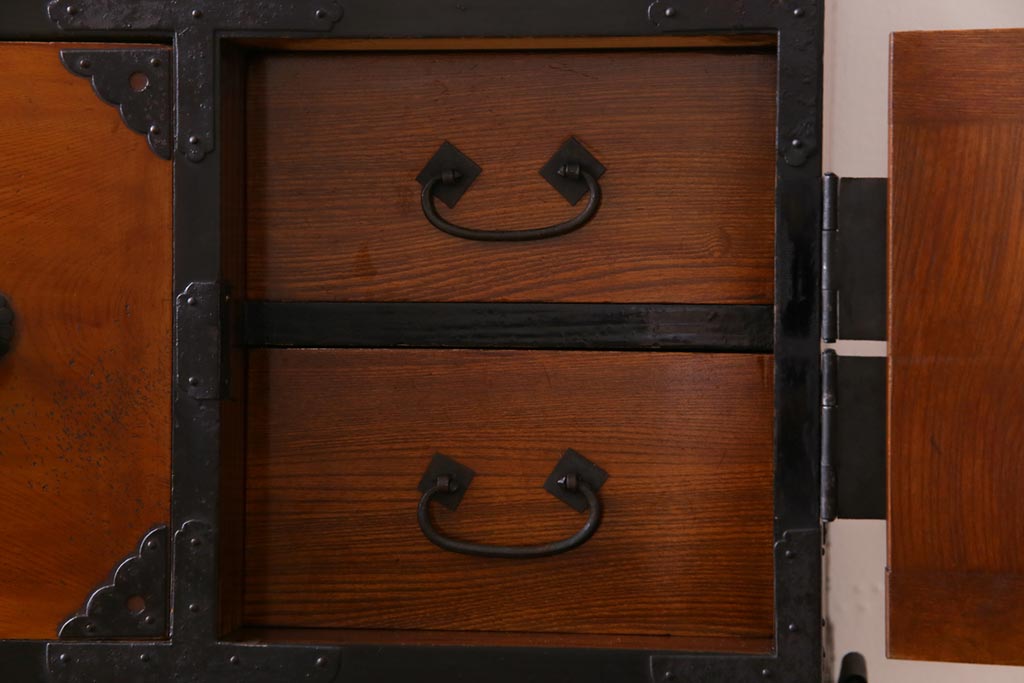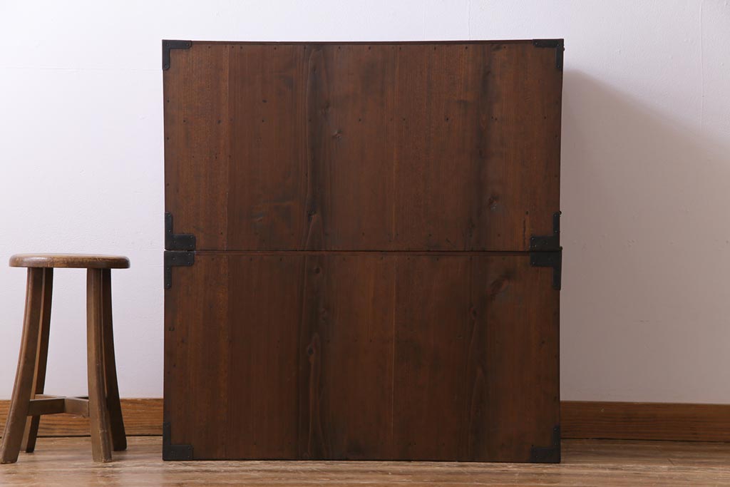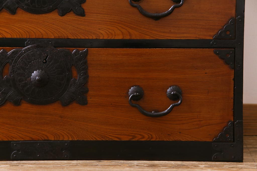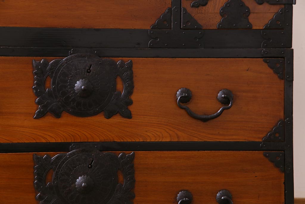 和箪笥> 衣装箪笥 > アンティーク家具 和製アンティーク 前面ケヤキ材 味わいと存在感を放つ仙台重ね箪笥(仙台箪笥、衣装箪笥)