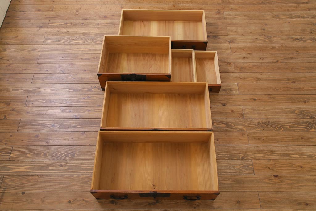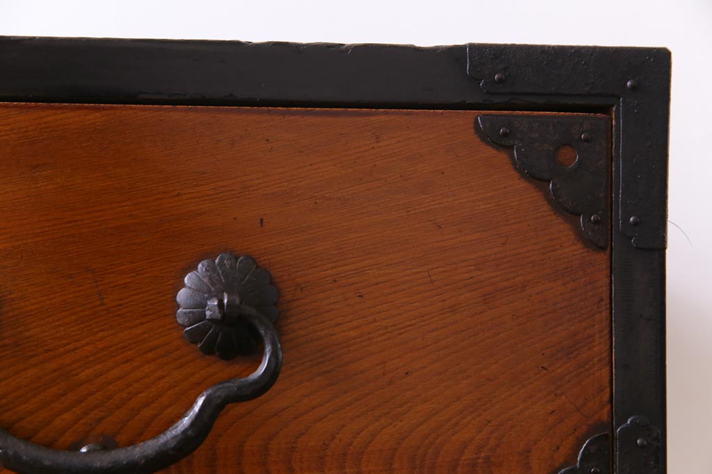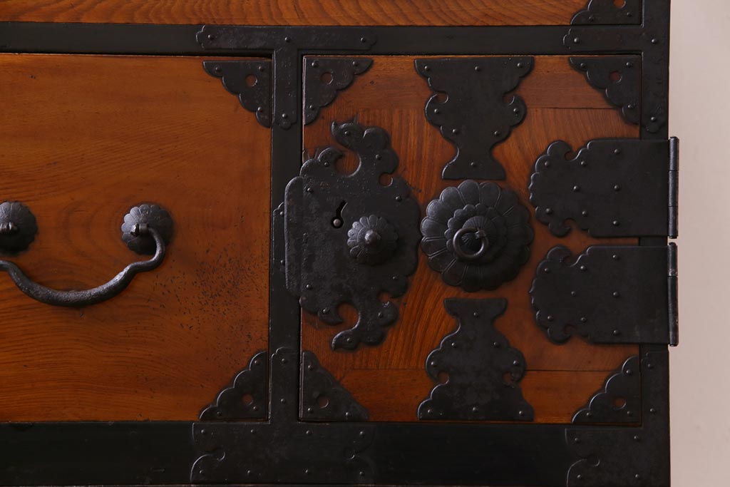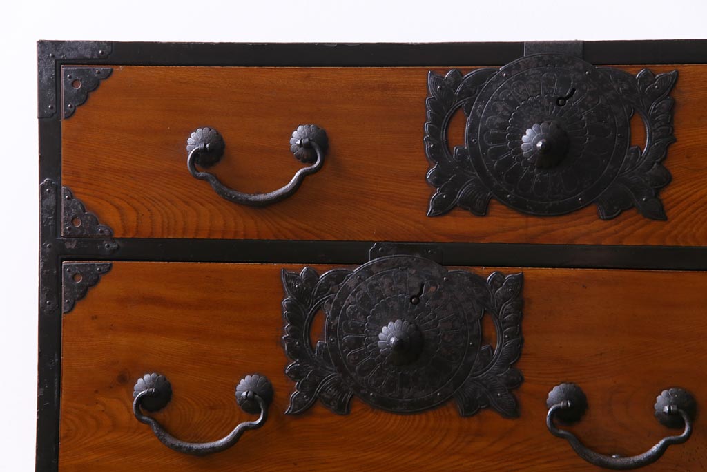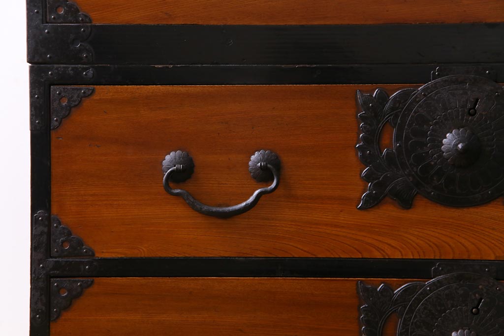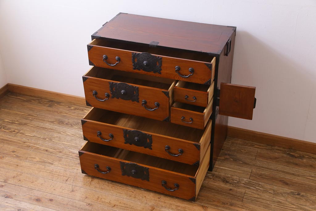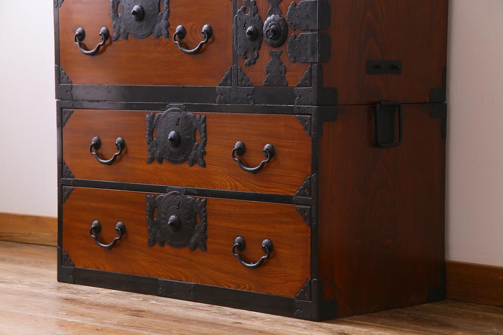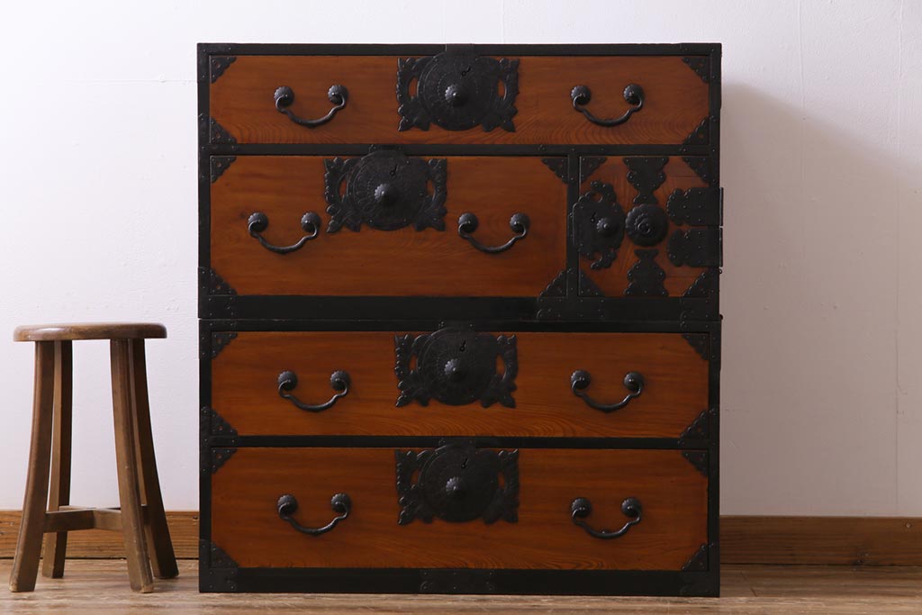 和箪笥> 衣装箪笥 > アンティーク家具 和製アンティーク 前面ケヤキ材 味わいと存在感を放つ仙台重ね箪笥(仙台箪笥、衣装箪笥)
