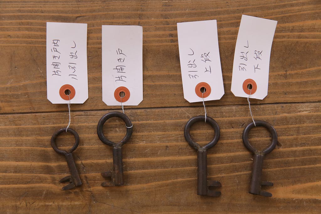 鍵は付属します。画像にありますように、袋に入れお付けします。スムーズに動くように調整していますが、あくまでも古いものや中古品ですので、長期の使用保証は出来かねます。ご購入後不具合が発生した場合は、当店でサポートさせていただきますので、お気軽にご相談くださいませ。