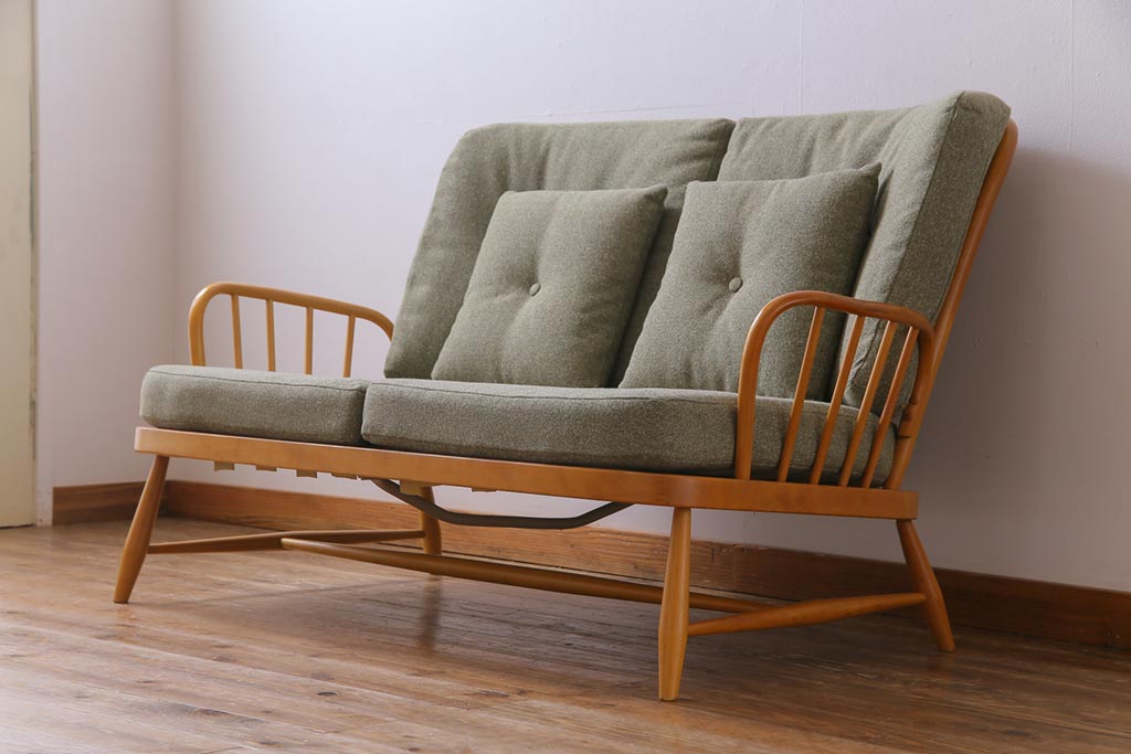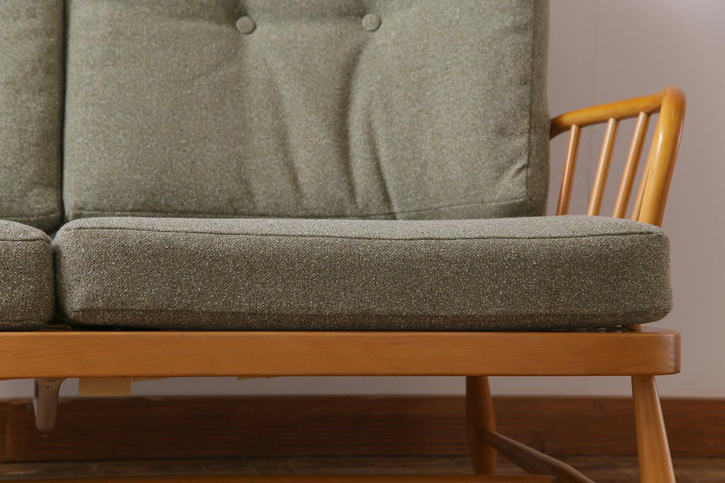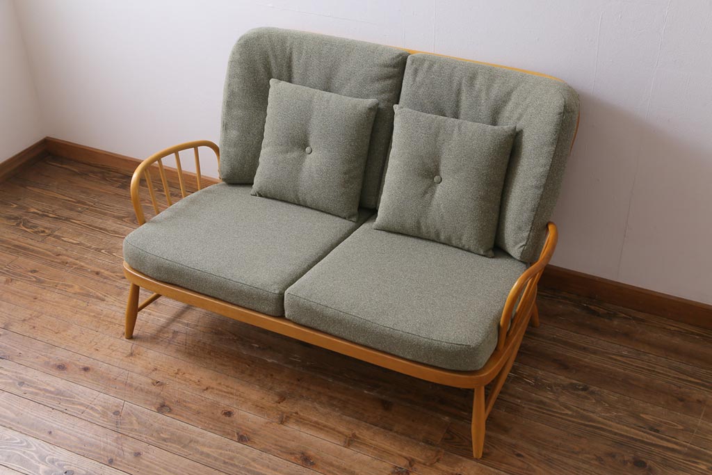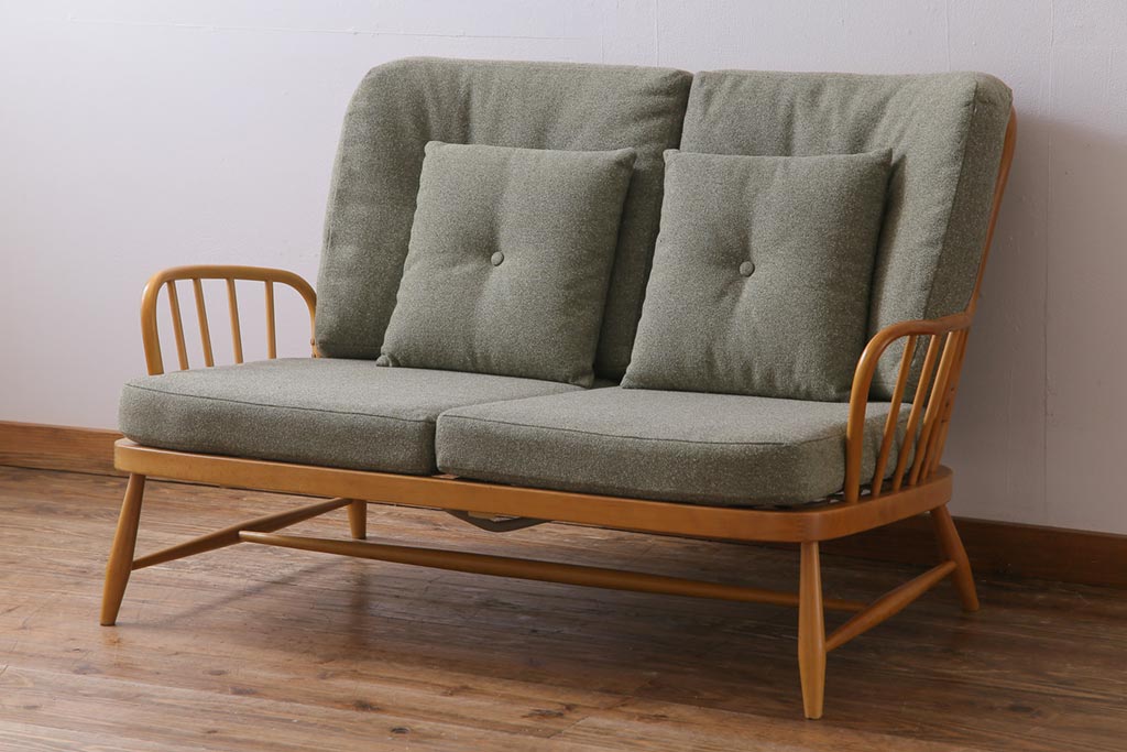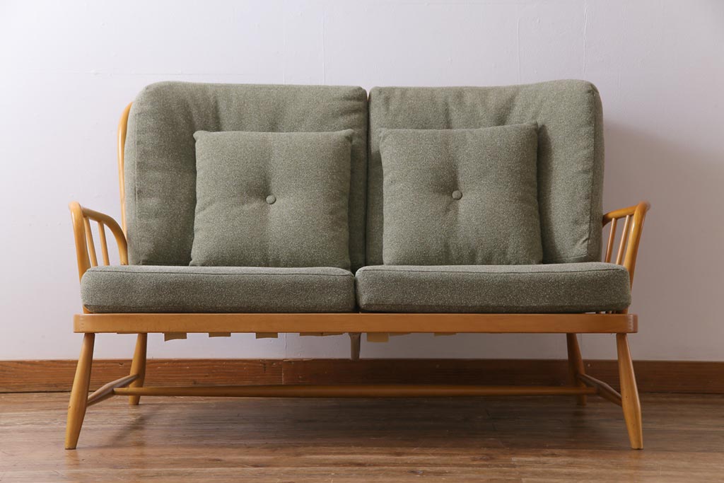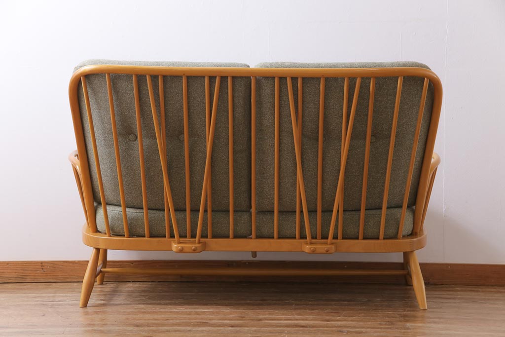ヴィンテージ家具 イギリスビンテージ ERCOL(アーコール) ジュビリー(Jubilee) グリーンのファブリックが優しげな二人掛けソファ