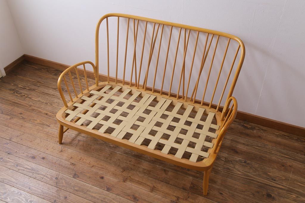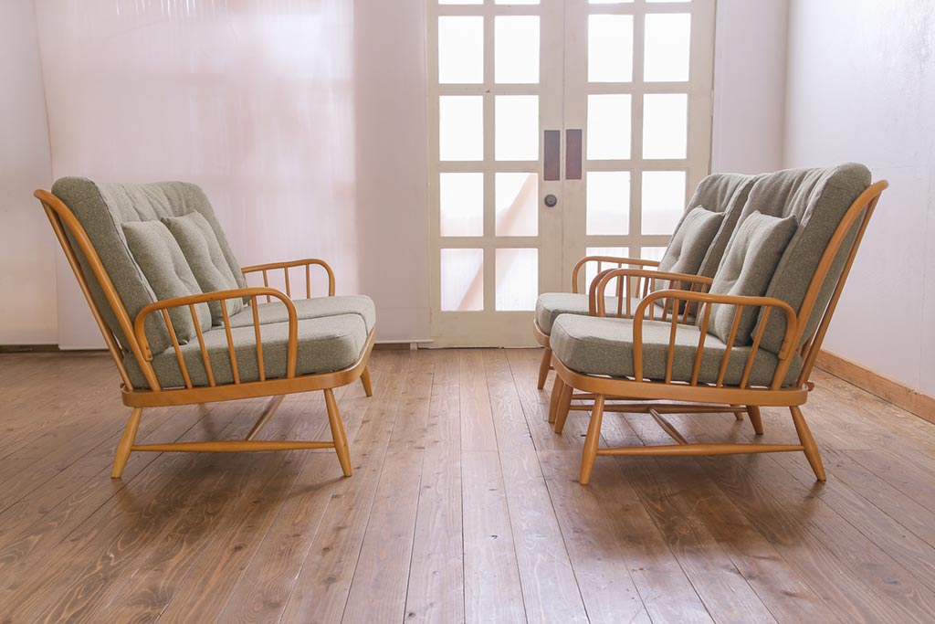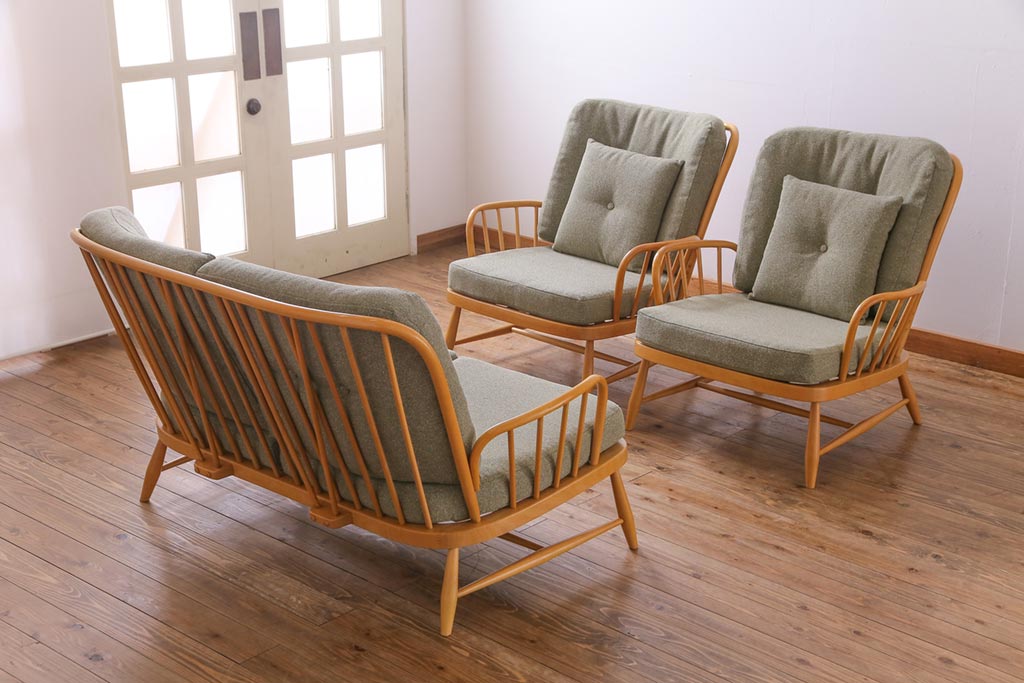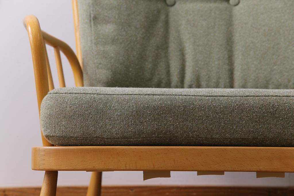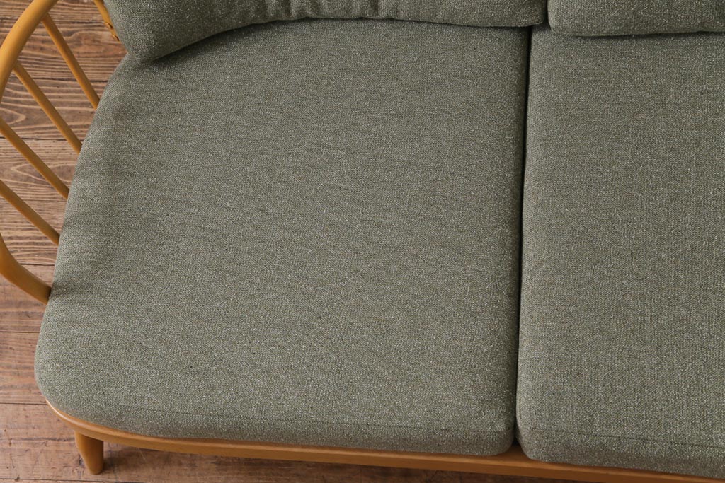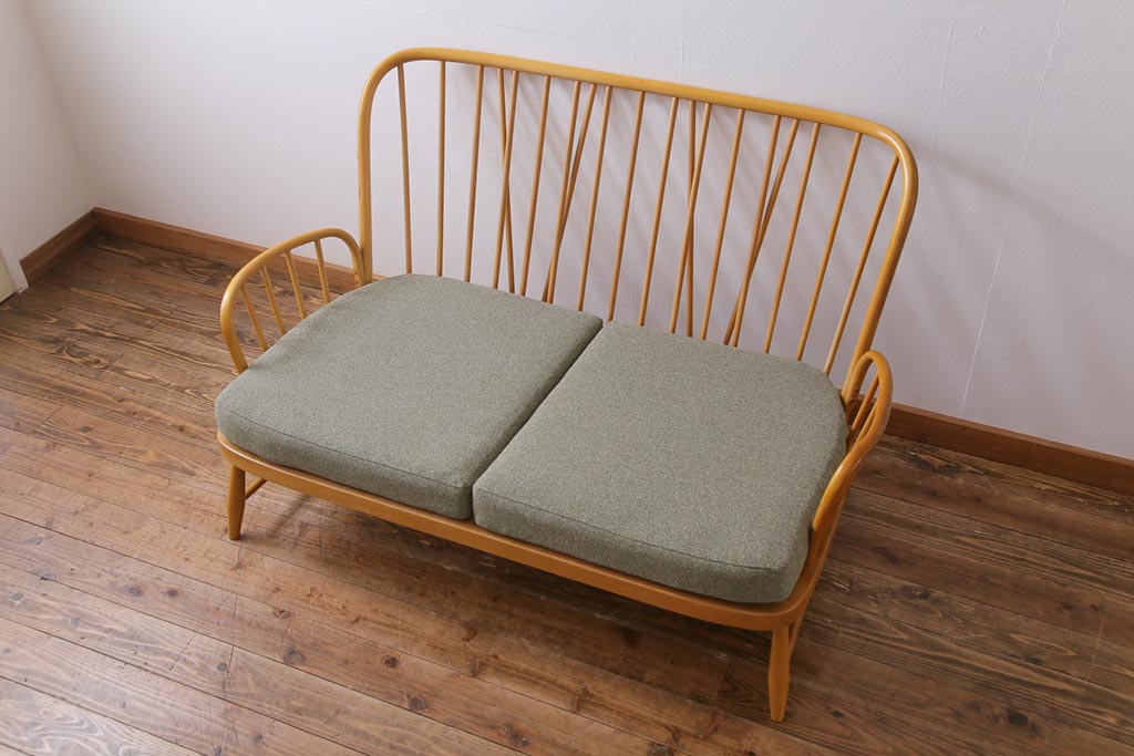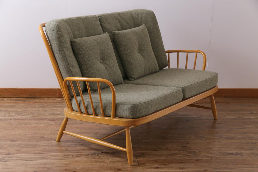 ヴィンテージ家具 イギリスビンテージ ERCOL(アーコール) ジュビリー(Jubilee) グリーンのファブリックが優しげな二人掛けソファ