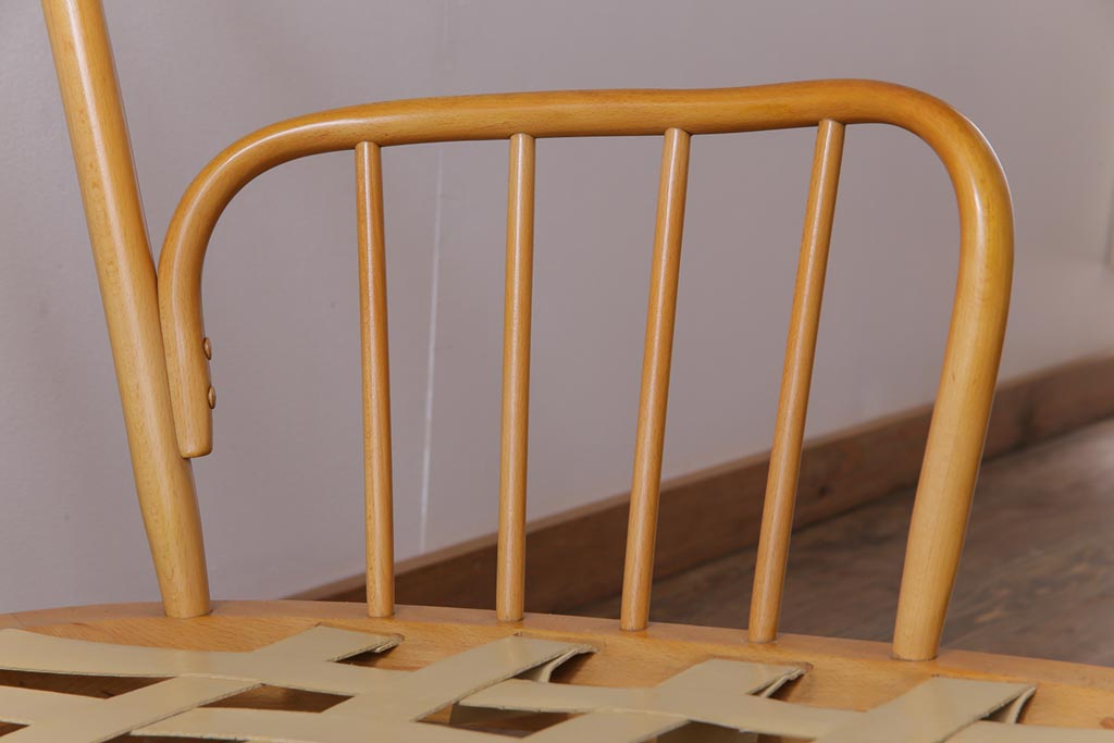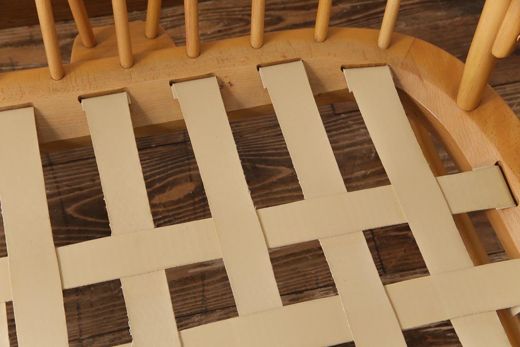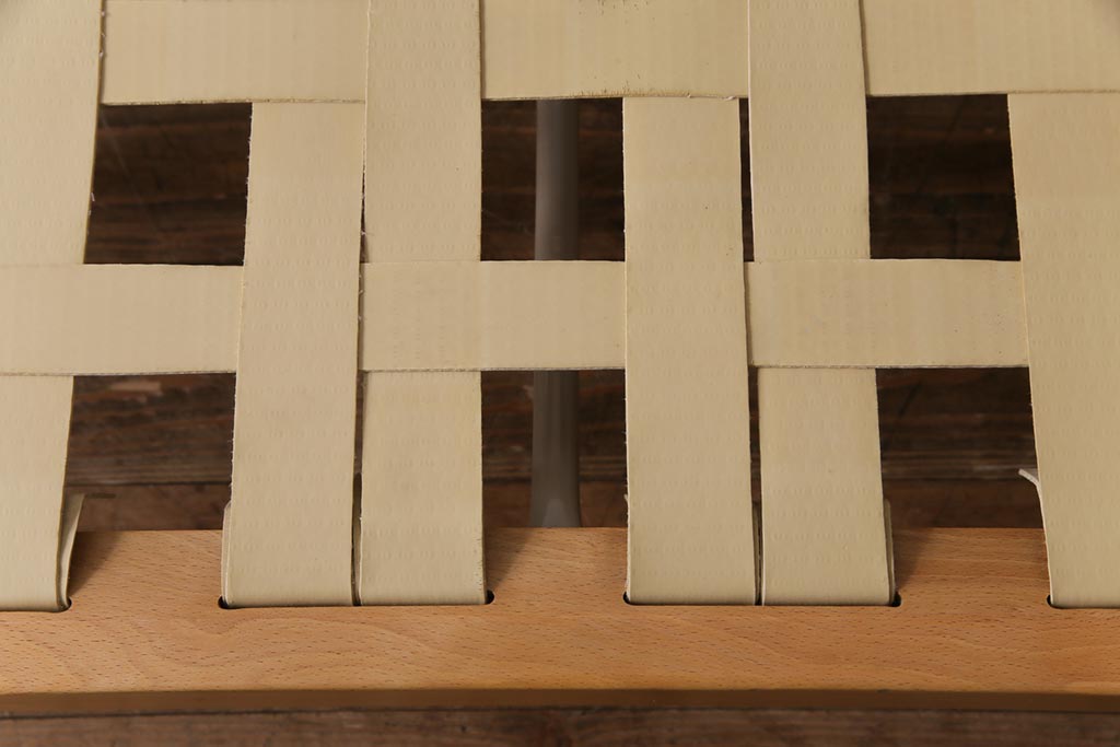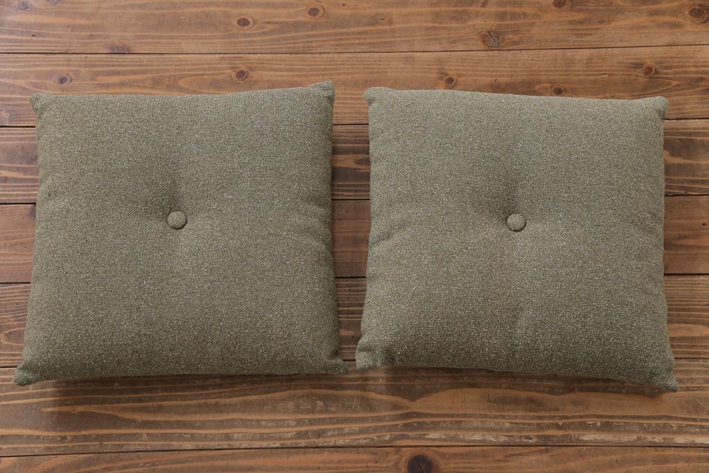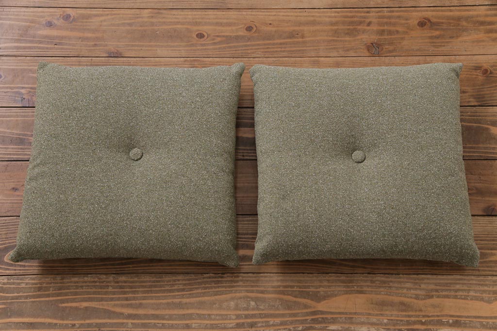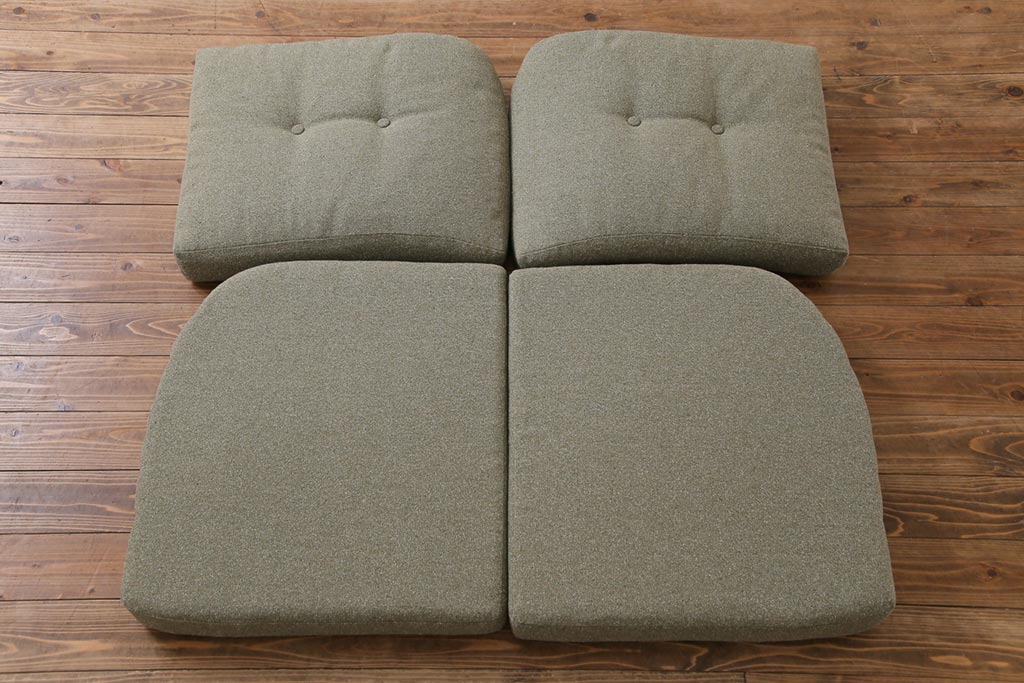 座面生地とクッション(座面内スポンジ)は当店にて張り替えておりますので、しっかりとしております。