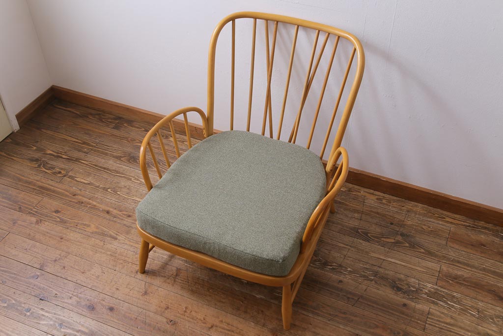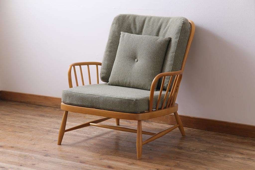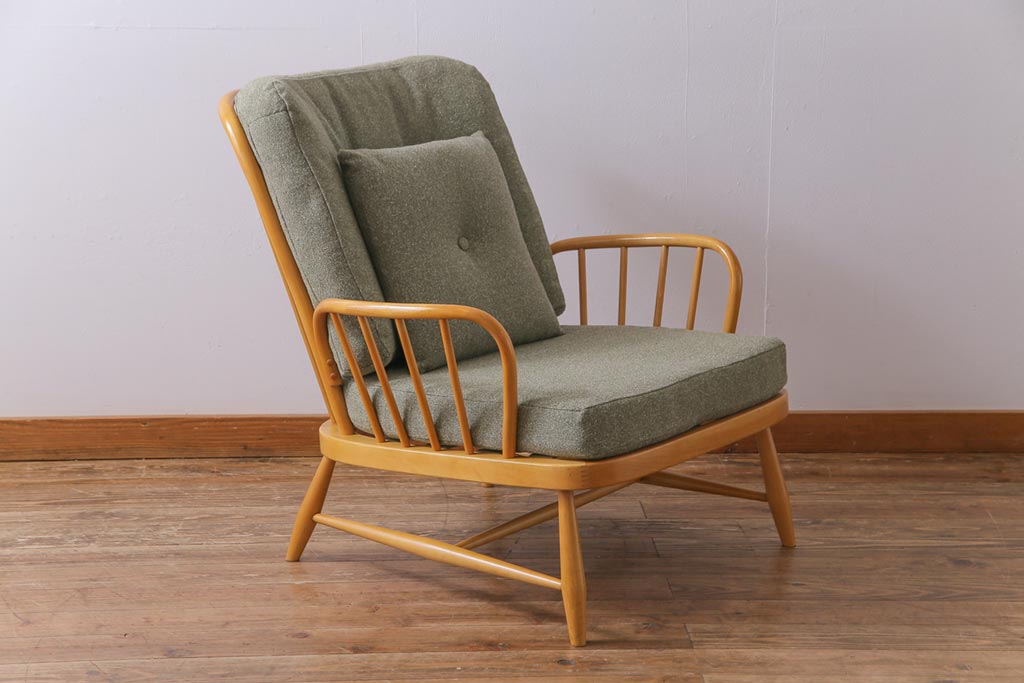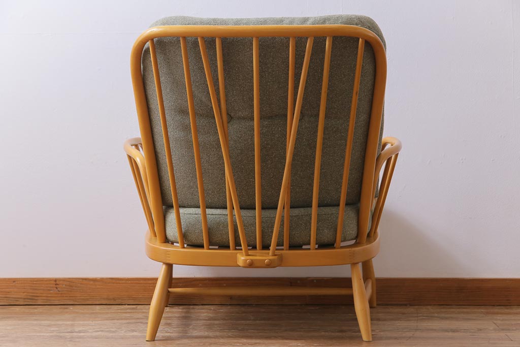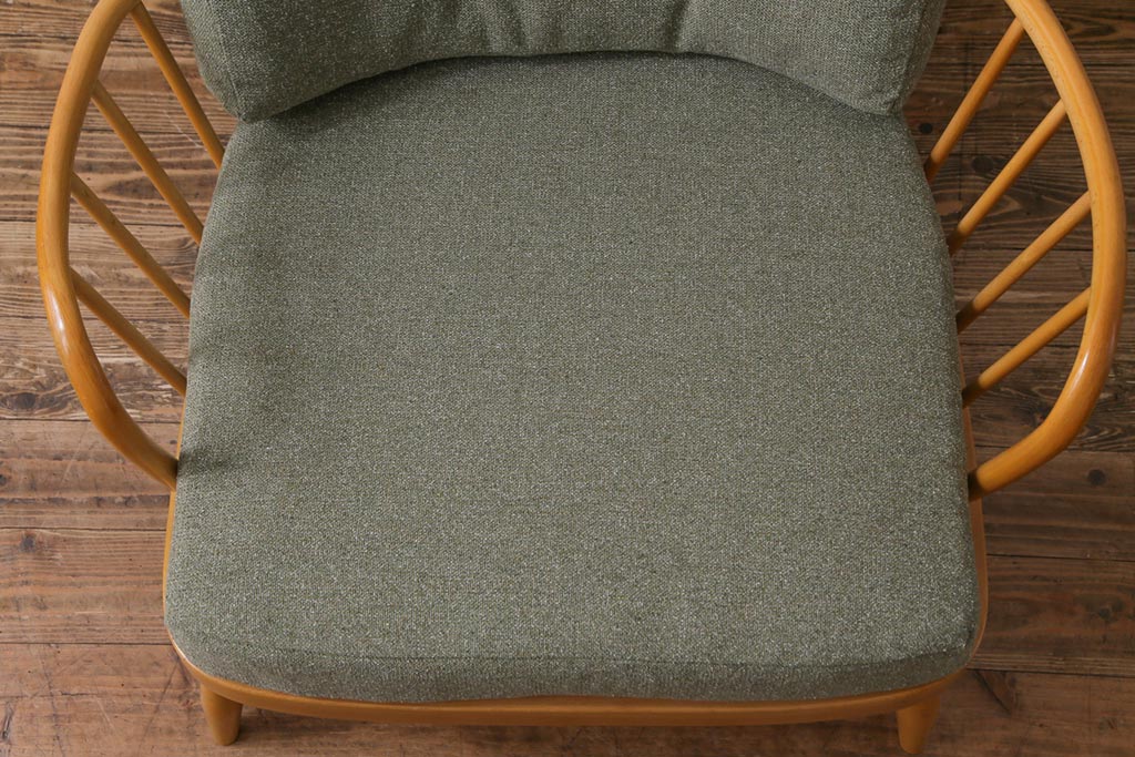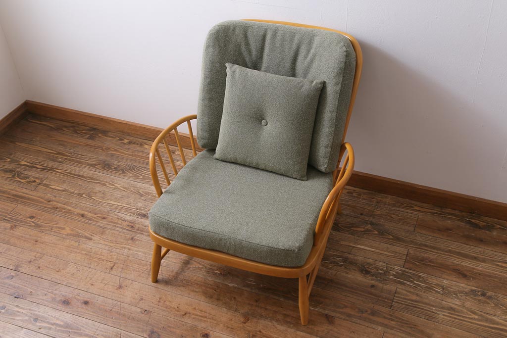 ヴィンテージ家具 イギリスビンテージ ERCOL(アーコール) ジュビリー(Jubilee) グリーンのファブリックが優しげな一人掛けソファ(1)