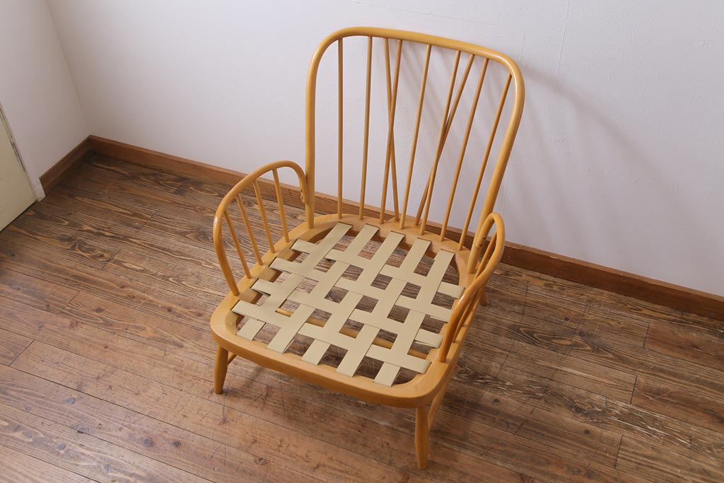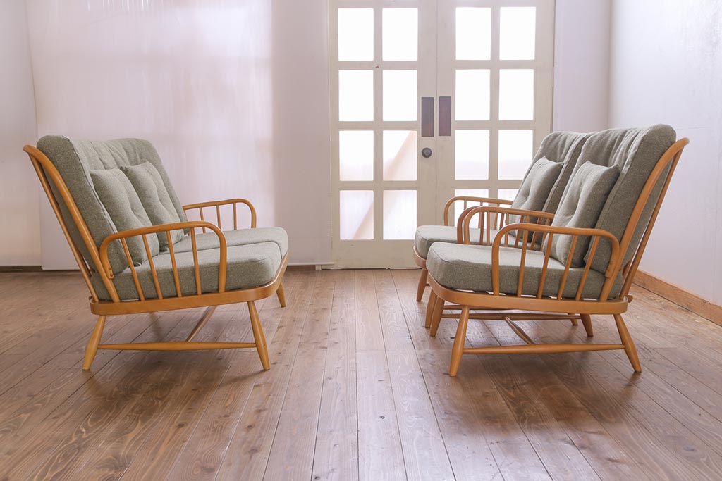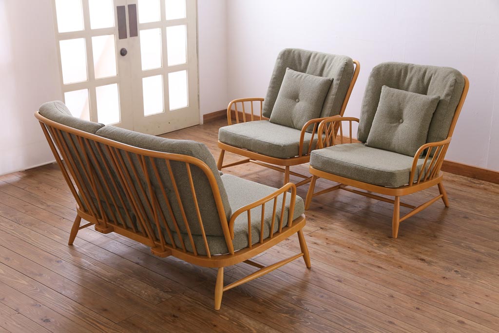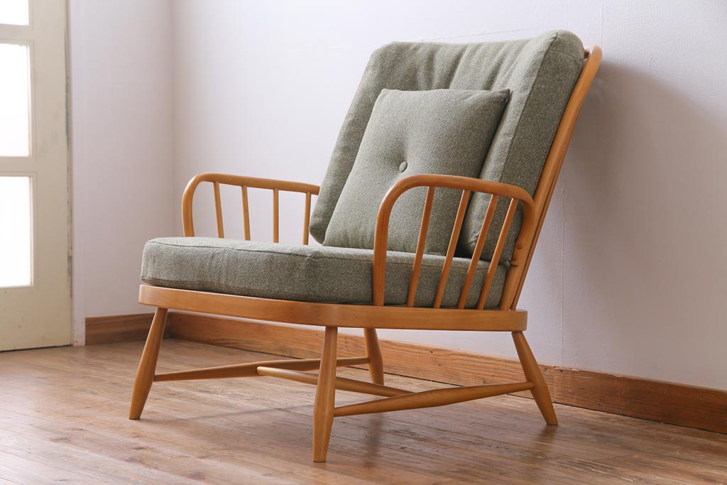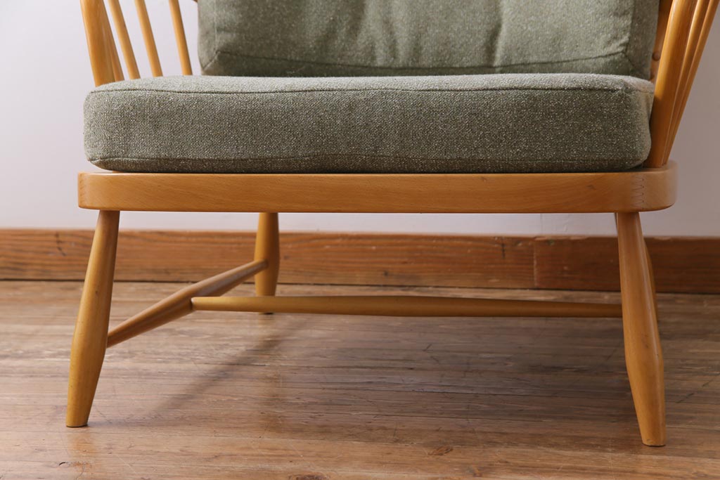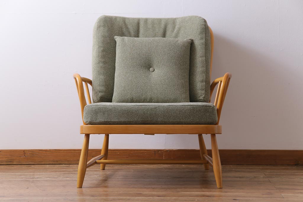 ラフジュ工房> 椅子・ベンチ> アームチェア > ヴィンテージ家具 イギリスビンテージ ERCOL(アーコール) ジュビリー(Jubilee) グリーンのファブリックが優しげな一人掛けソファ(1)