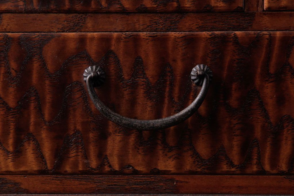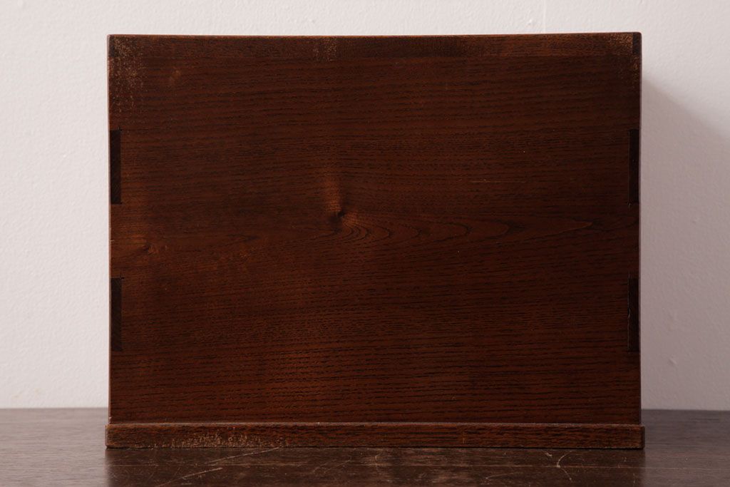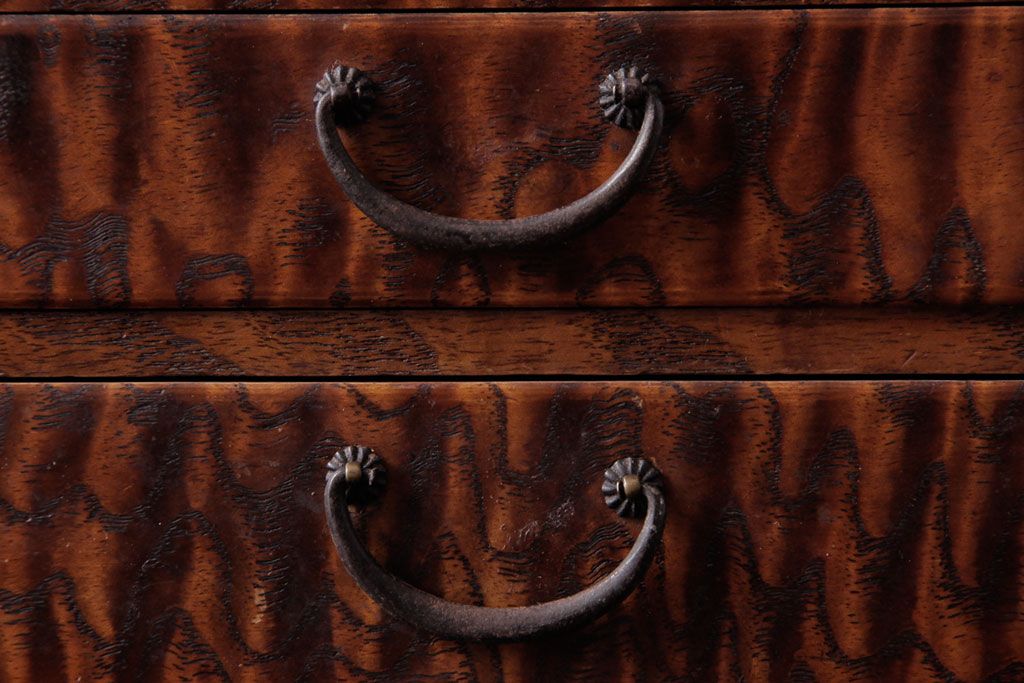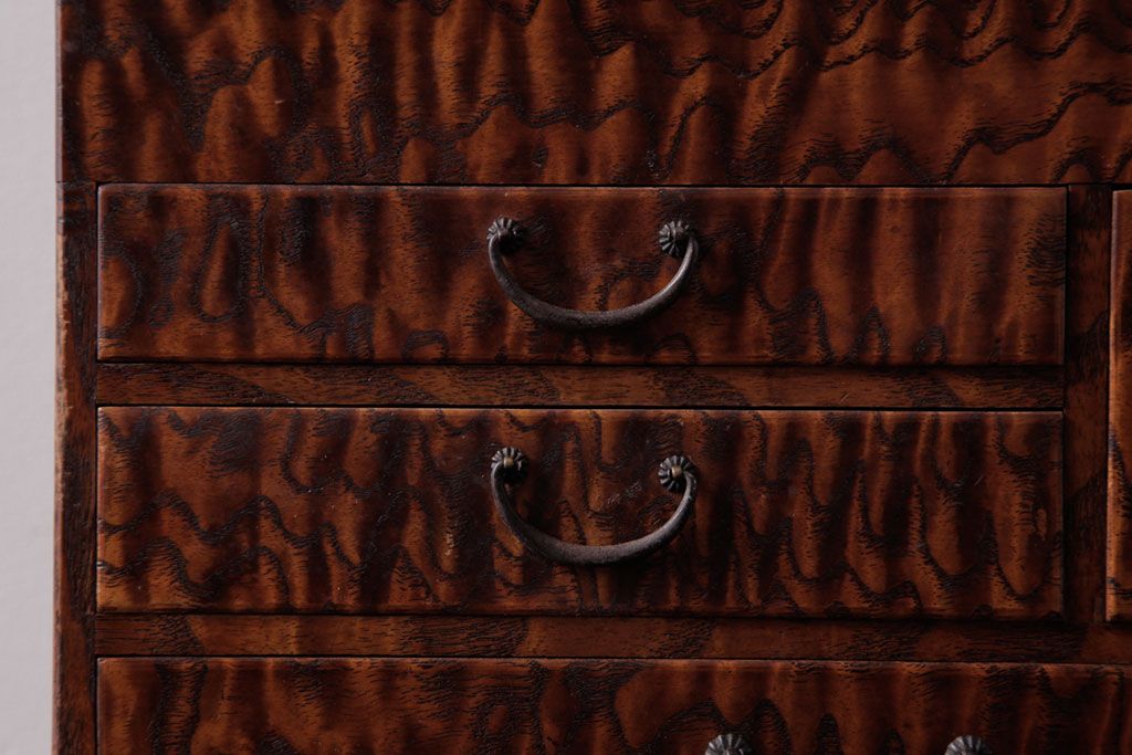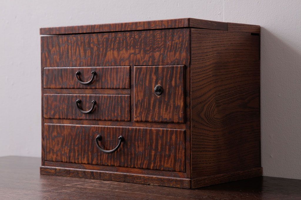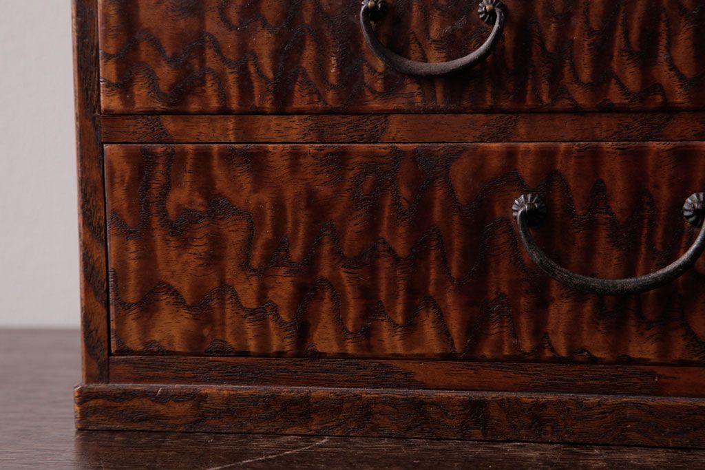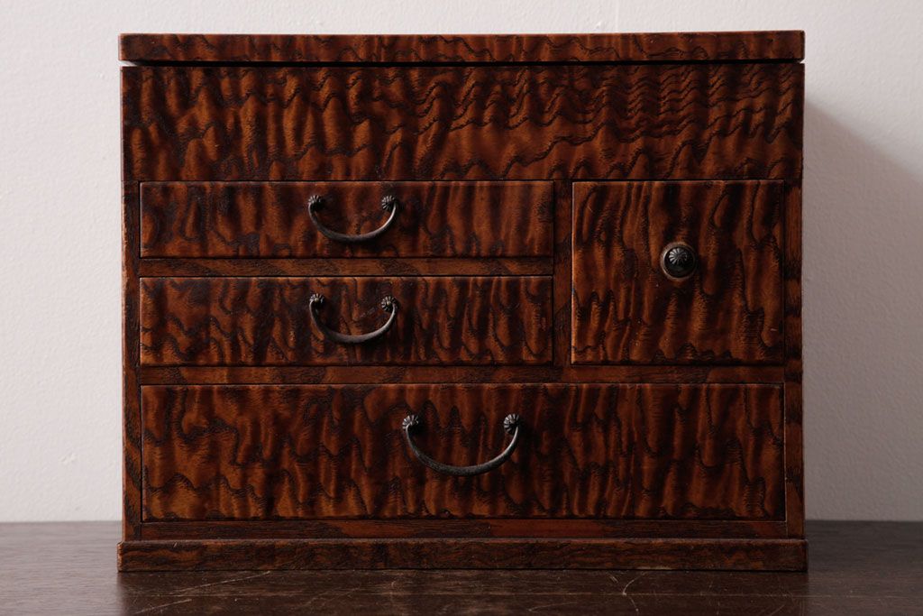 アンティーク雑貨 和製アンティーク タモ材 独特の杢目が存在感のあるソーイングボックス(裁縫箱、小引き出し)