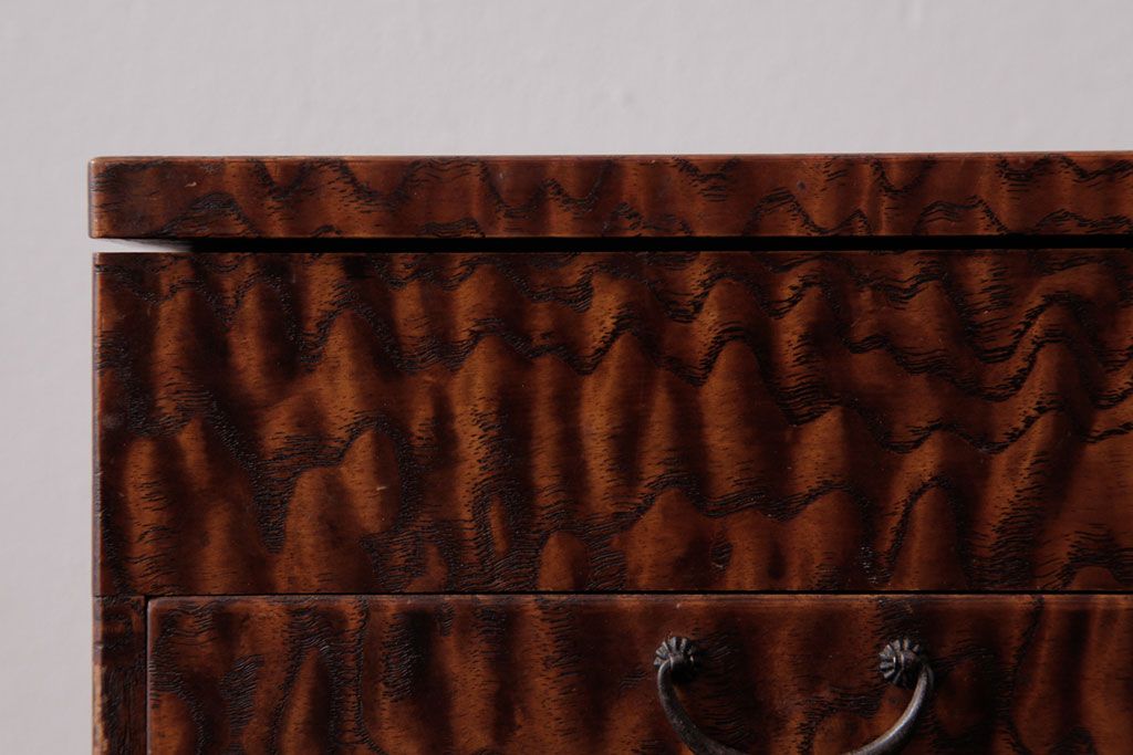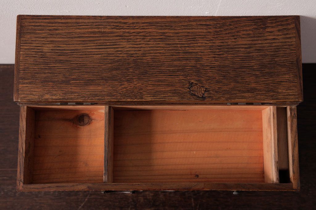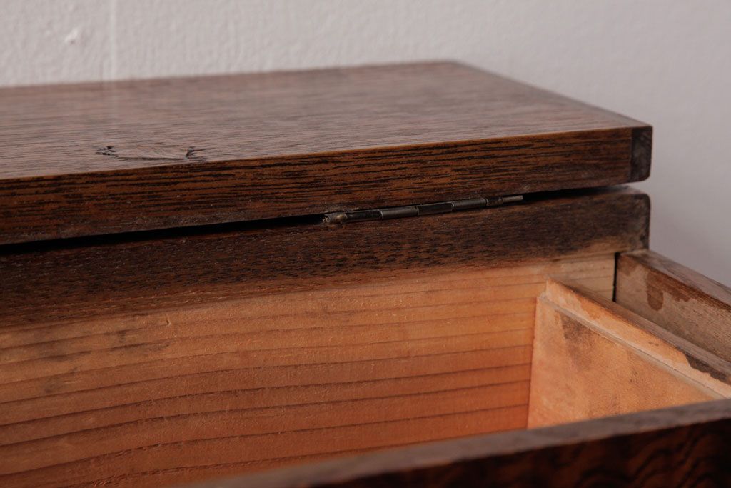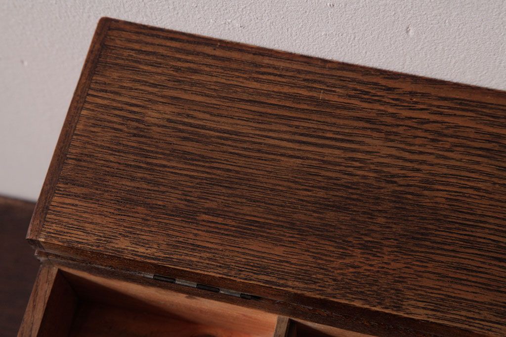 ラフジュ工房> 小物収納・トランク > アンティーク雑貨 和製アンティーク タモ材 独特の杢目が存在感のあるソーイングボックス(裁縫箱、小引き出し)