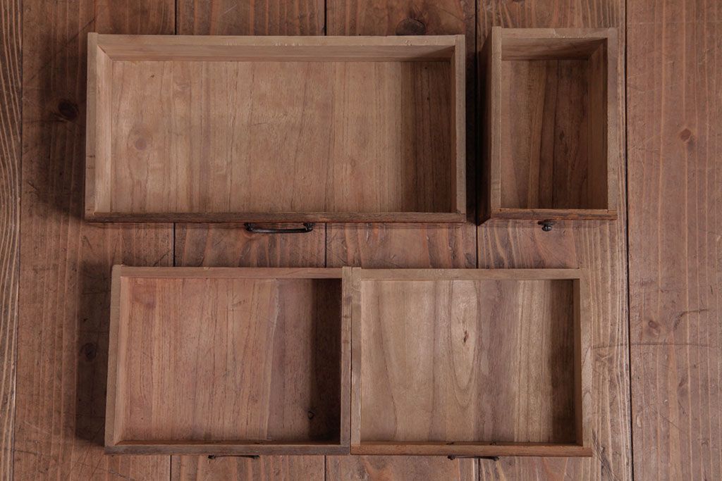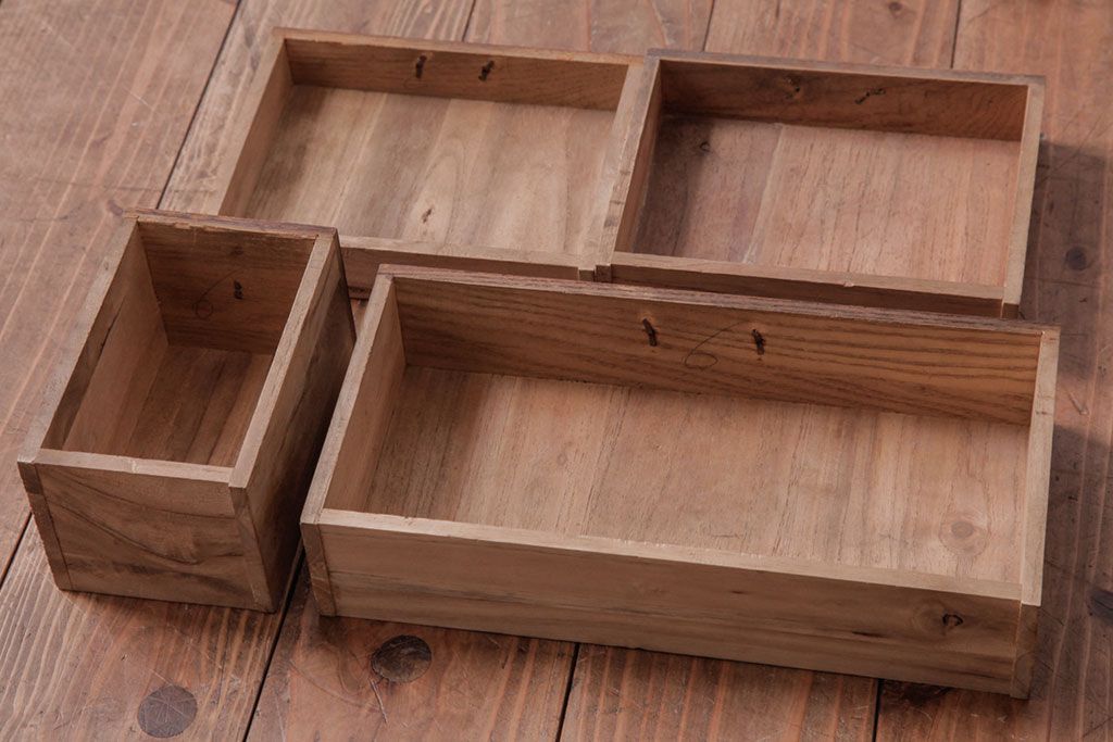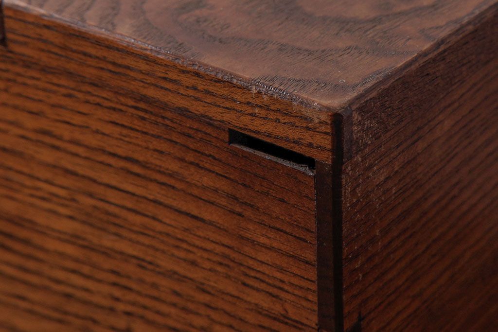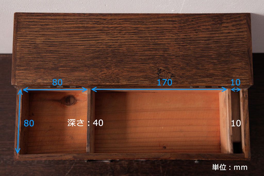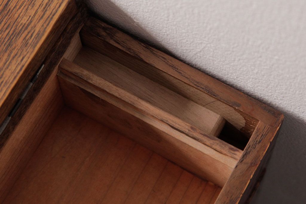 ラフジュ工房> 小物収納・トランク > アンティーク雑貨 和製アンティーク タモ材 独特の杢目が存在感のあるソーイングボックス(裁縫箱、小引き出し)