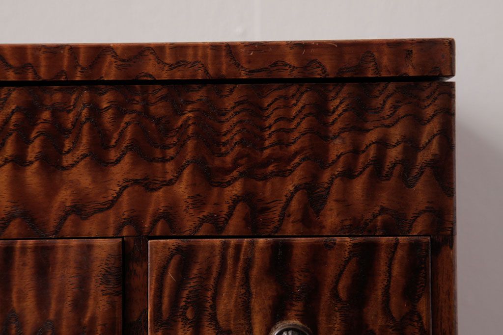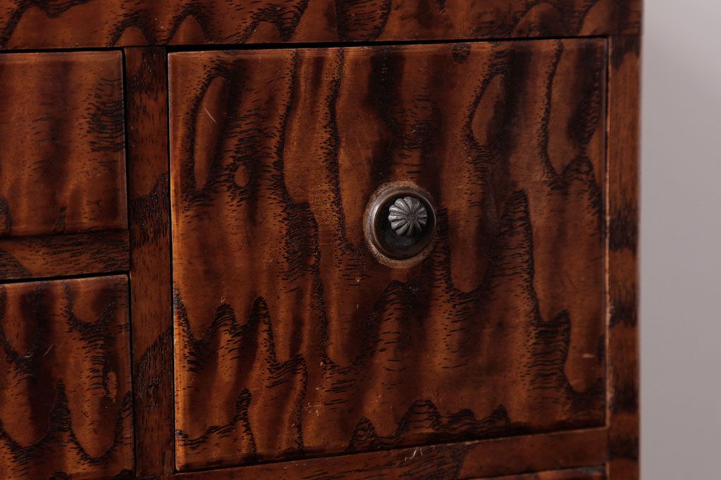 ラフジュ工房> 小物収納・トランク> 小引き出し > アンティーク雑貨 和製アンティーク タモ材 独特の杢目が存在感のあるソーイングボックス(裁縫箱、小引き出し)