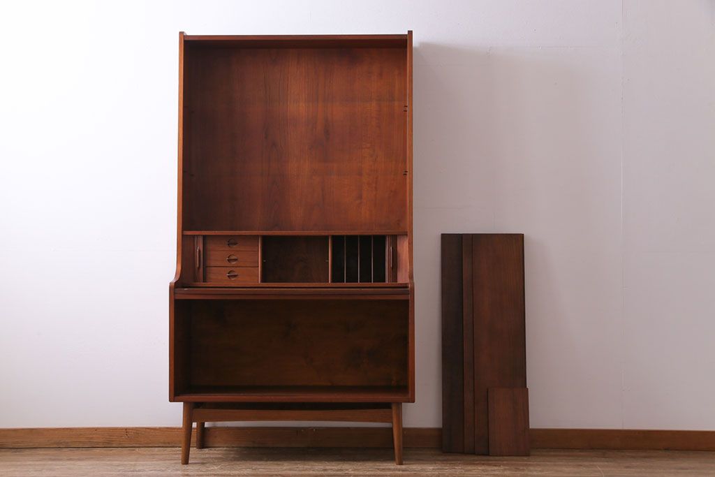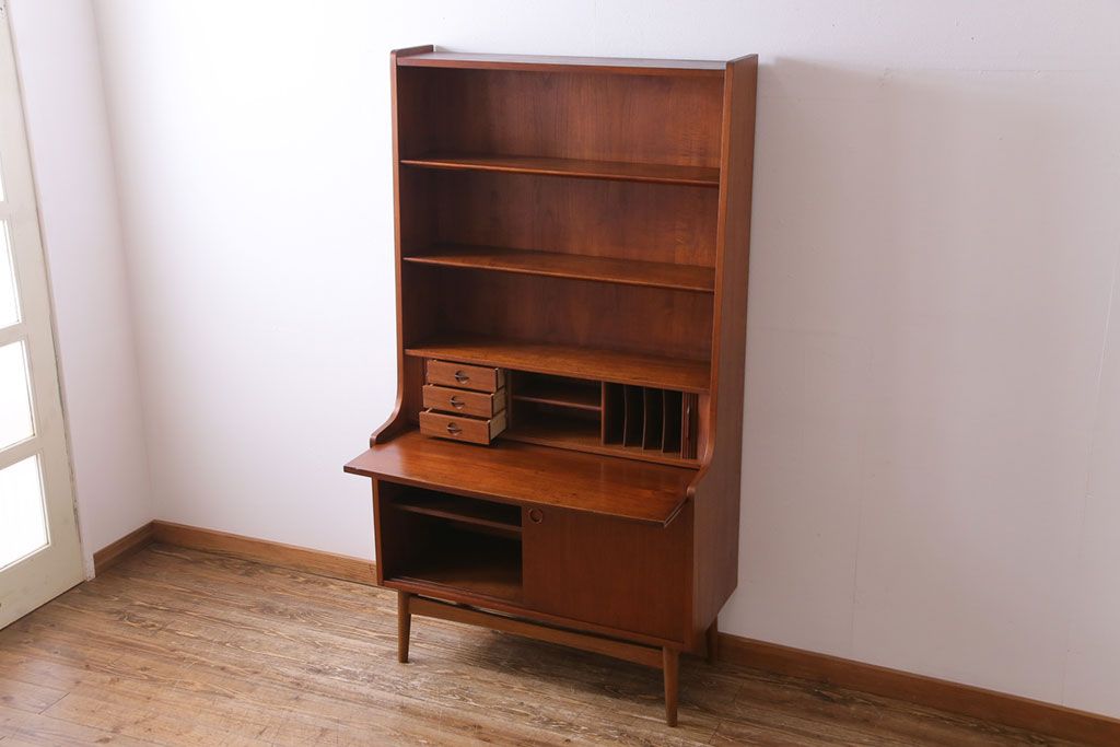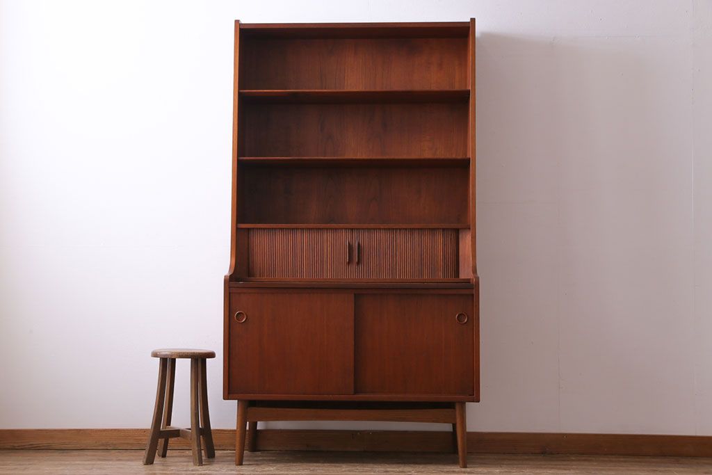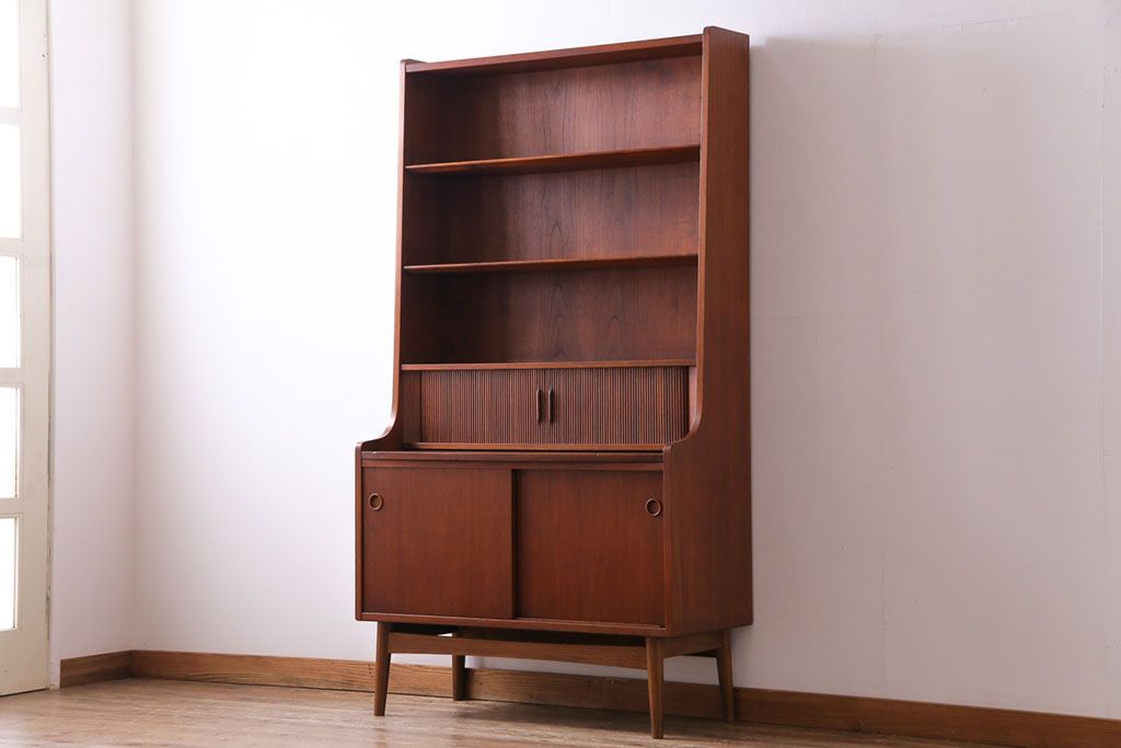 ヴィンテージ家具 北欧ビンテージ デンマーク 作業台付き お気に入りを並べて使えるカップボード(ブックシェルフ、陳列棚、オープンラック)(2)