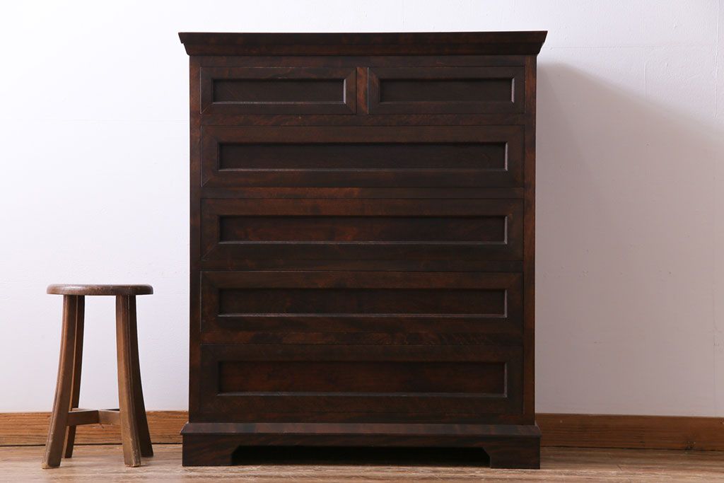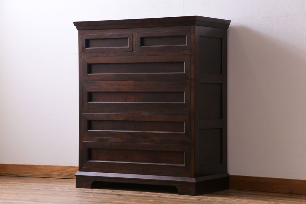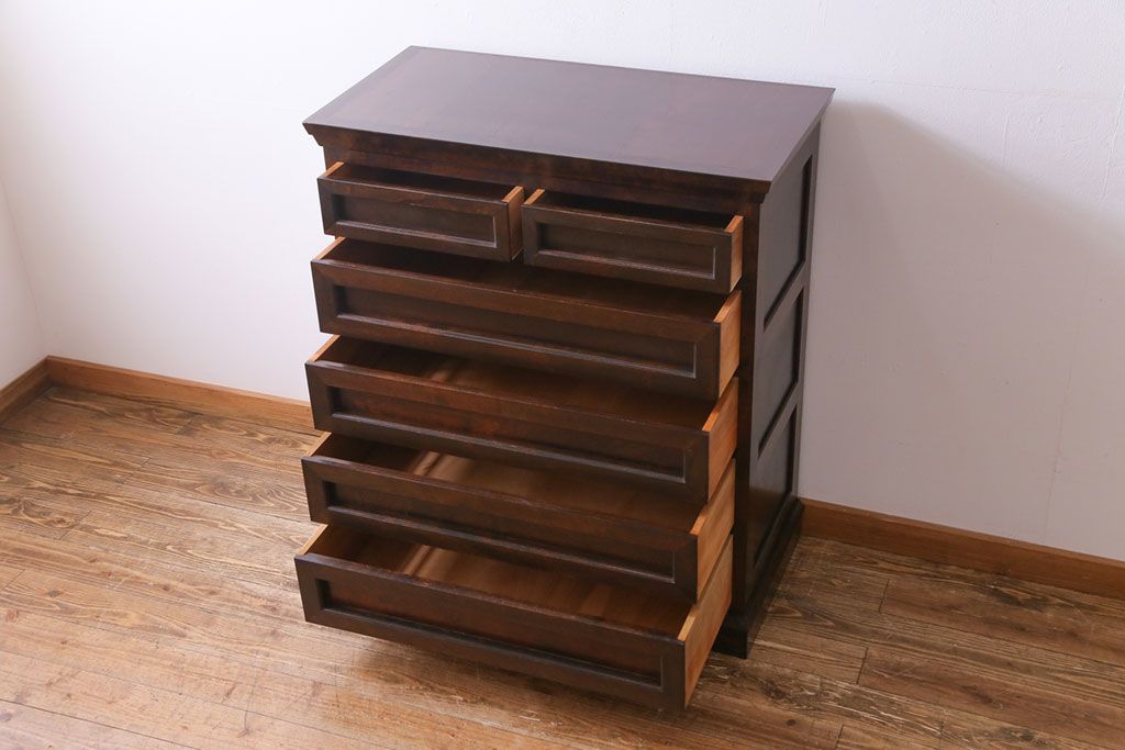 中古 松本民芸家具 503型 直線のデザインが目を引くチェスト(引き出し、衣装箪笥、整理箪笥)(定価約28万円)(3)