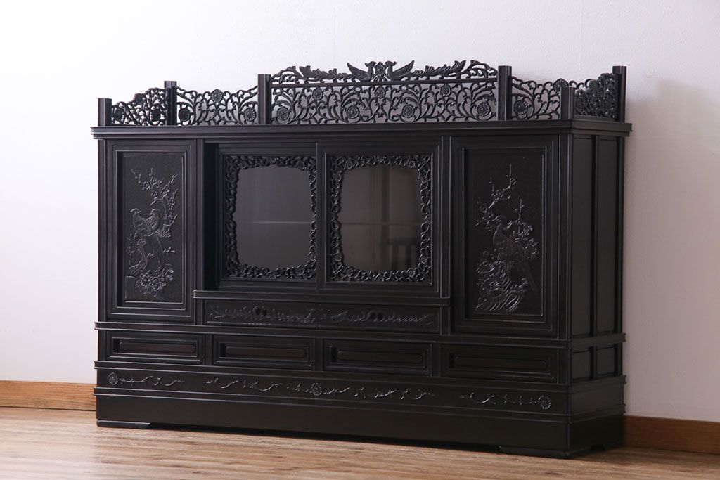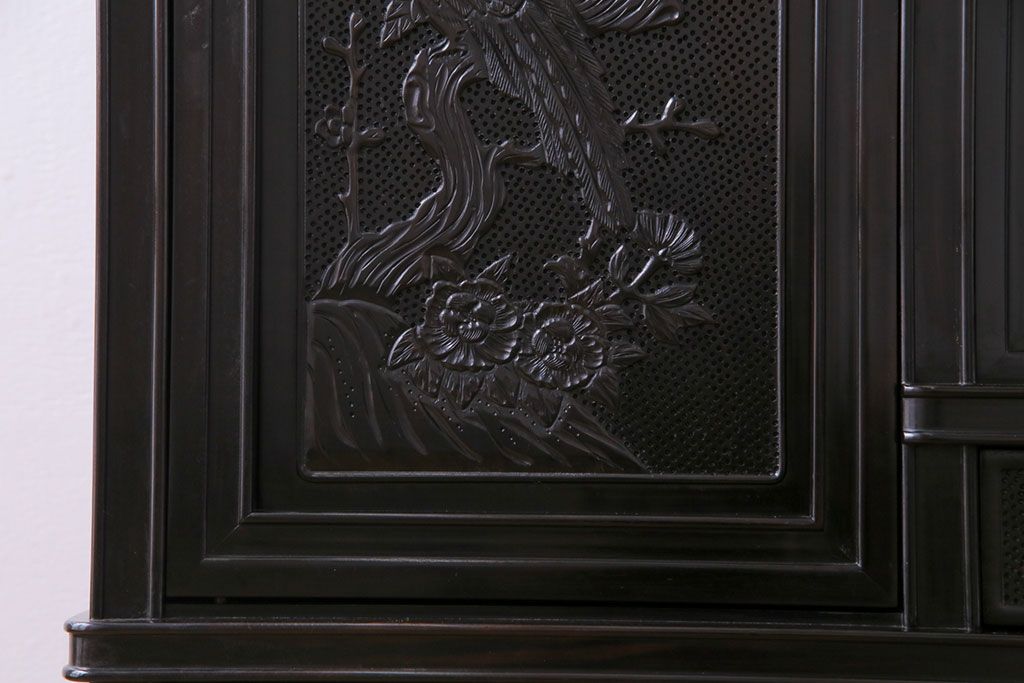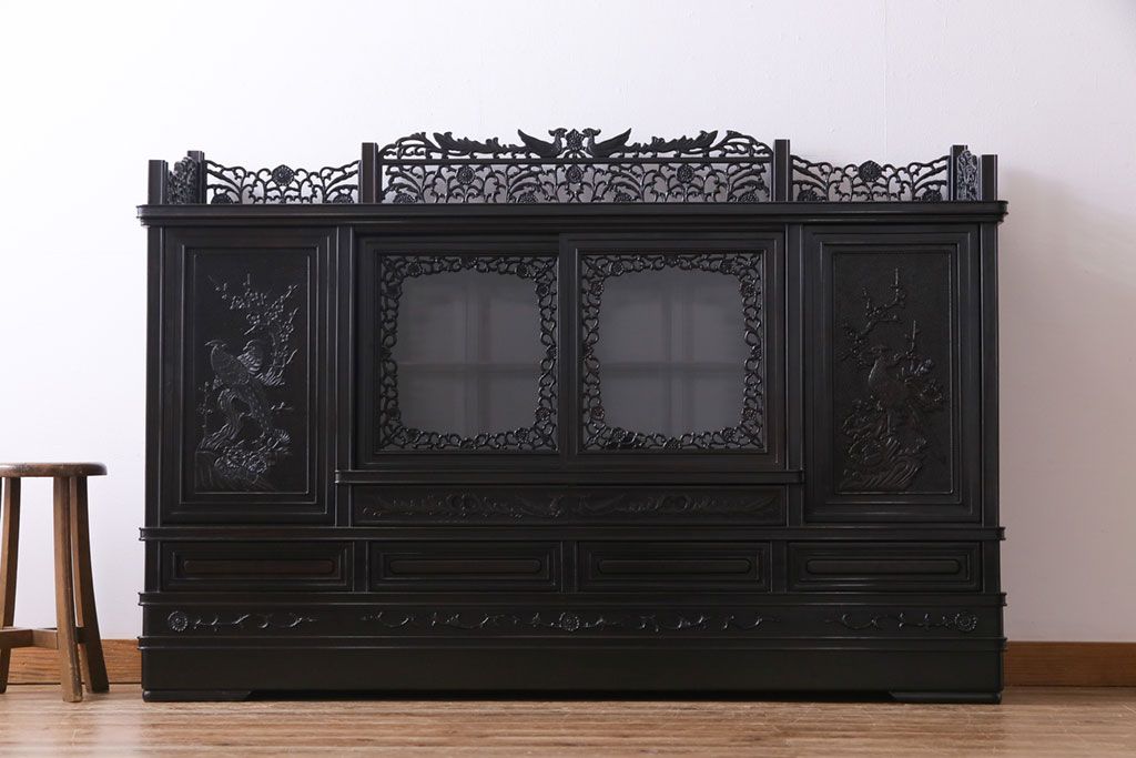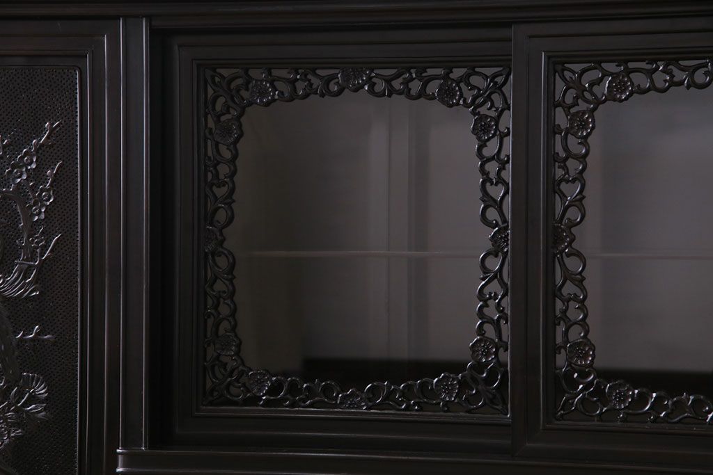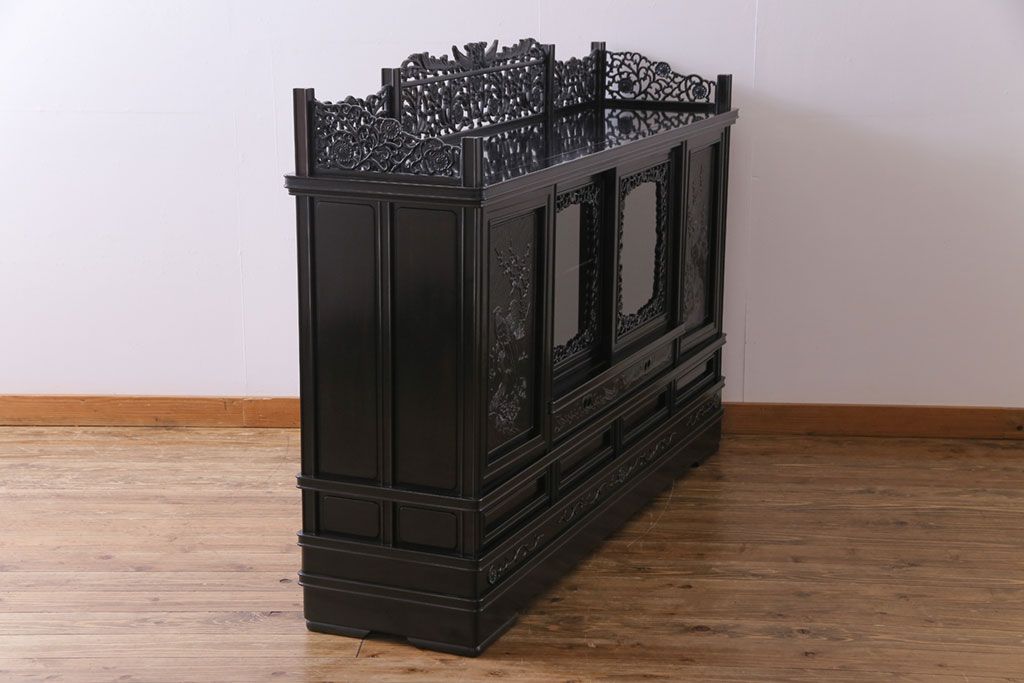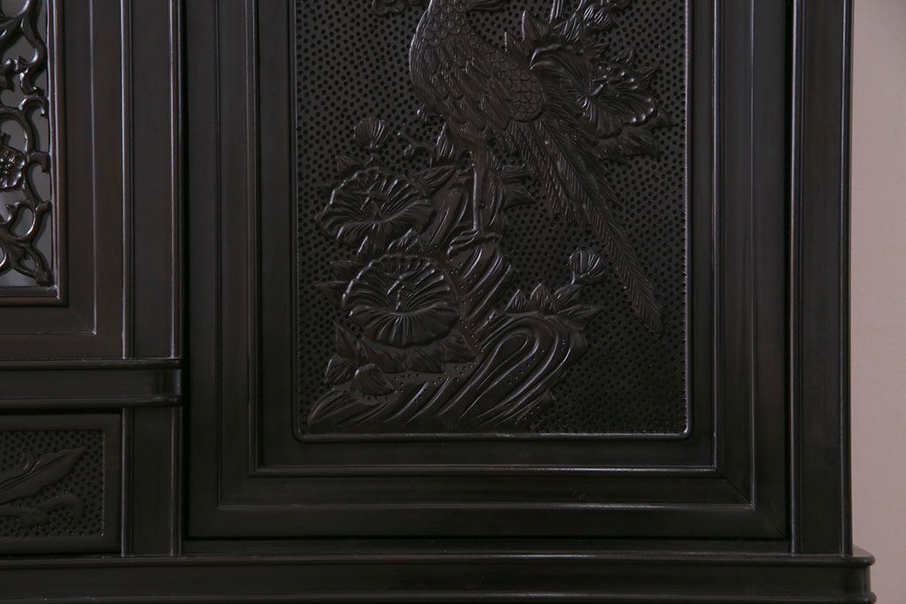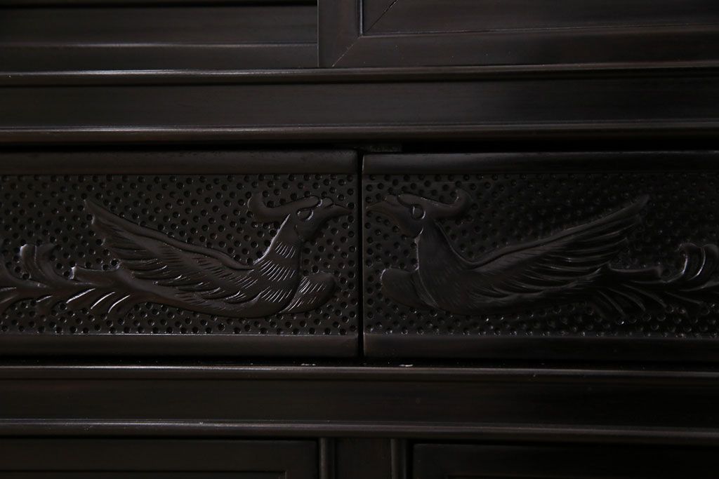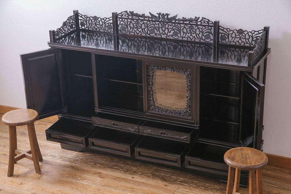 中古 民芸家具 唐木製 高級品! 荘厳な彫刻が目を引くサイドボード(キャビネット、飾り棚、茶棚)