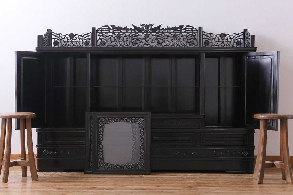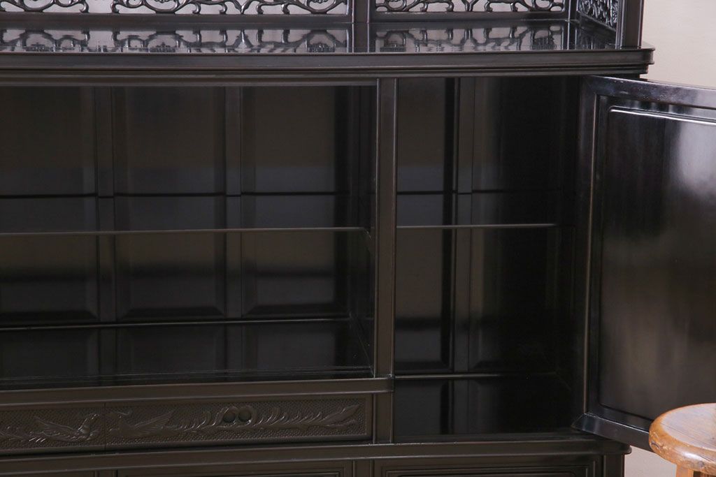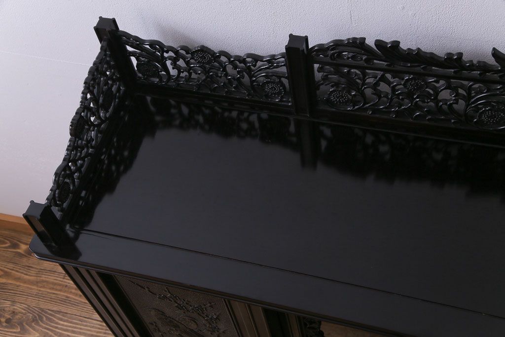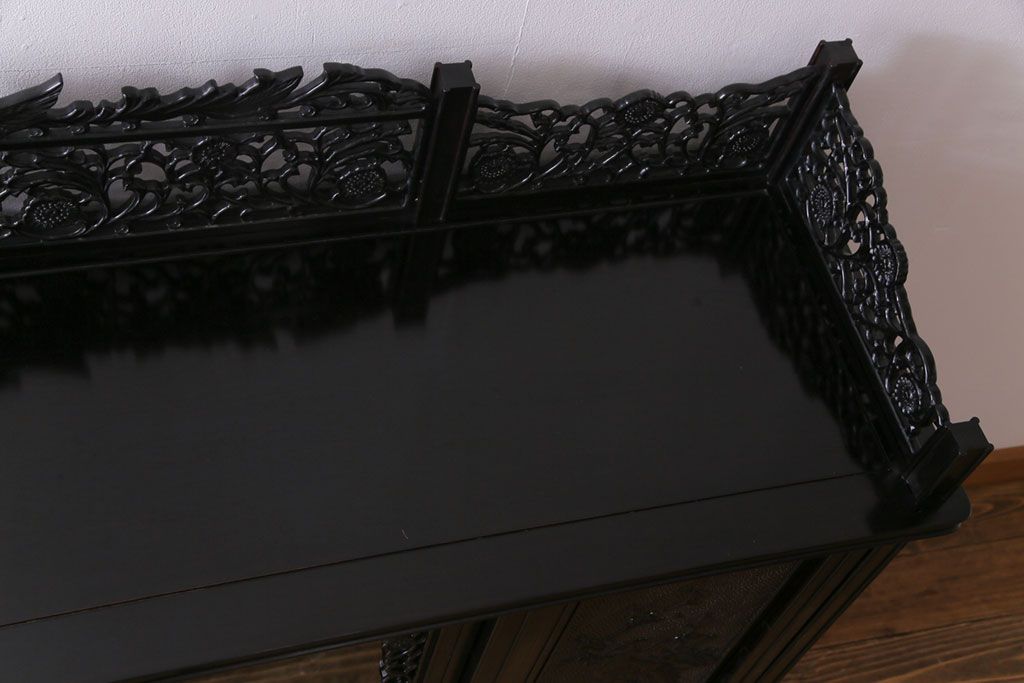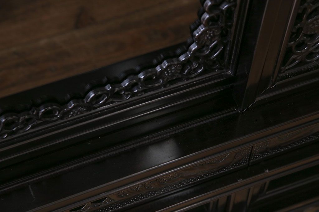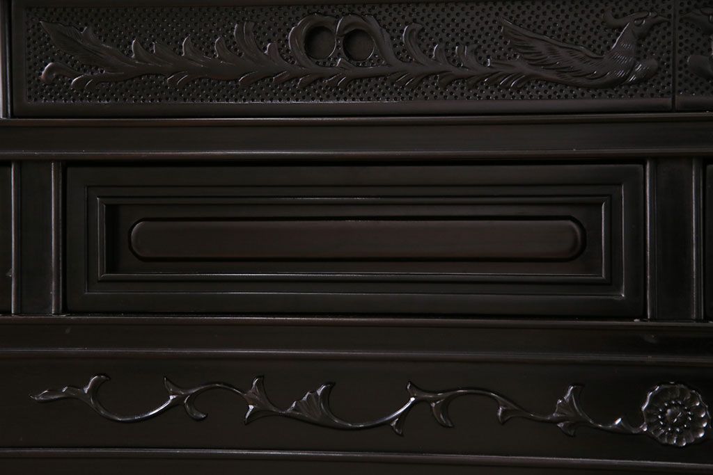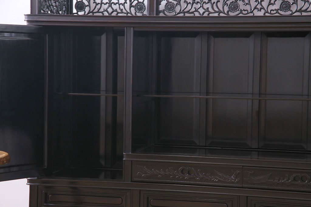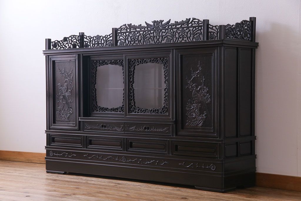 中古 民芸家具 唐木製 高級品! 荘厳な彫刻が目を引くサイドボード(キャビネット、飾り棚、茶棚)
