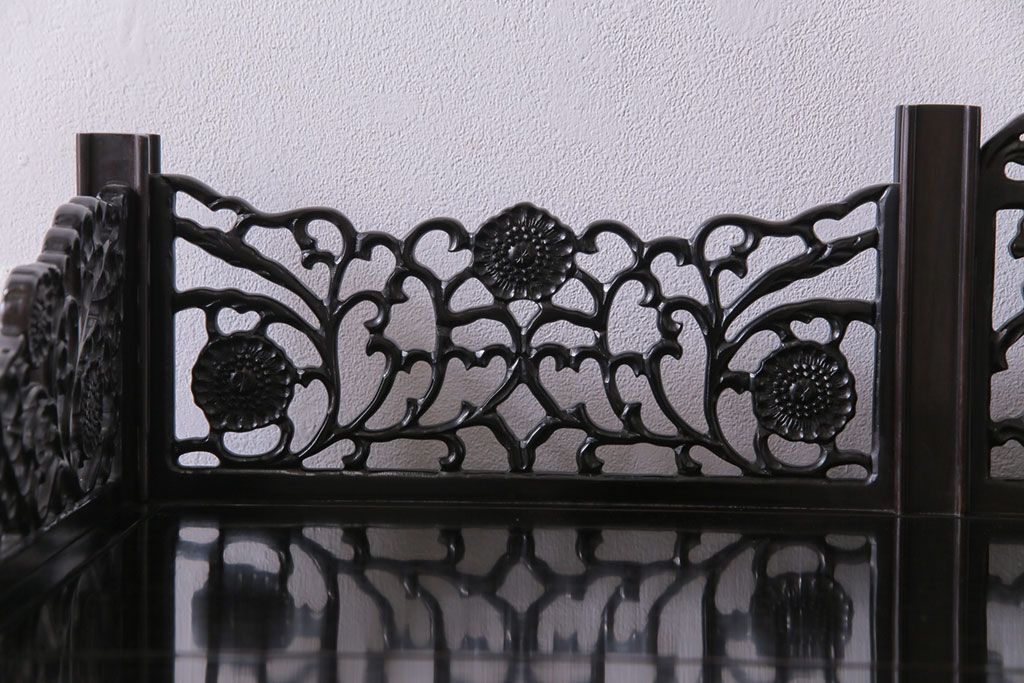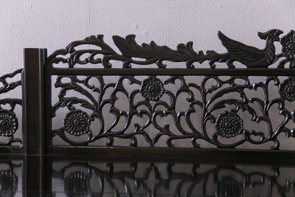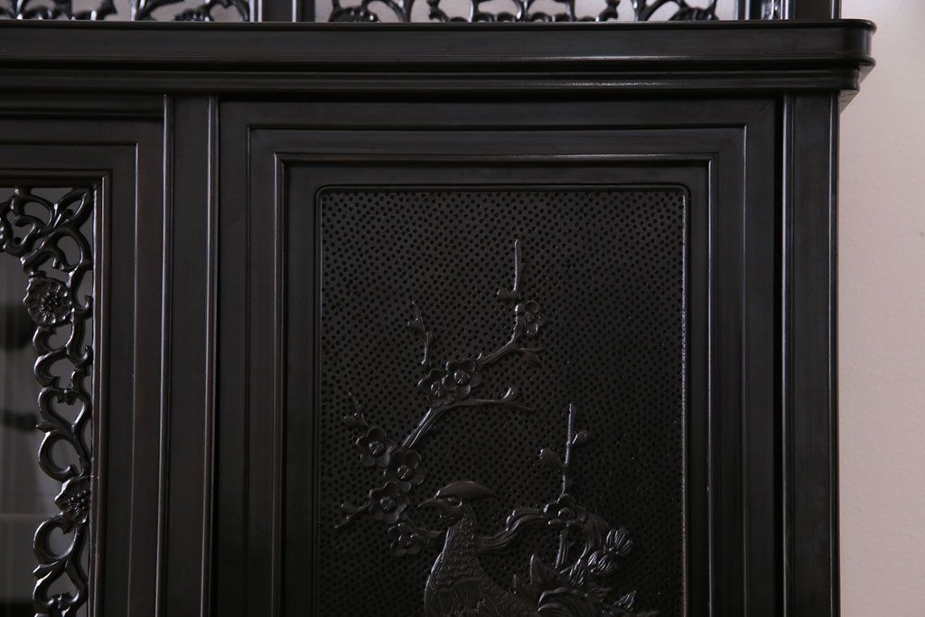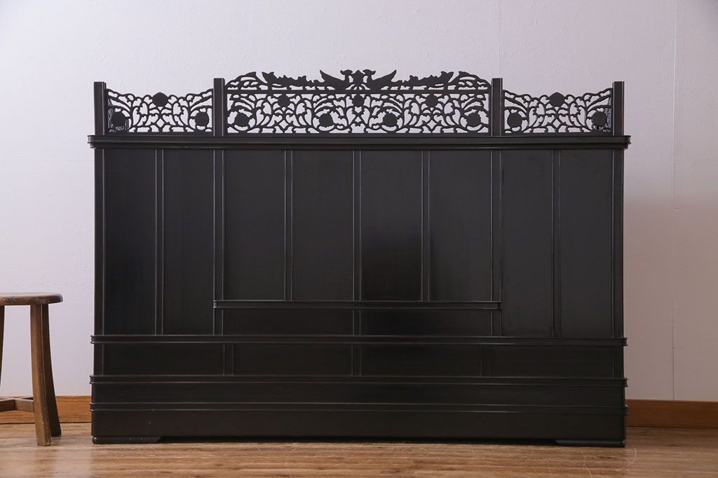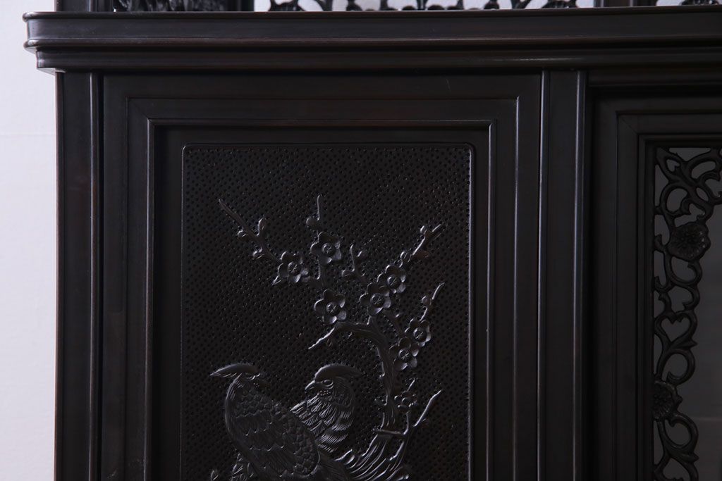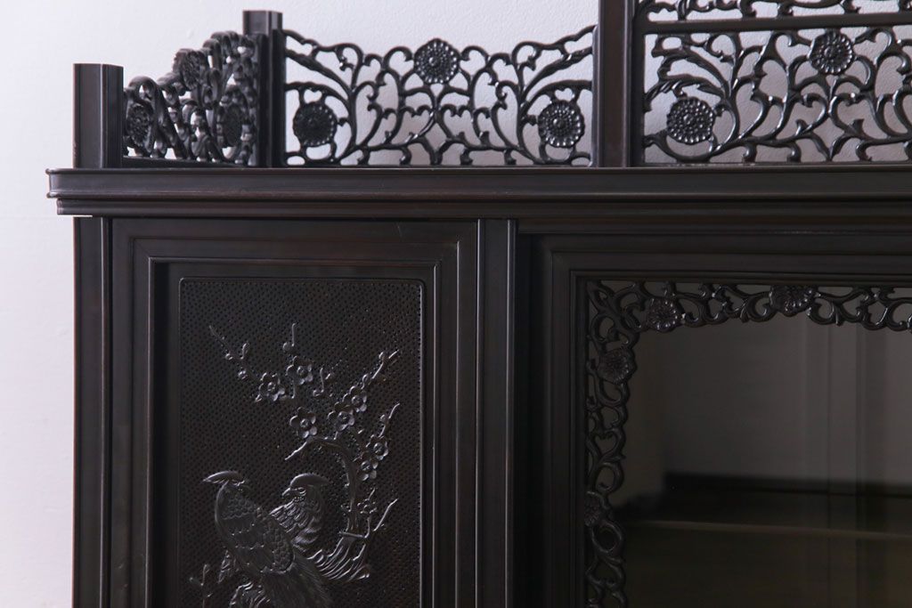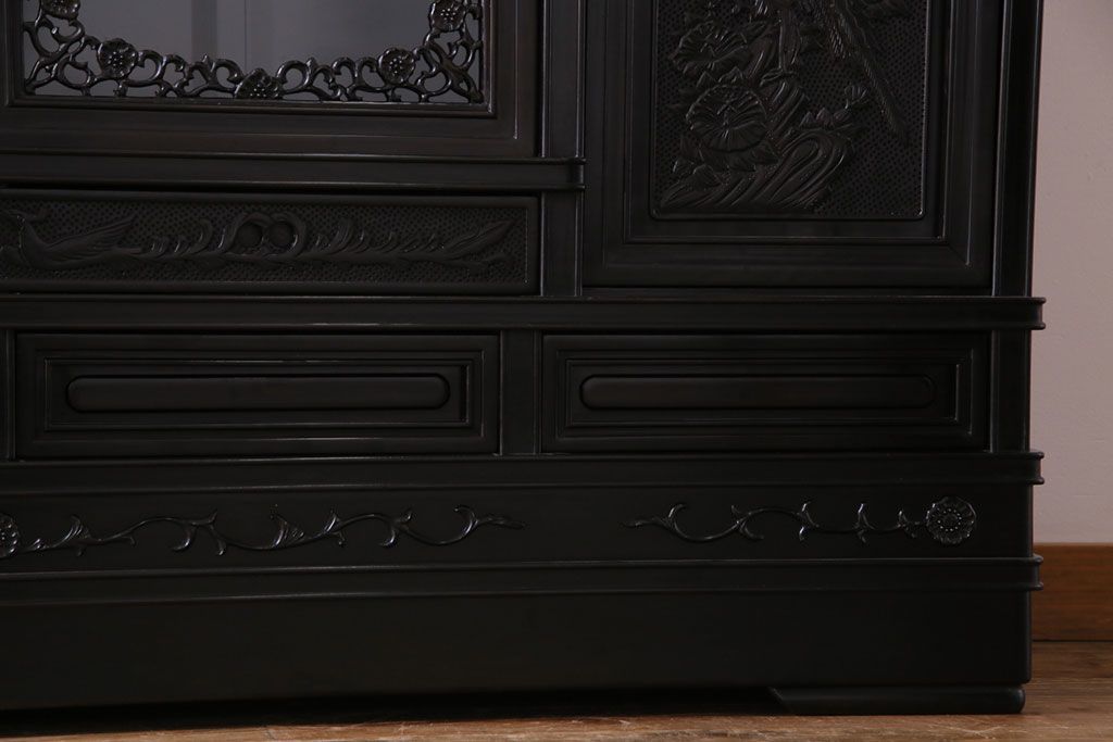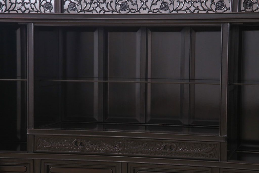 中古 民芸家具 唐木製 高級品! 荘厳な彫刻が目を引くサイドボード(キャビネット、飾り棚、茶棚)