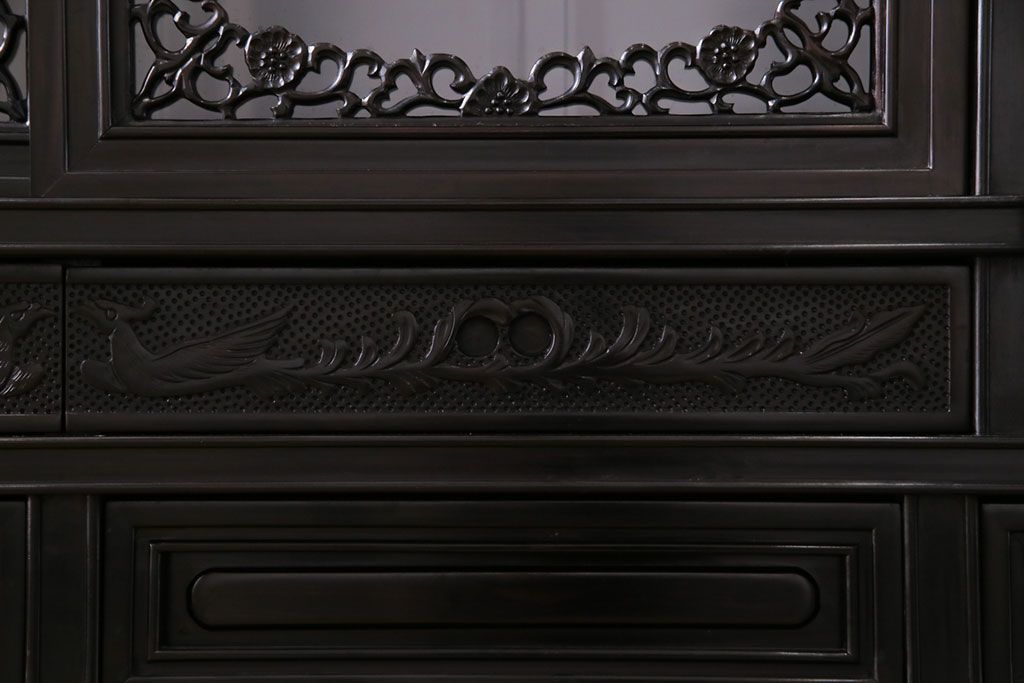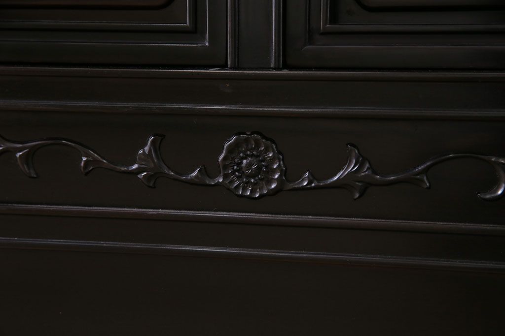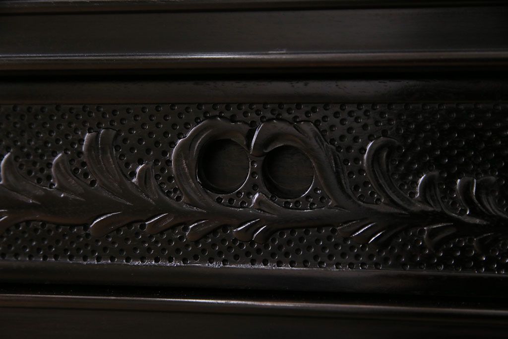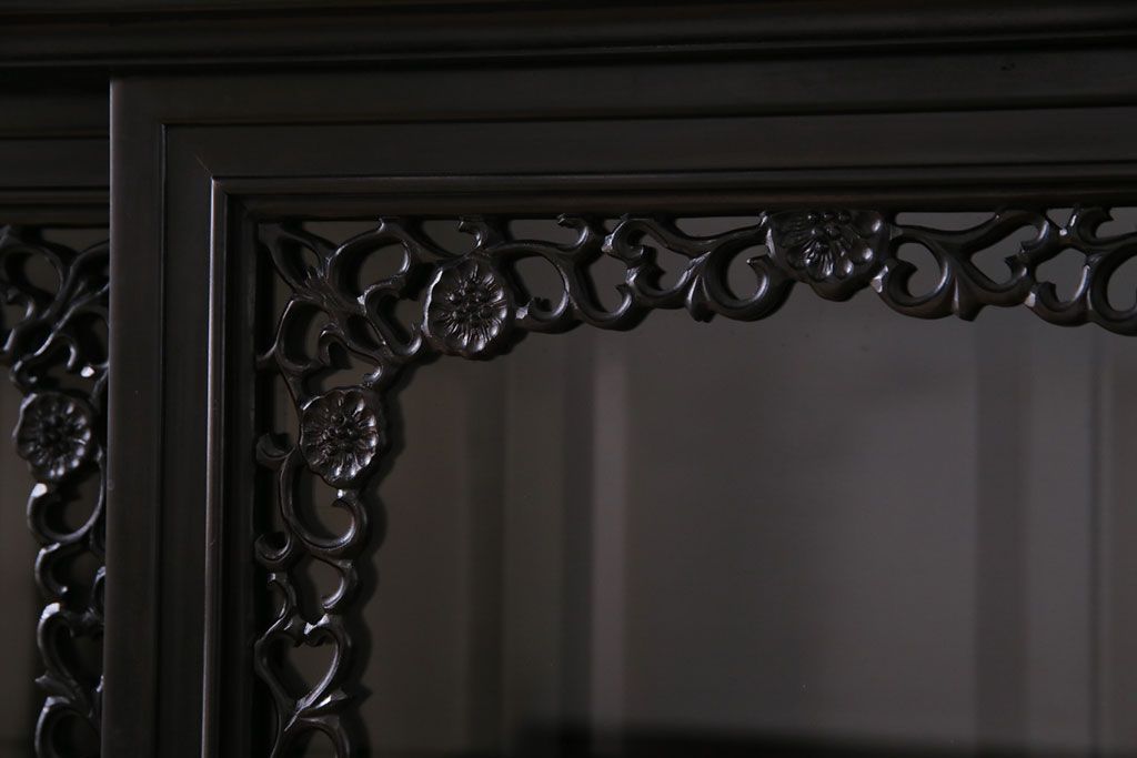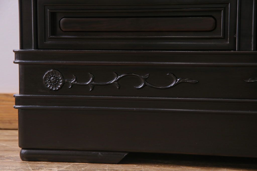 ラフジュ工房> 民芸家具 > 中古 民芸家具 唐木製 高級品! 荘厳な彫刻が目を引くサイドボード(キャビネット、飾り棚、茶棚)