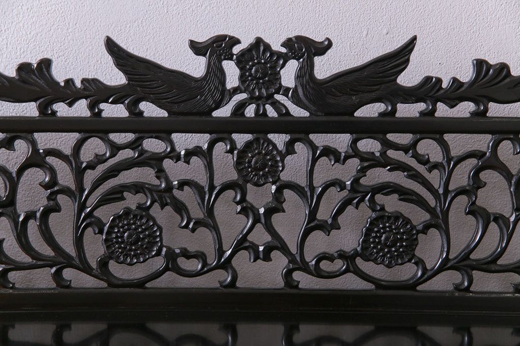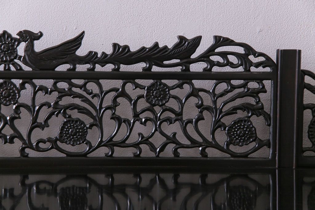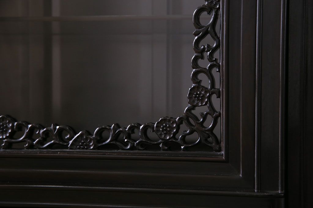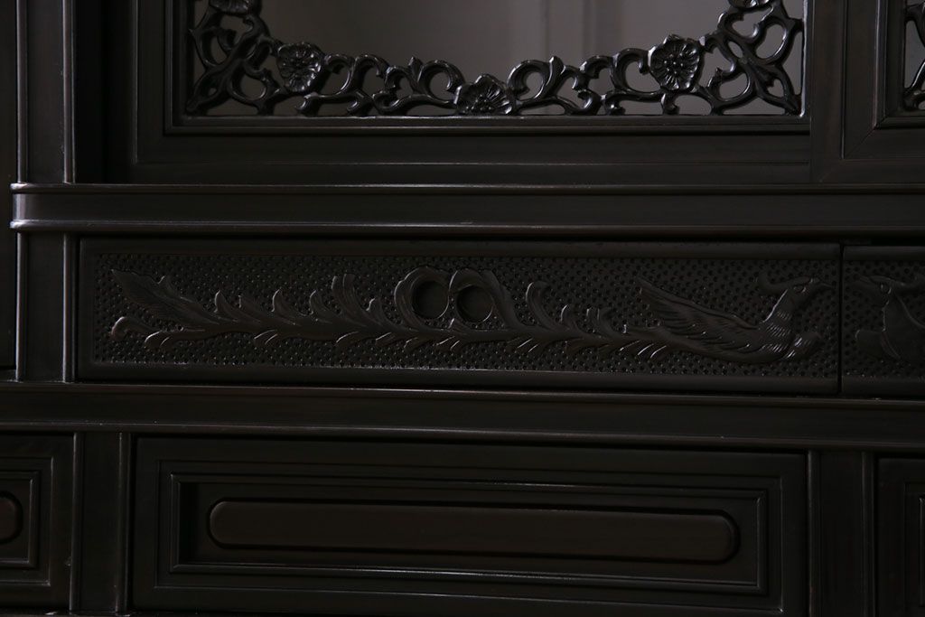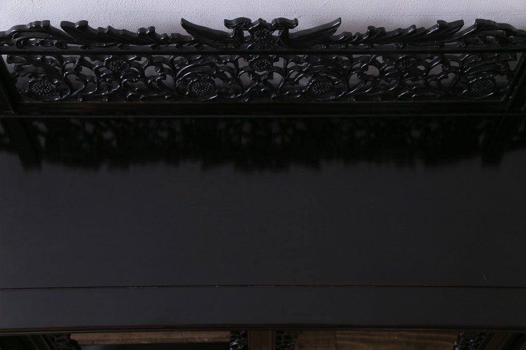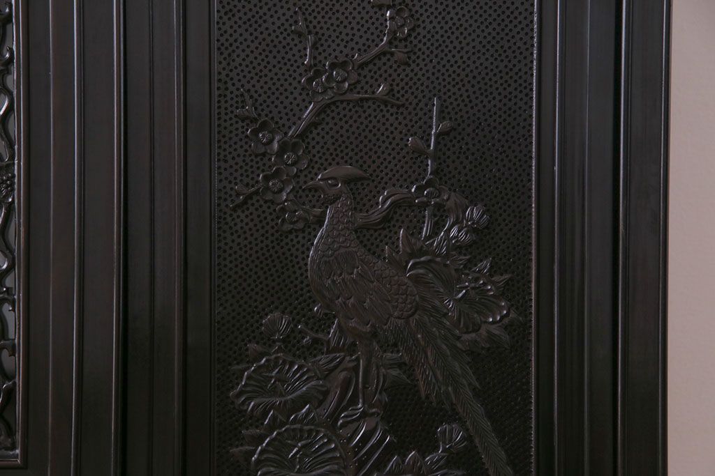 ラフジュ工房> 民芸家具 > 中古 民芸家具 唐木製 高級品! 荘厳な彫刻が目を引くサイドボード(キャビネット、飾り棚、茶棚)