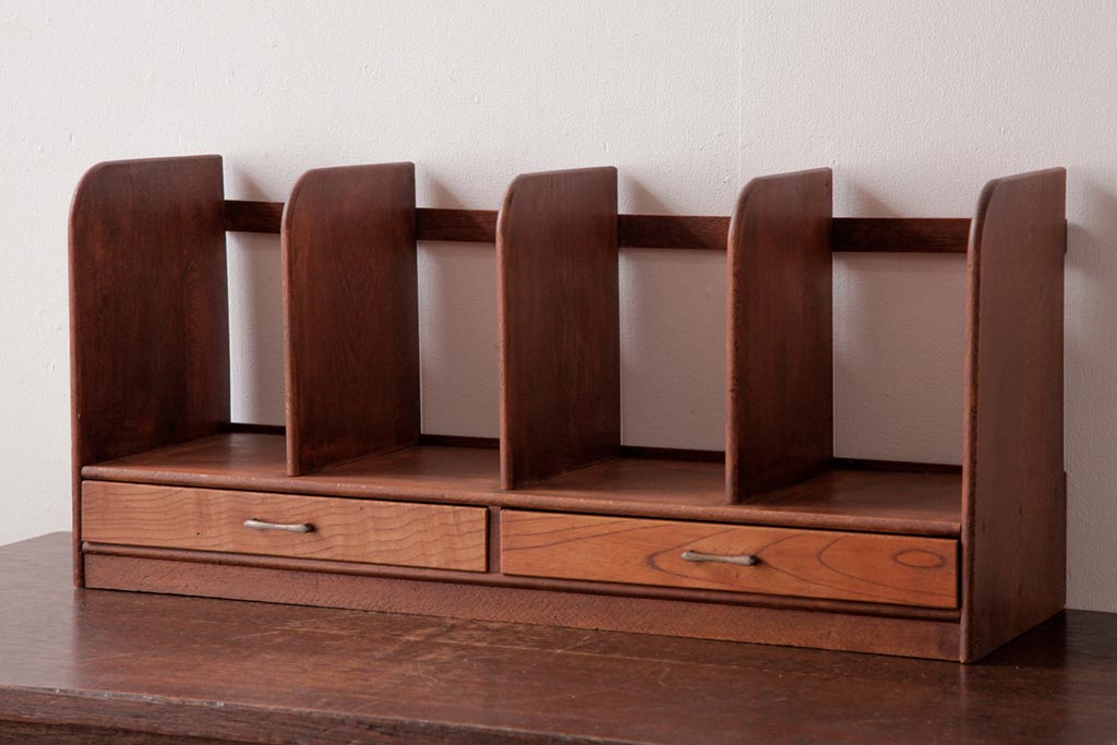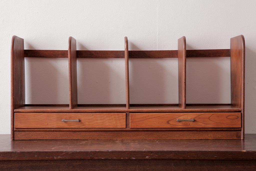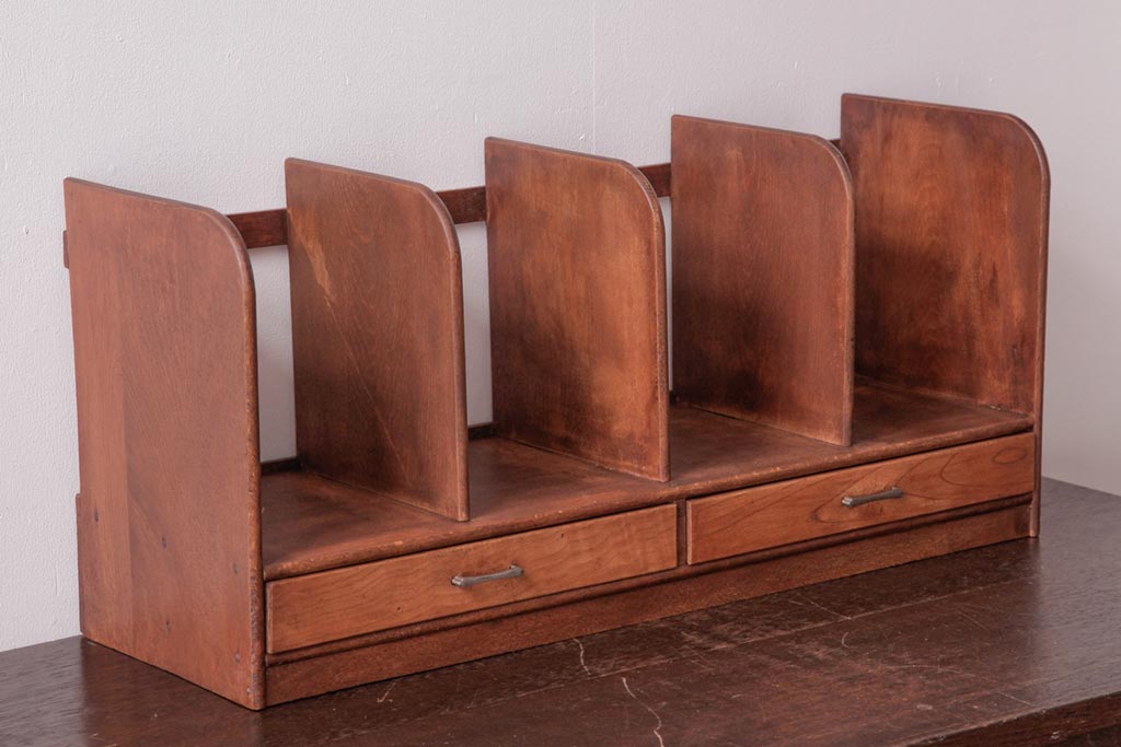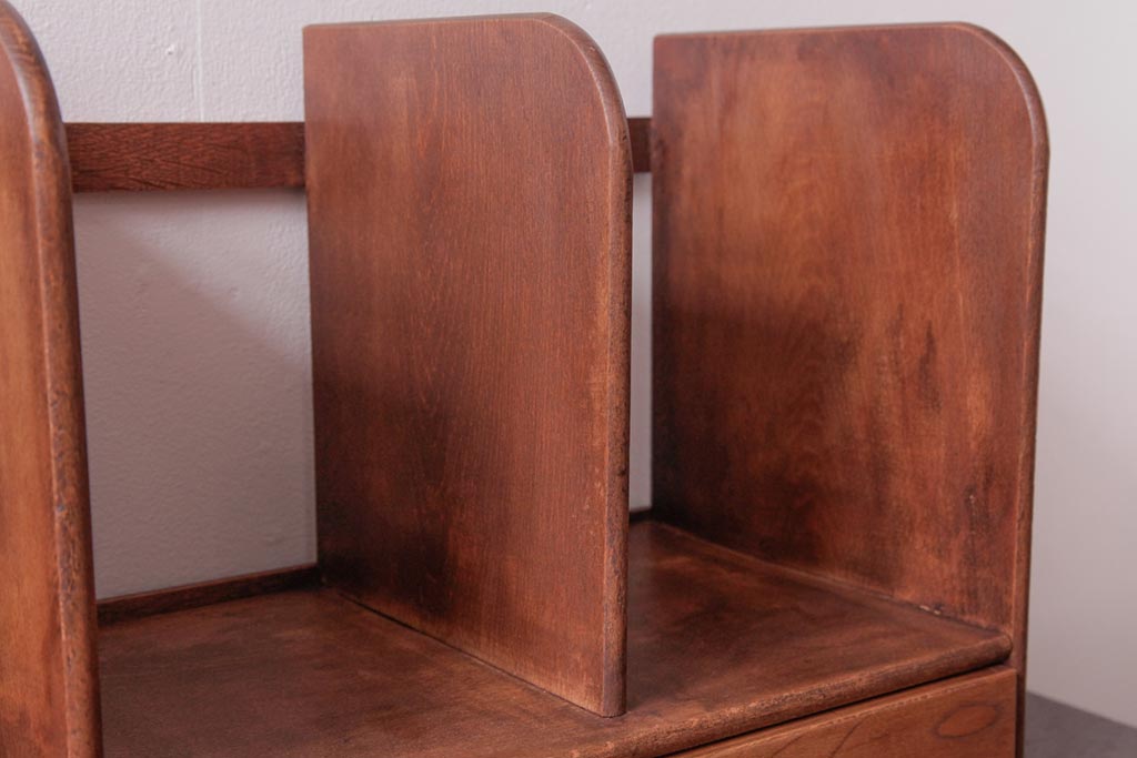 アンティーク雑貨 昭和レトロ 木の味わい豊かな引き出し付きブックスタンド(本立て)