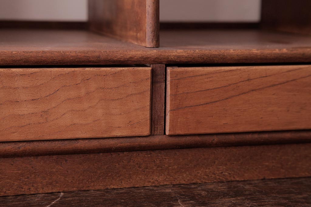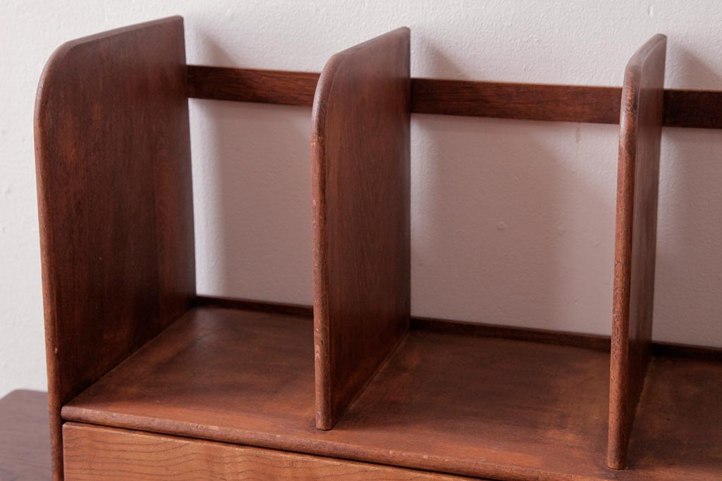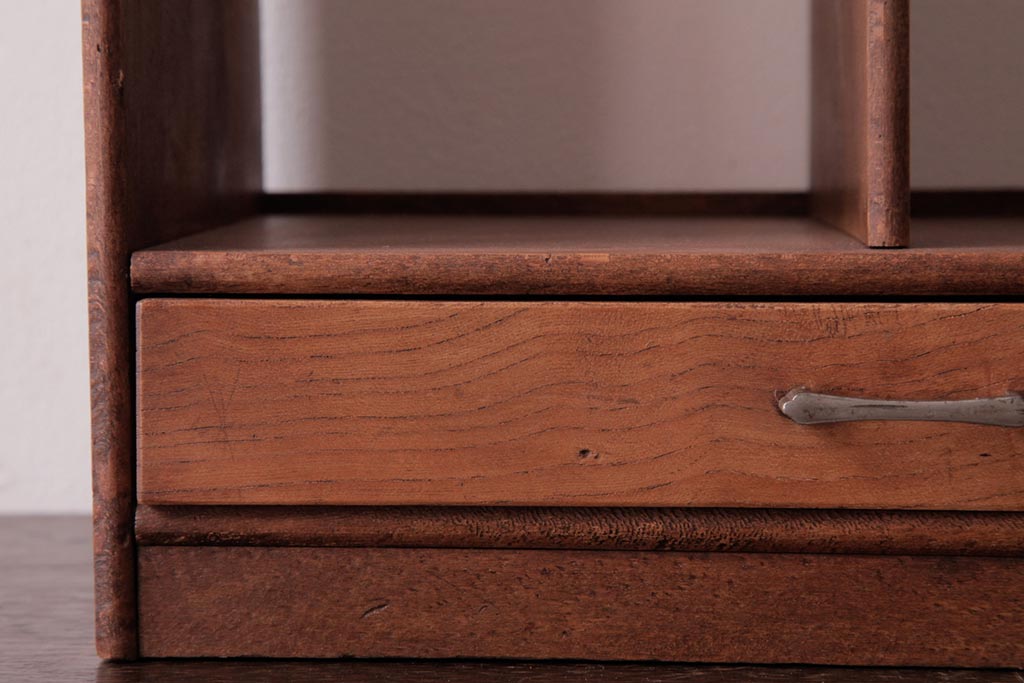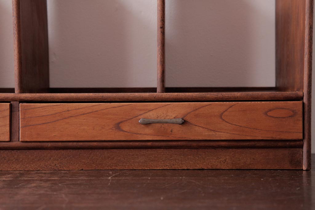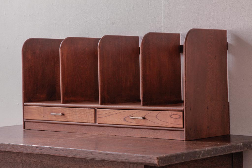 アンティーク雑貨 昭和レトロ 木の味わい豊かな引き出し付きブックスタンド(本立て)