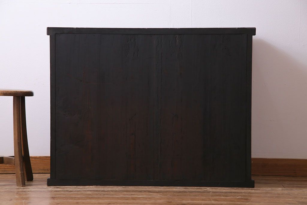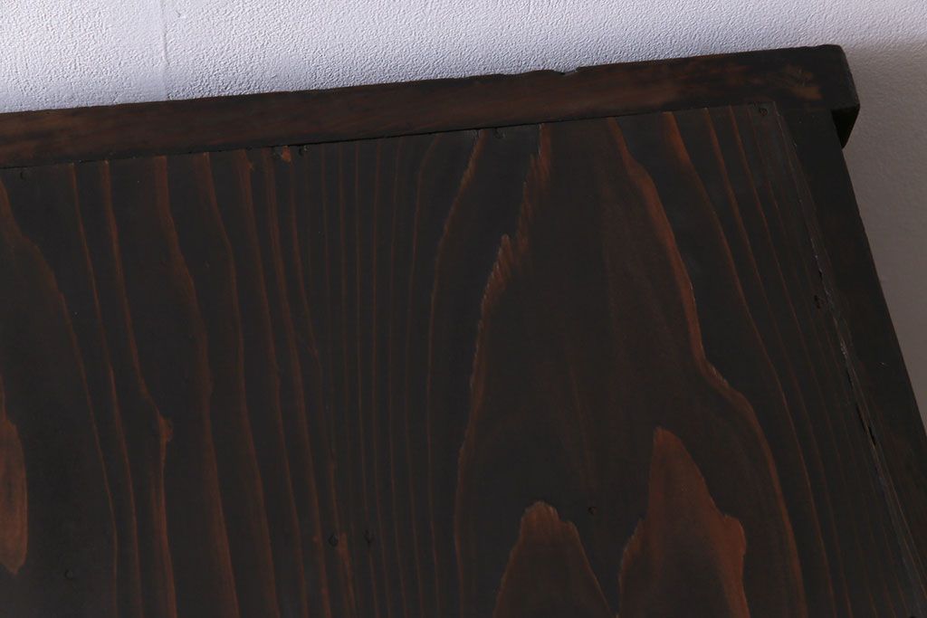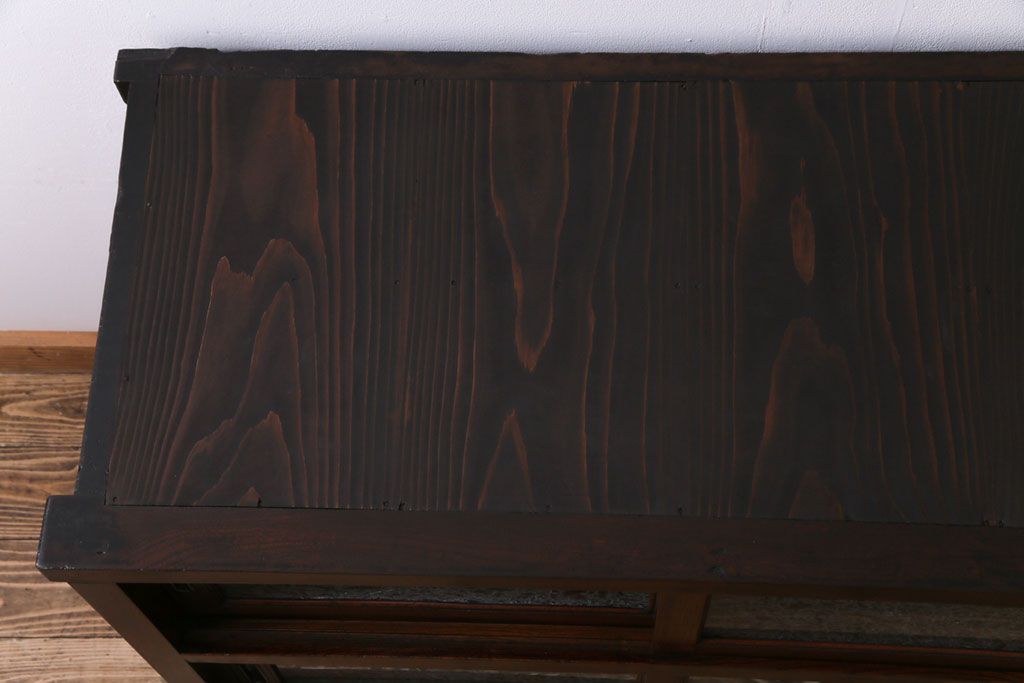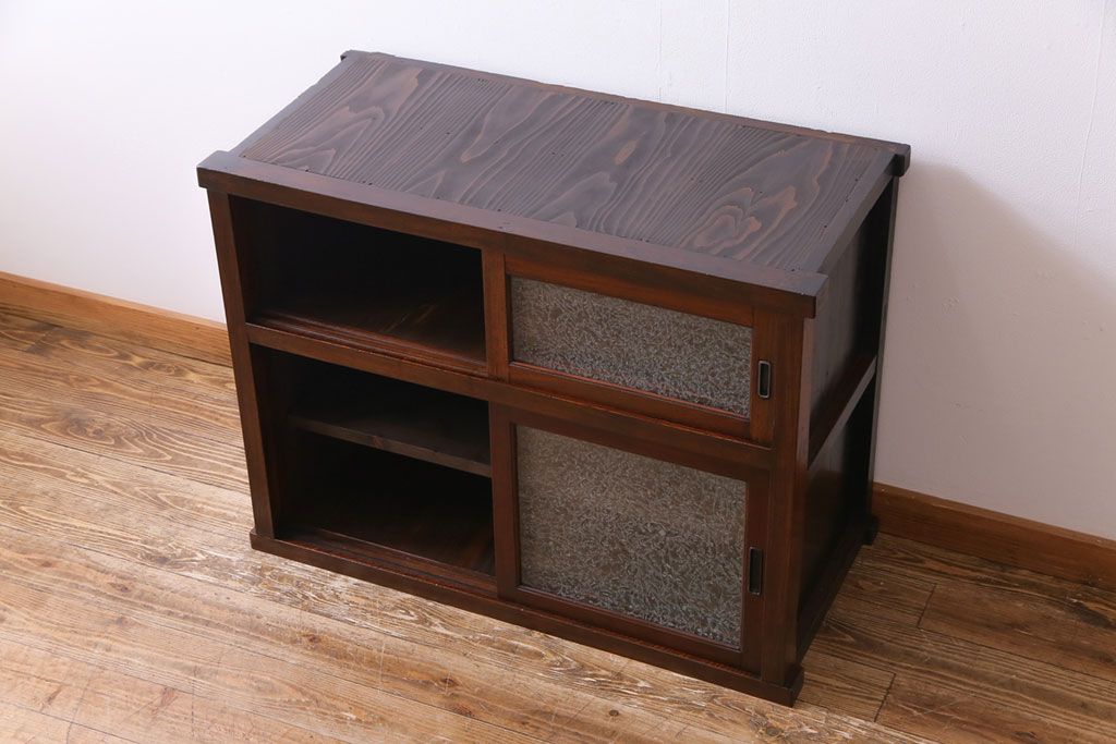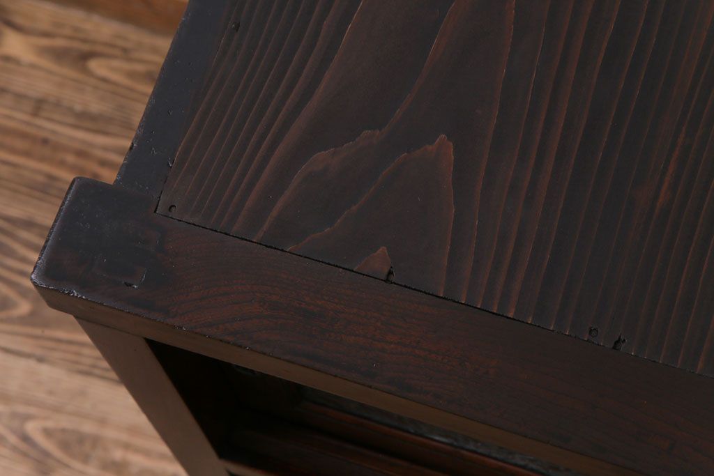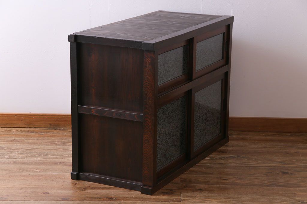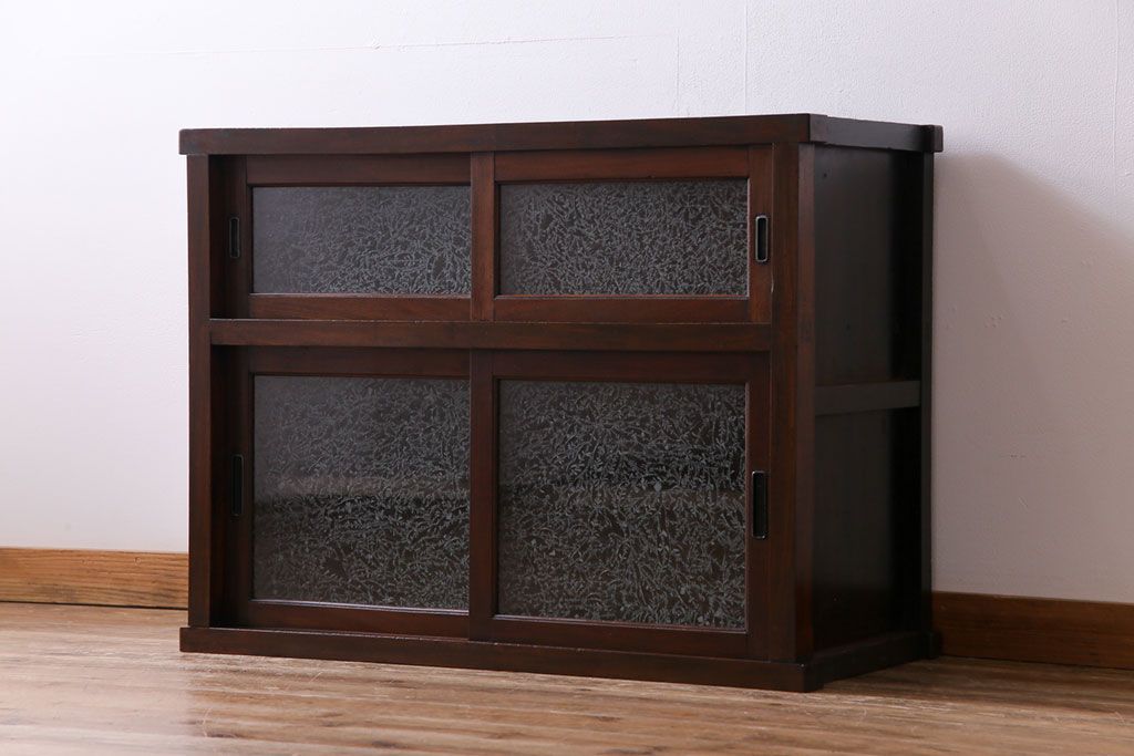 和製アンティーク 前面ケヤキ材 結霜ガラスが入った小振りなガラス収納棚(戸棚、茶棚)です。