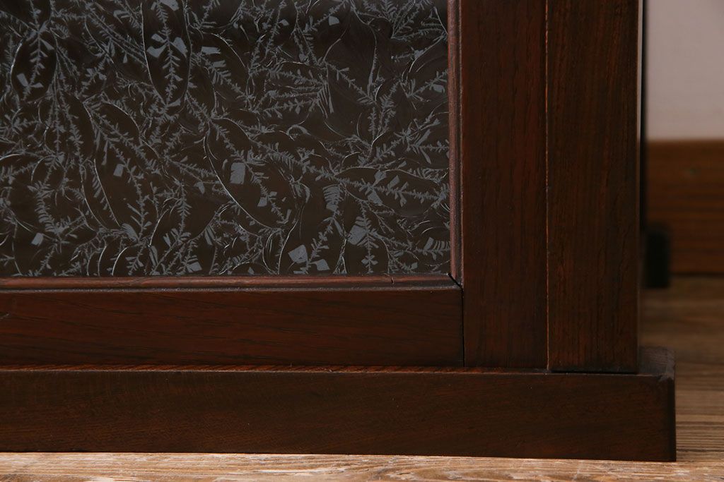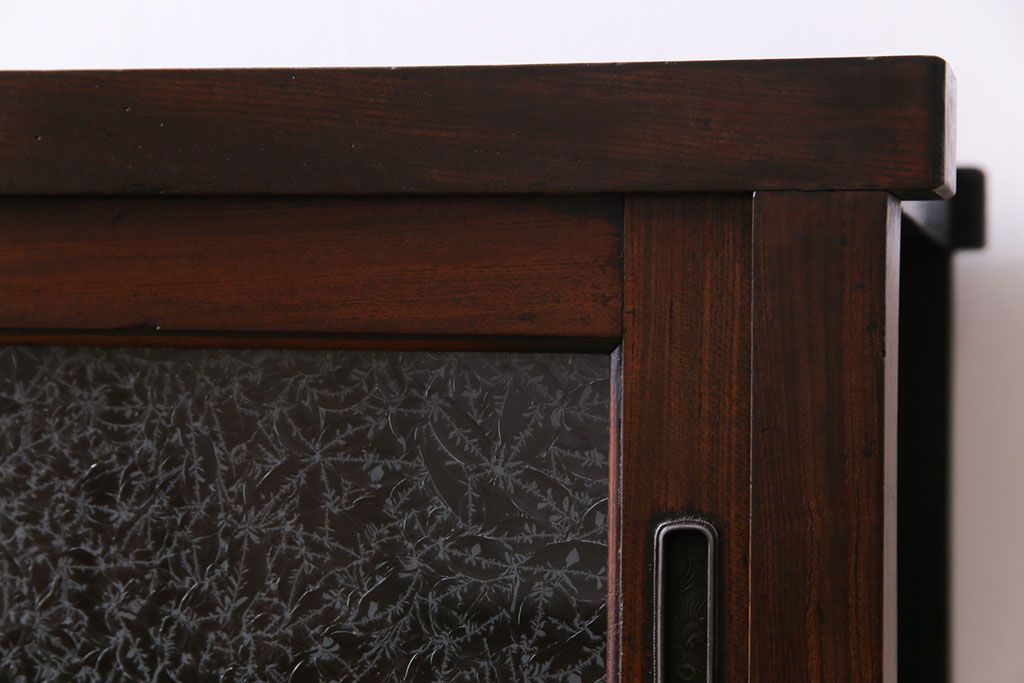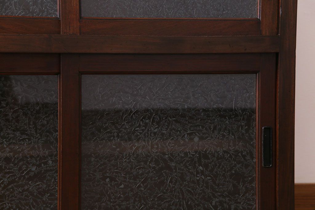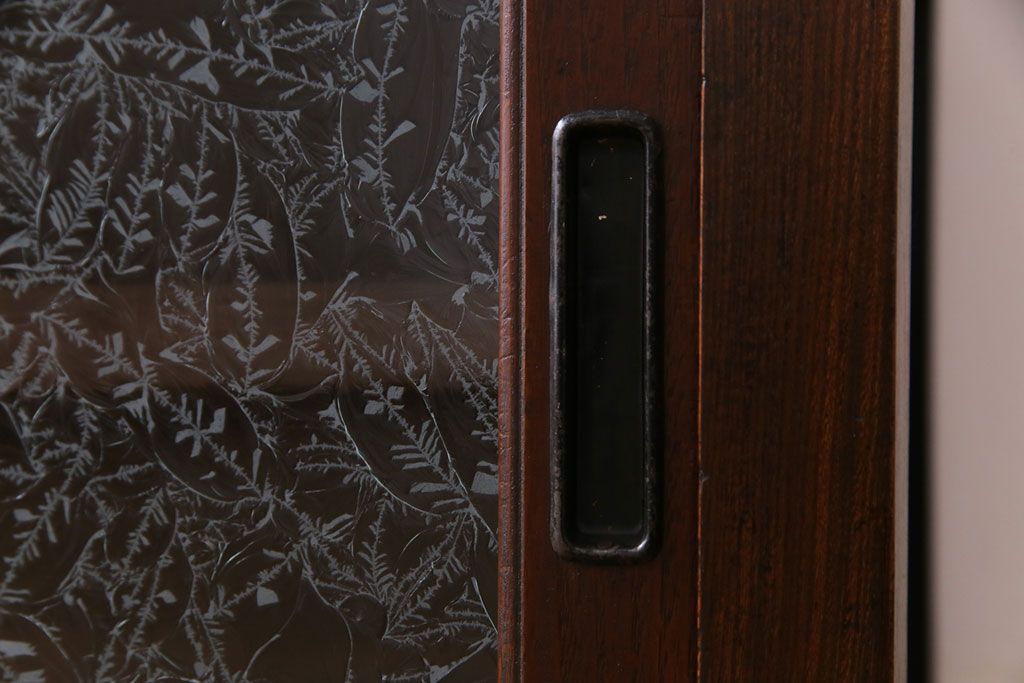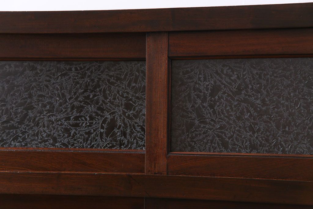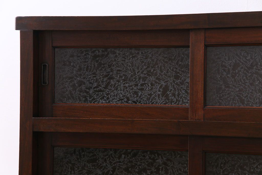 アンティーク家具 和製アンティーク 前面ケヤキ材 結霜ガラスが入った小振りなガラス収納棚(戸棚、茶棚)