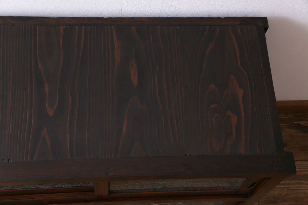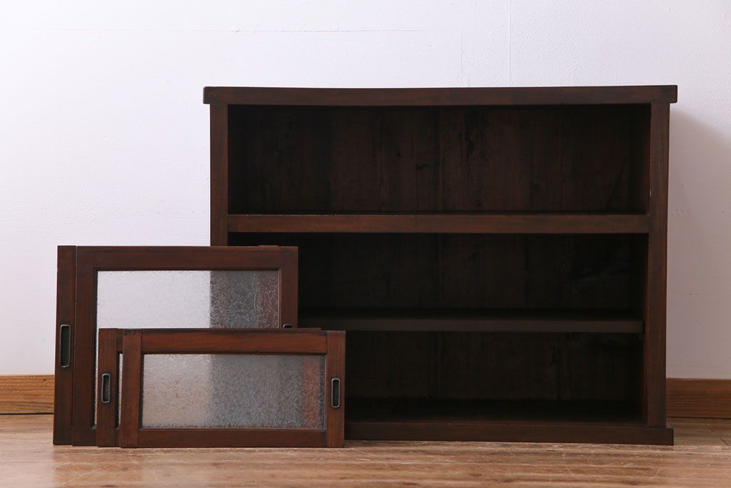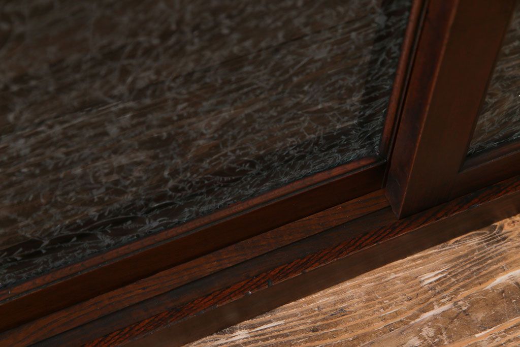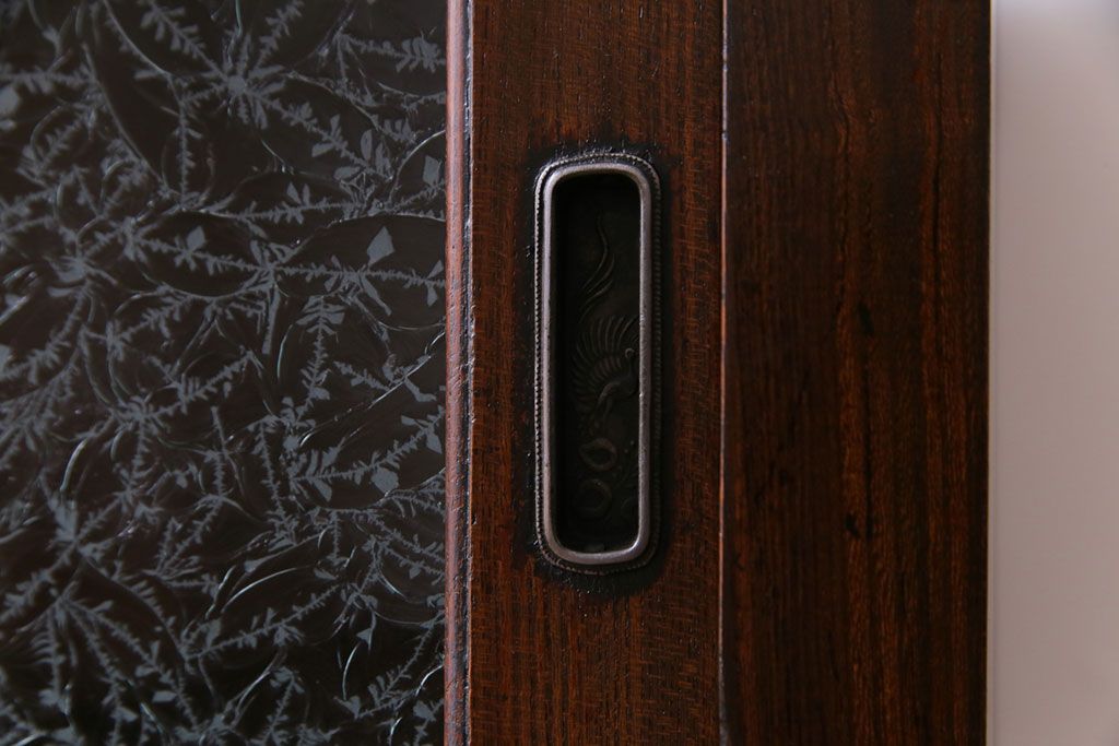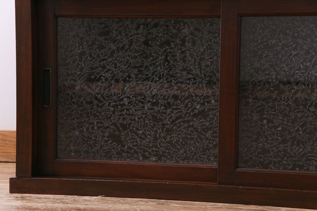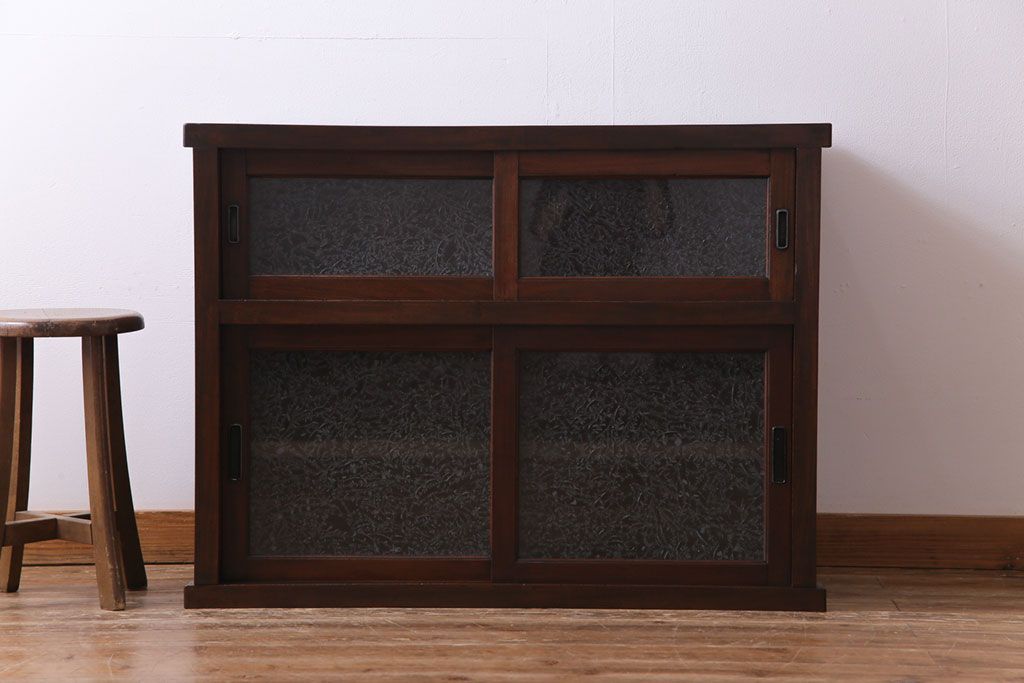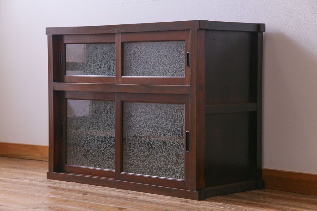 アンティーク家具 和製アンティーク 前面ケヤキ材 結霜ガラスが入った小振りなガラス収納棚(戸棚、茶棚)