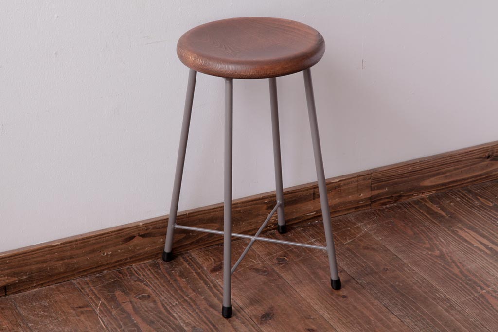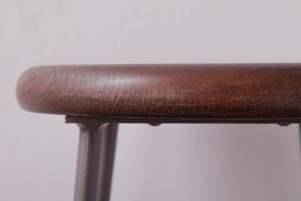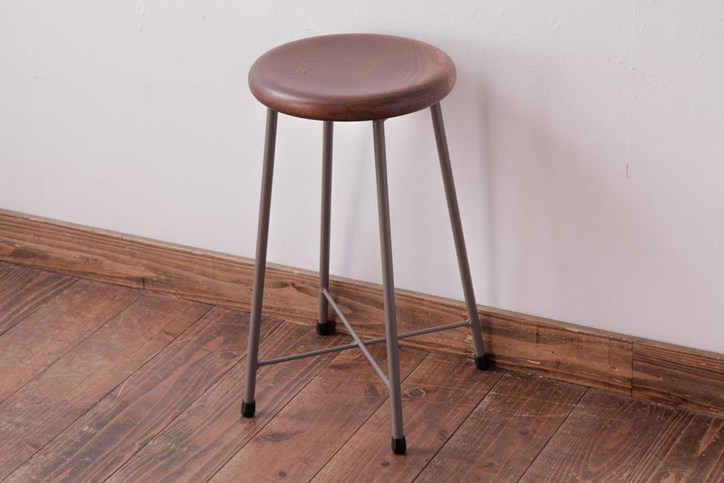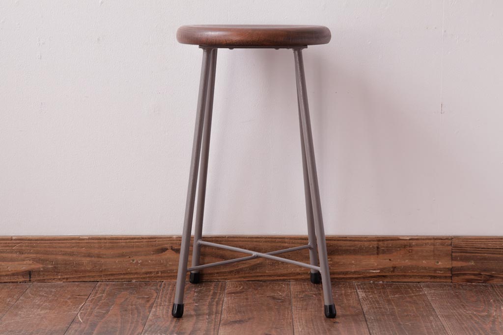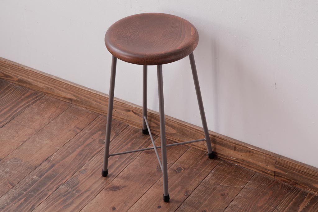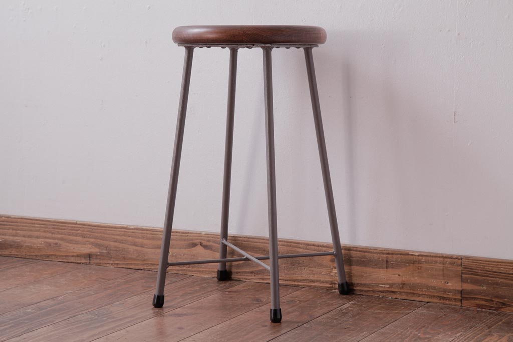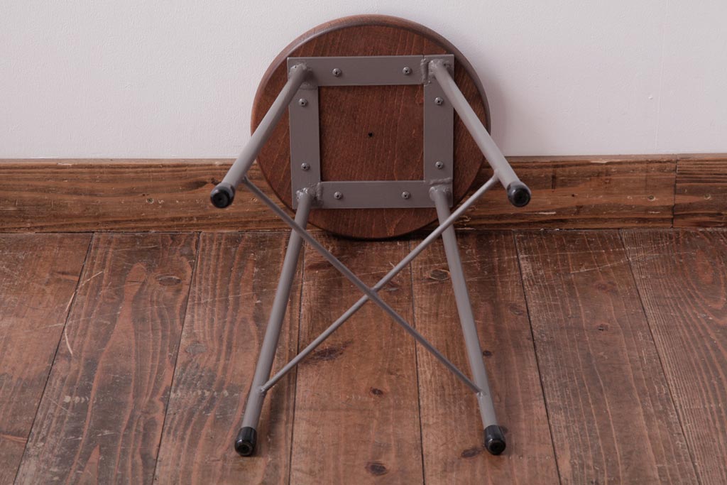 アンティーク雑貨 ラフジュ工房オリジナル 鉄脚 落ち着いた色味がおしゃれな丸スツール(チェア、椅子)(2)