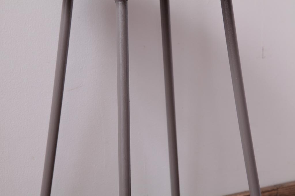ラフジュ工房オリジナル 鉄脚 落ち着いた色味がおしゃれな丸スツール(チェア、椅子)(2)です。 人気の鉄脚にペイントを施した ラフジュ工房オリジナルの丸スツールです。 チャコールグレーの落ち着いた色味がおしゃれで、 ナチュラルやブロカントスタイルにはもちろん、 ジャンクスタイルのお部屋にも馴染む一品です。 取り入れやすいコンパクトな大きさですので、 リビングやキッチン、玄関先に脱衣所など 様々シーンで活躍してくれますよ。 グリーンや雑貨のディスプレイ台としてもいかがでしょうか。 【椅子の座り心地について】(身長151cmの女性スタッフの場合) 座面の高さ:丁度いい 座面の広さ:丁度いい ペイントカラーはチャコールグレーです。 画面環境によって実際の商品と多少色味が異なる場合がございます。ご理解の上お願いします。 使用上問題のあるダメージはありません。 ■直径 260mm ■重量 約3kg