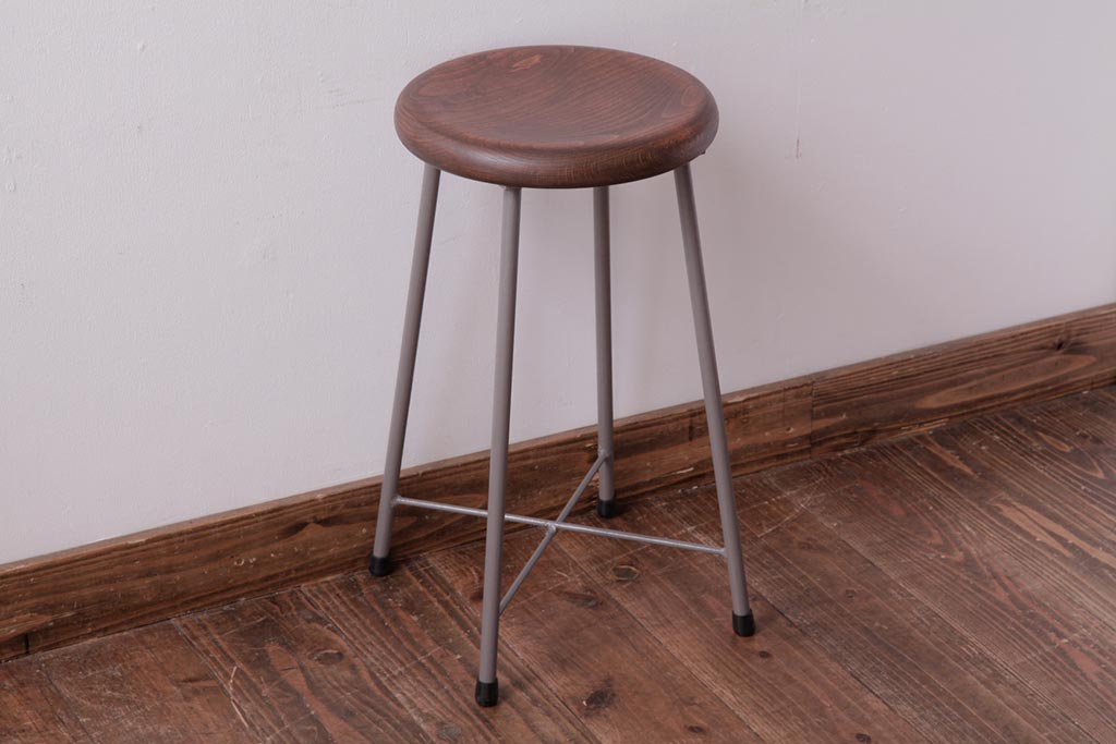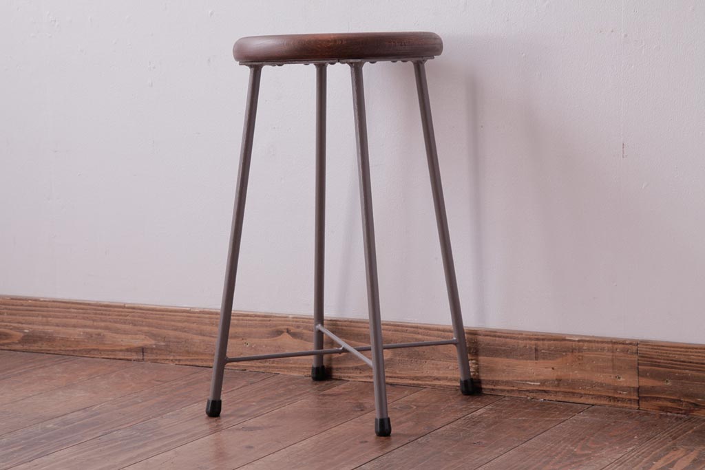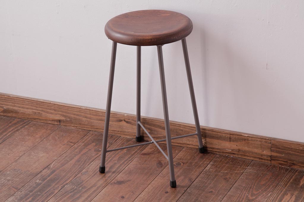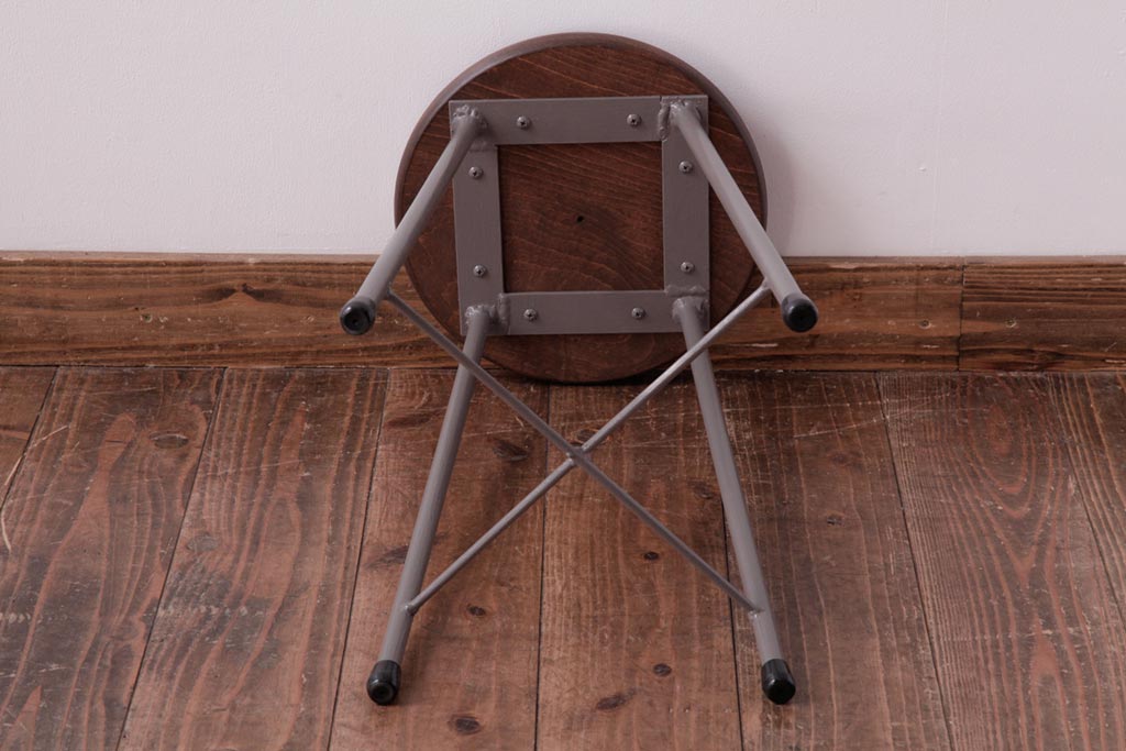 アンティーク雑貨 ラフジュ工房オリジナル 鉄脚 落ち着いた色味がおしゃれな丸スツール(チェア、椅子)(3)