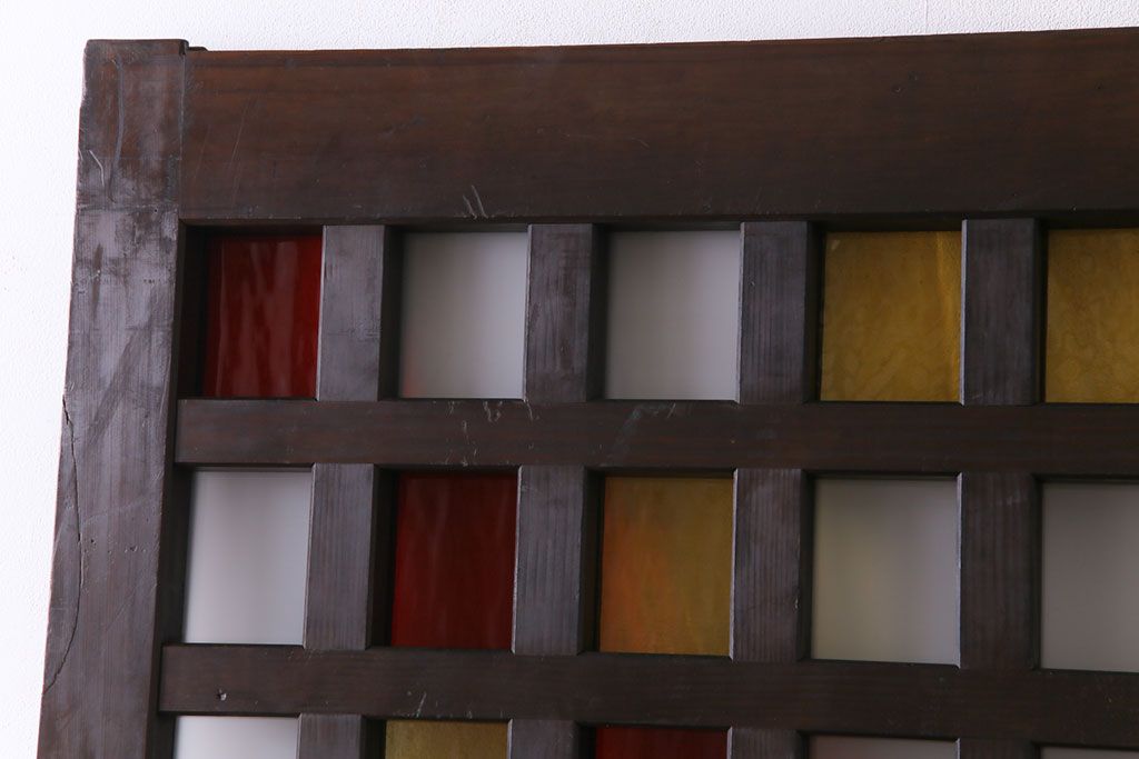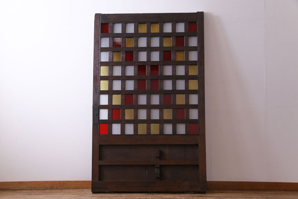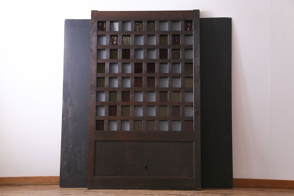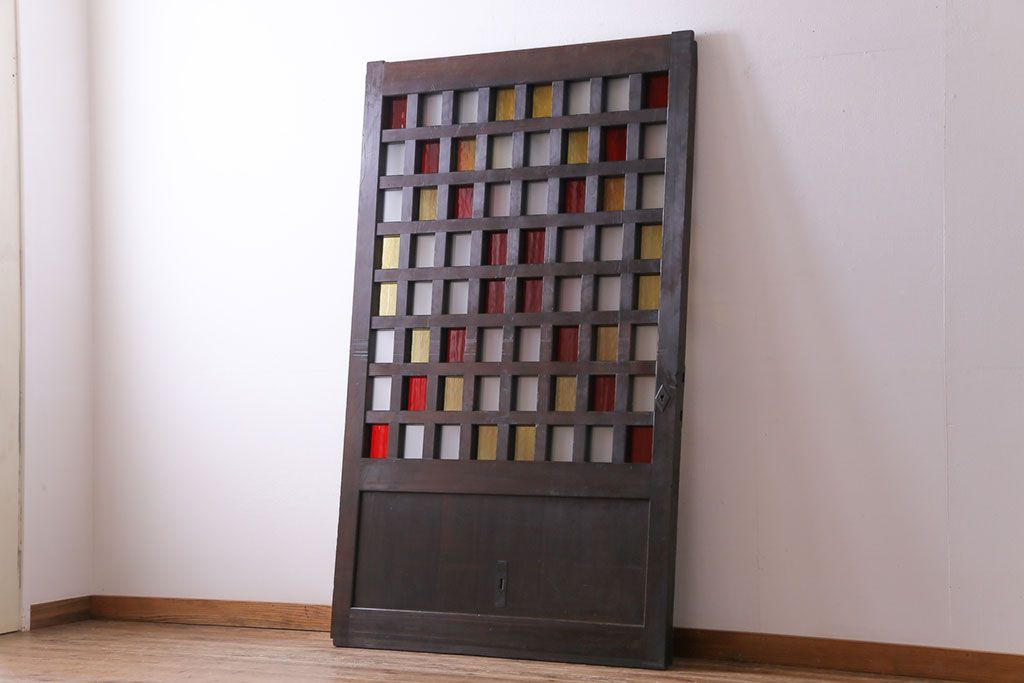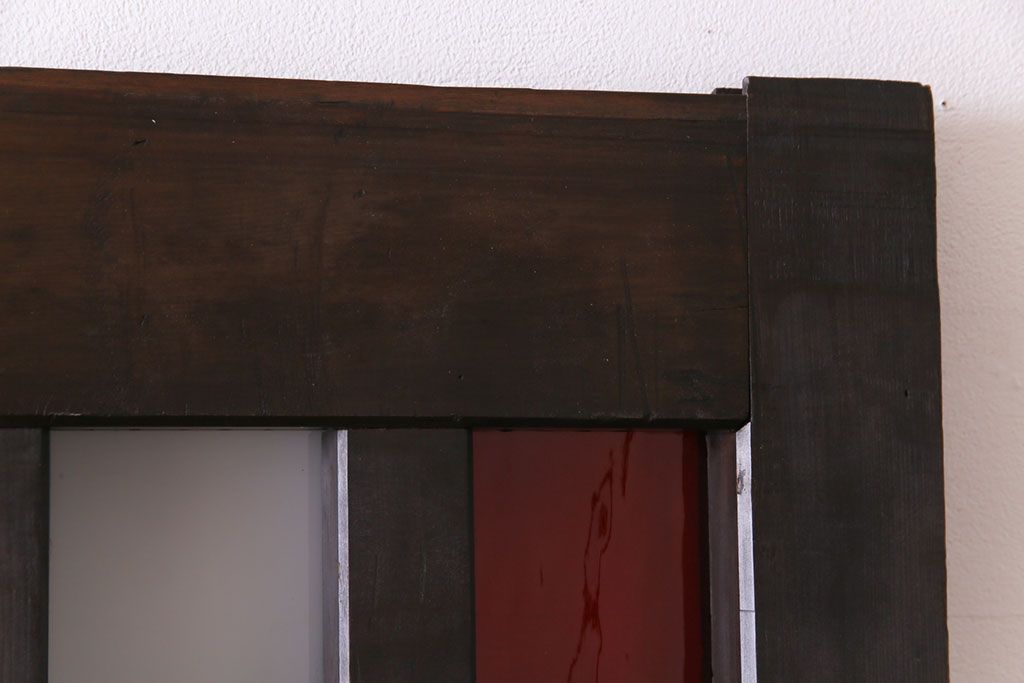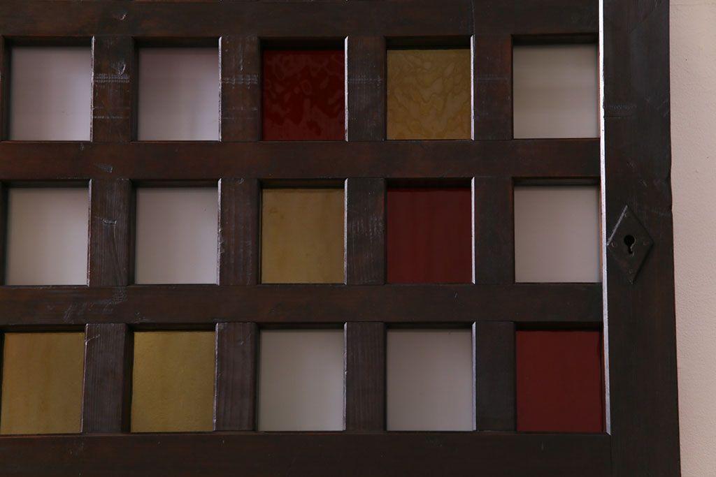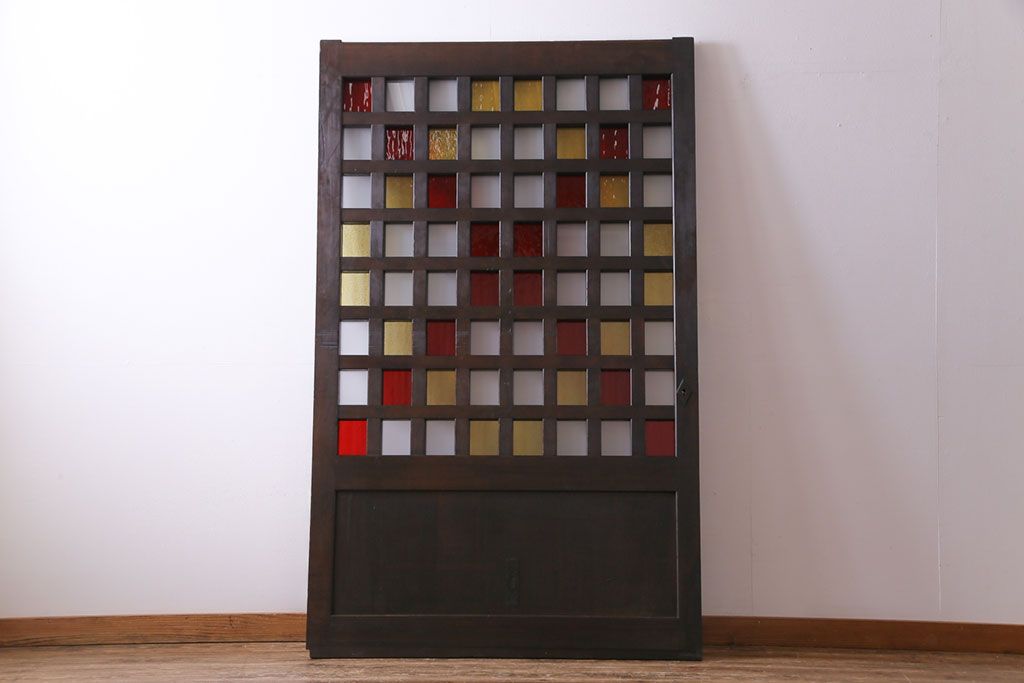 和製アンティーク ヒノキ材 色ガラス入り 大正ロマンの雰囲気がお洒落な蔵戸(建具、引き戸、玄関戸)