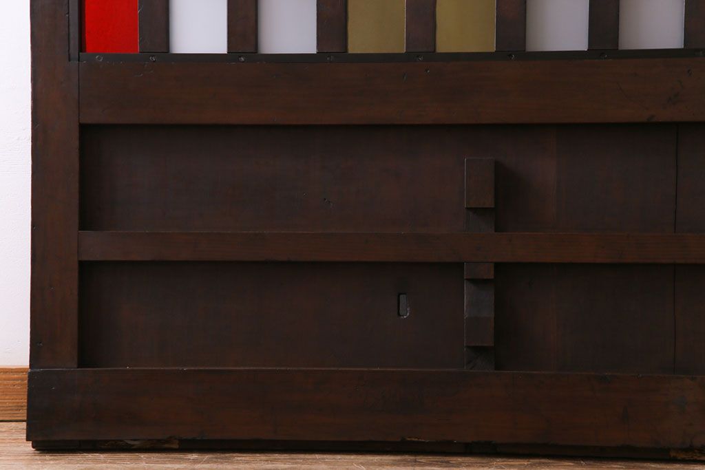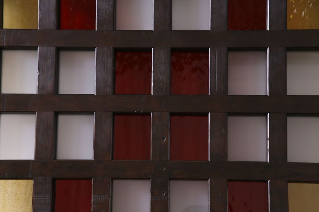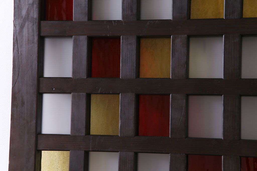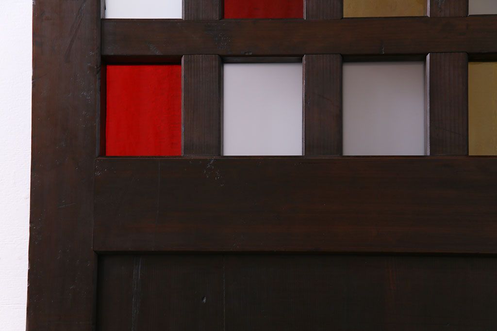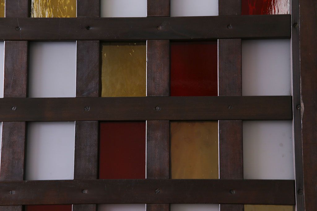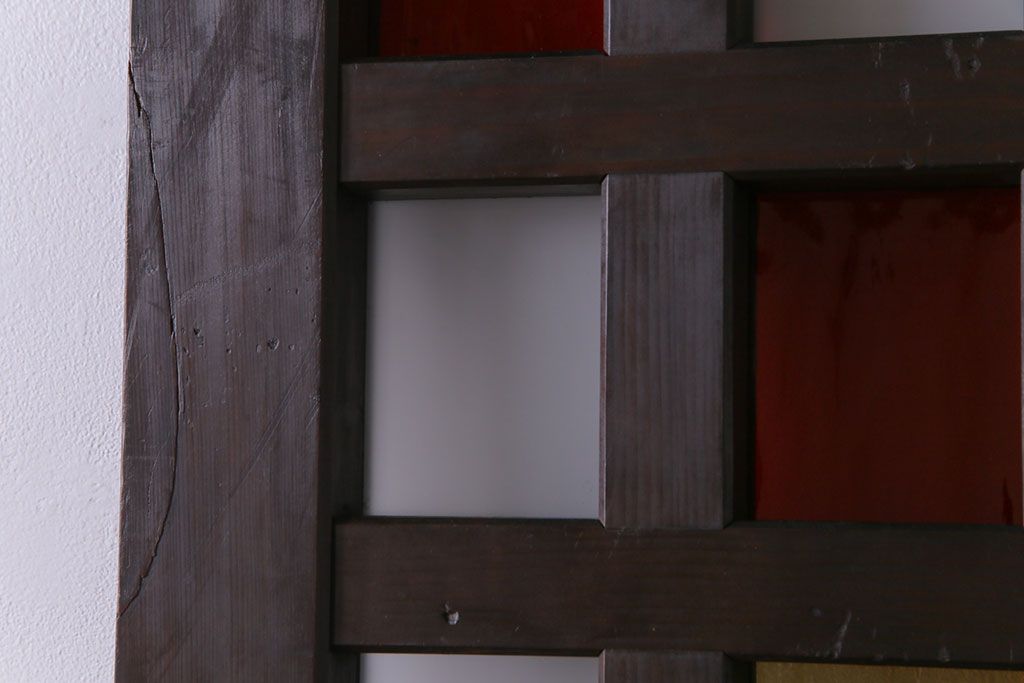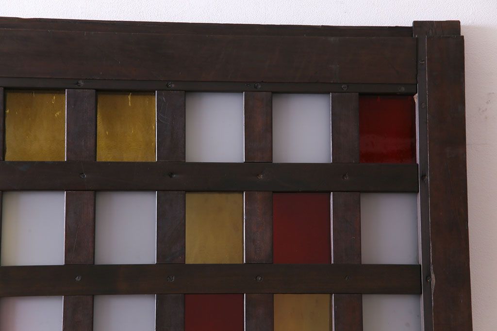 和製アンティーク ヒノキ材 色ガラス入り 大正ロマンの雰囲気がお洒落な蔵戸(建具、引き戸、玄関戸)