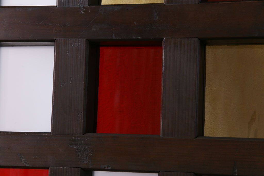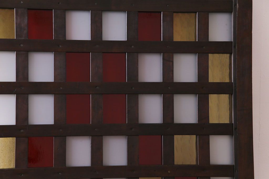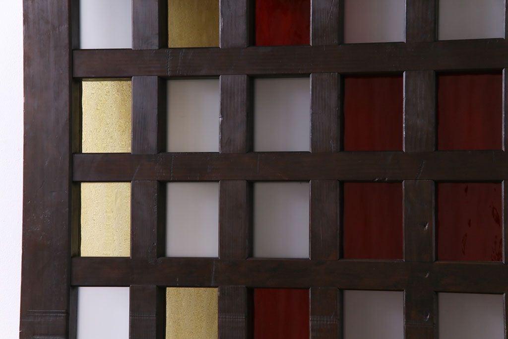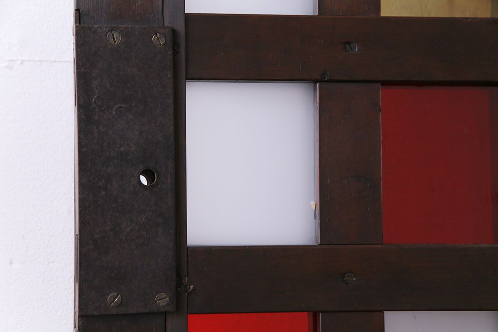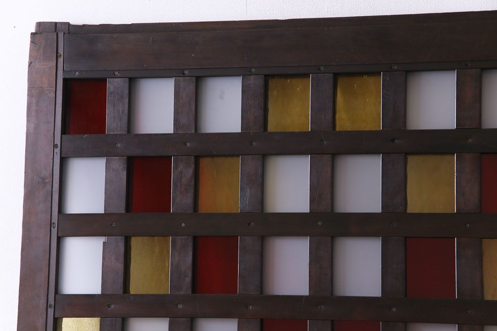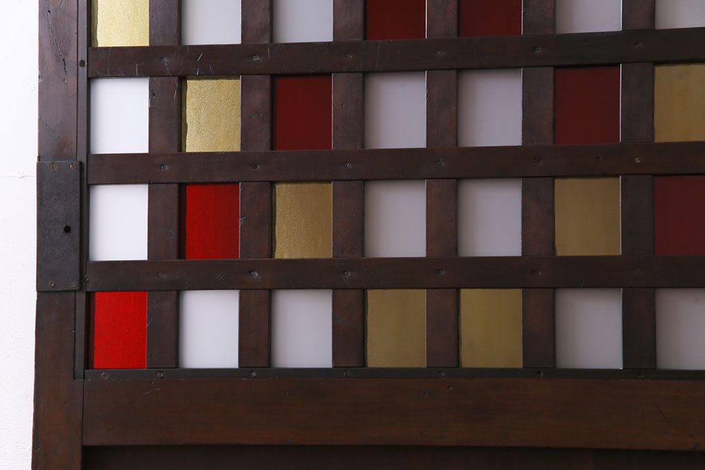 和製アンティーク ヒノキ材 色ガラス入り 大正ロマンの雰囲気がお洒落な蔵戸(建具、引き戸、玄関戸)です。