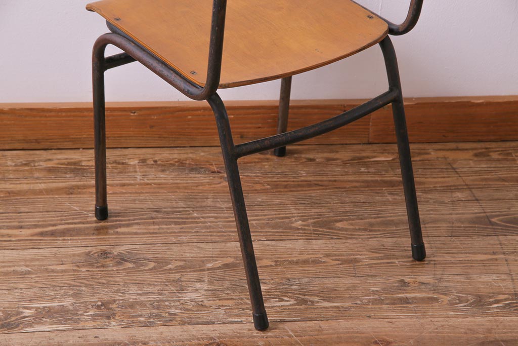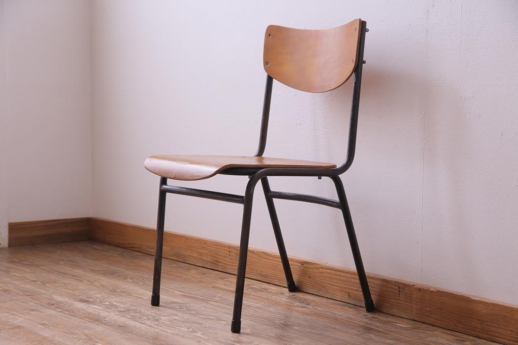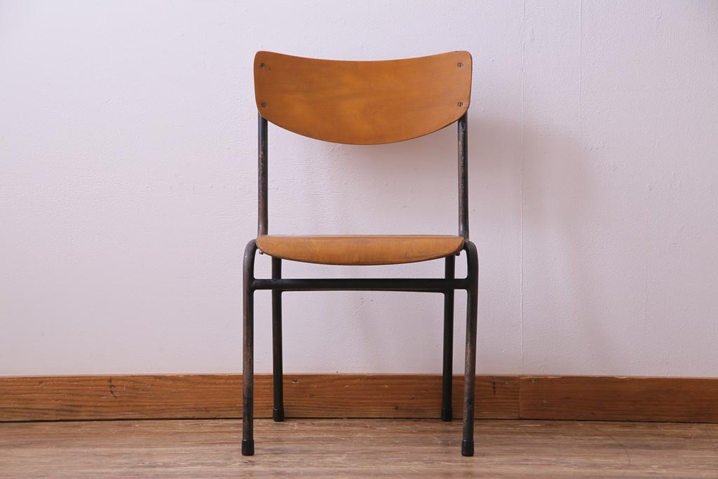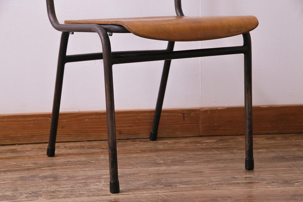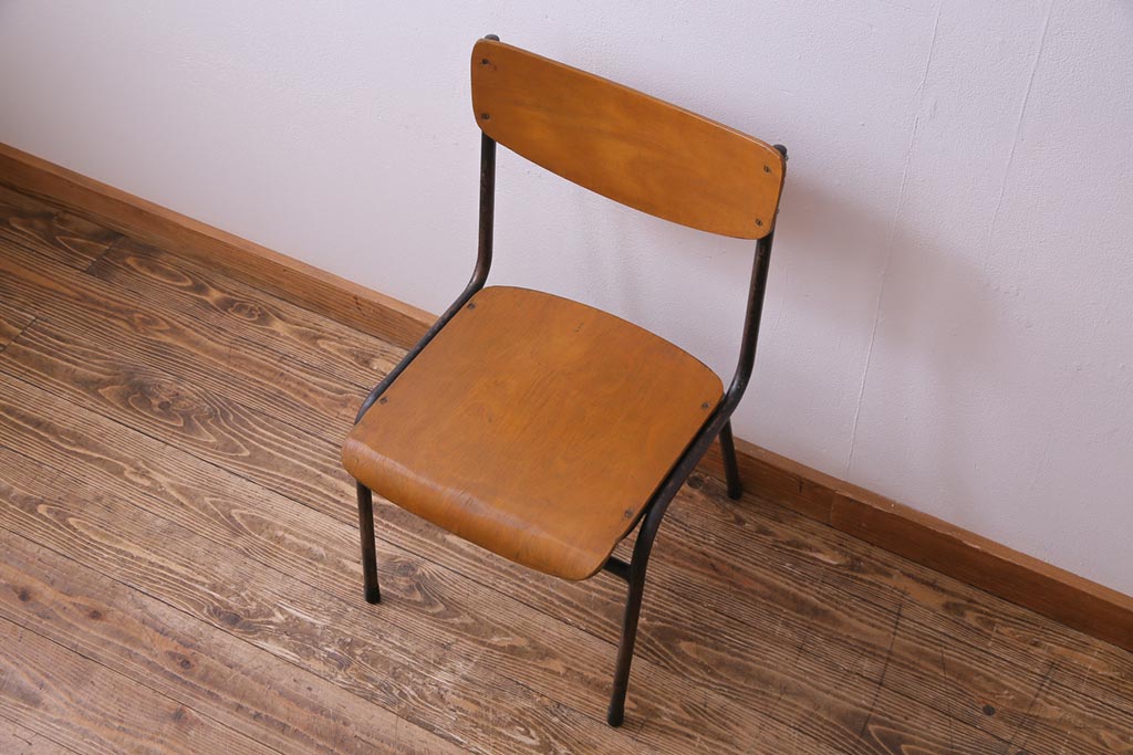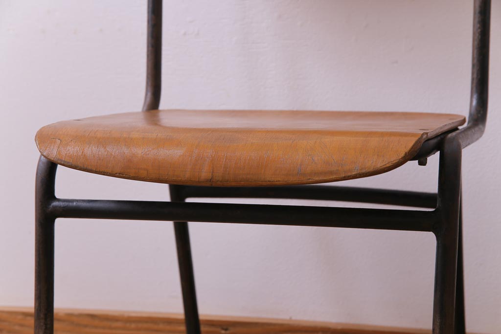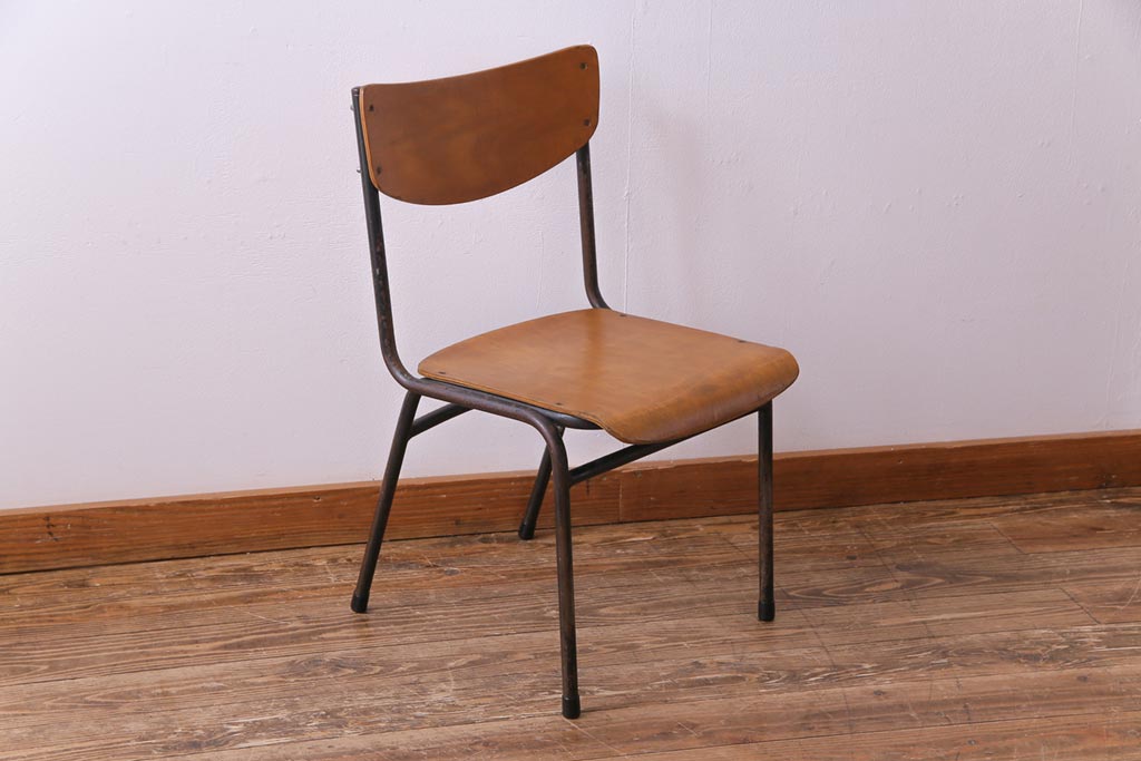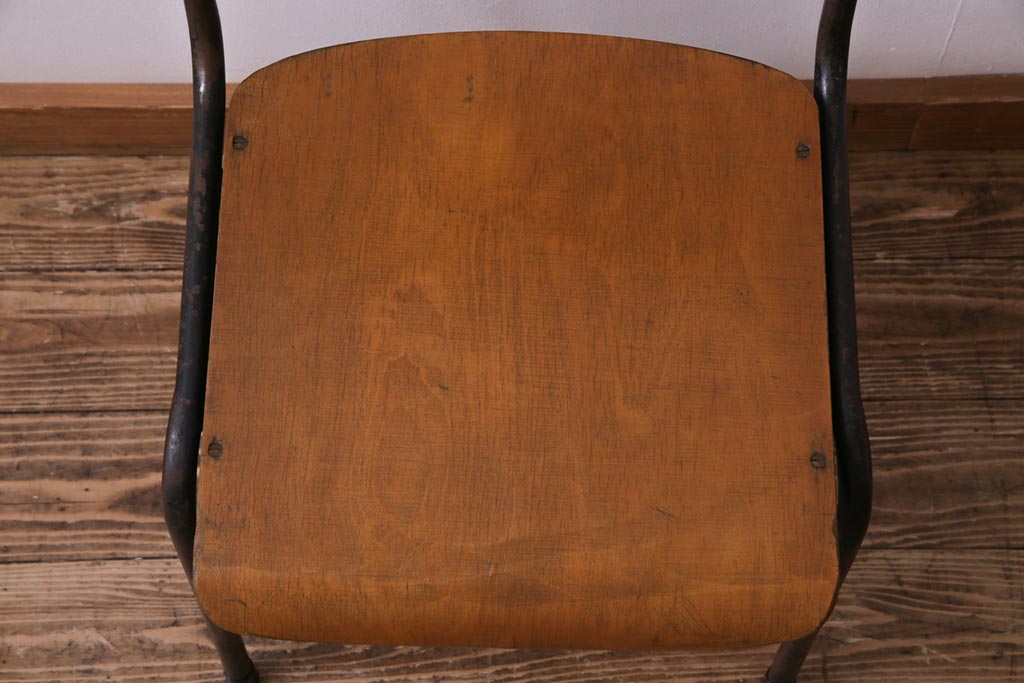 ヴィンテージ家具 ヨーロッパビンテージ 素朴さと独特の柔らかな雰囲気が魅力のスクールチェア(キッズチェア、鉄脚チェア、椅子)