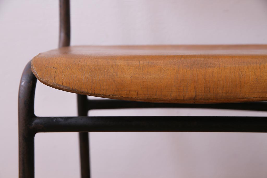 ヨーロッパビンテージ 素朴さと独特の柔らかな雰囲気が魅力のスクールチェア(キッズチェア、鉄脚チェア、椅子)です。