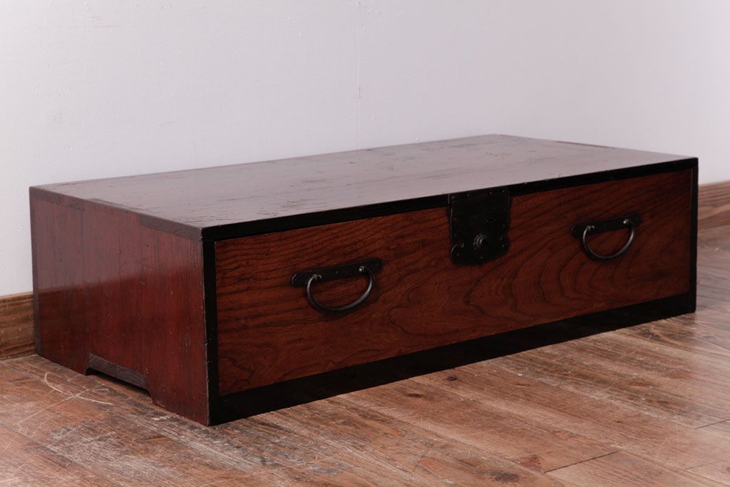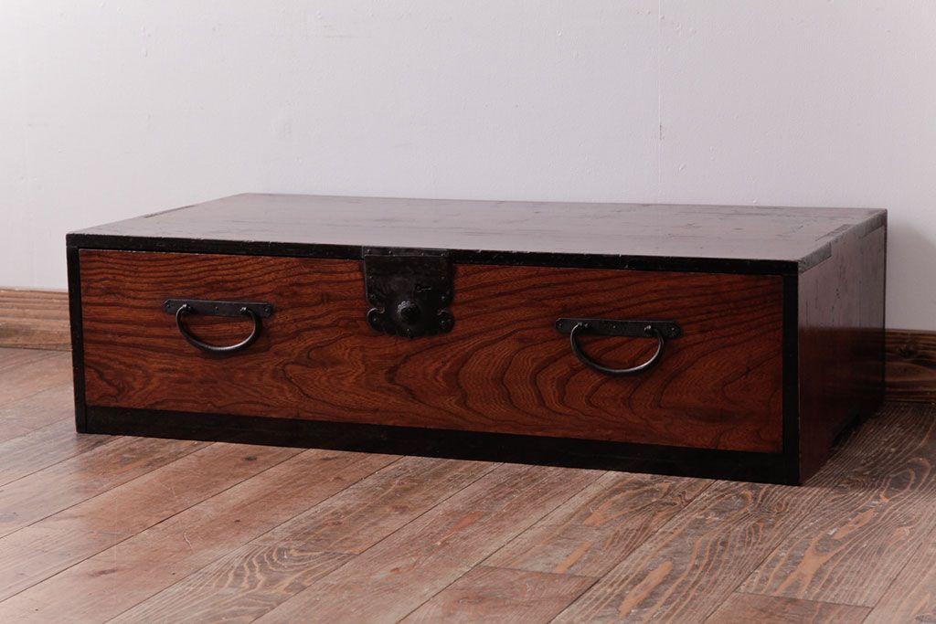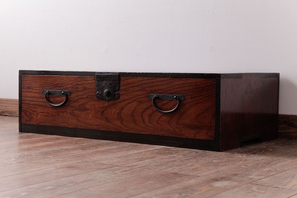 アンティーク家具 和製アンティーク 前面ケヤキ材 古い質感が味わい深い時代箪笥ローボード(引き出し、衣装箪笥)