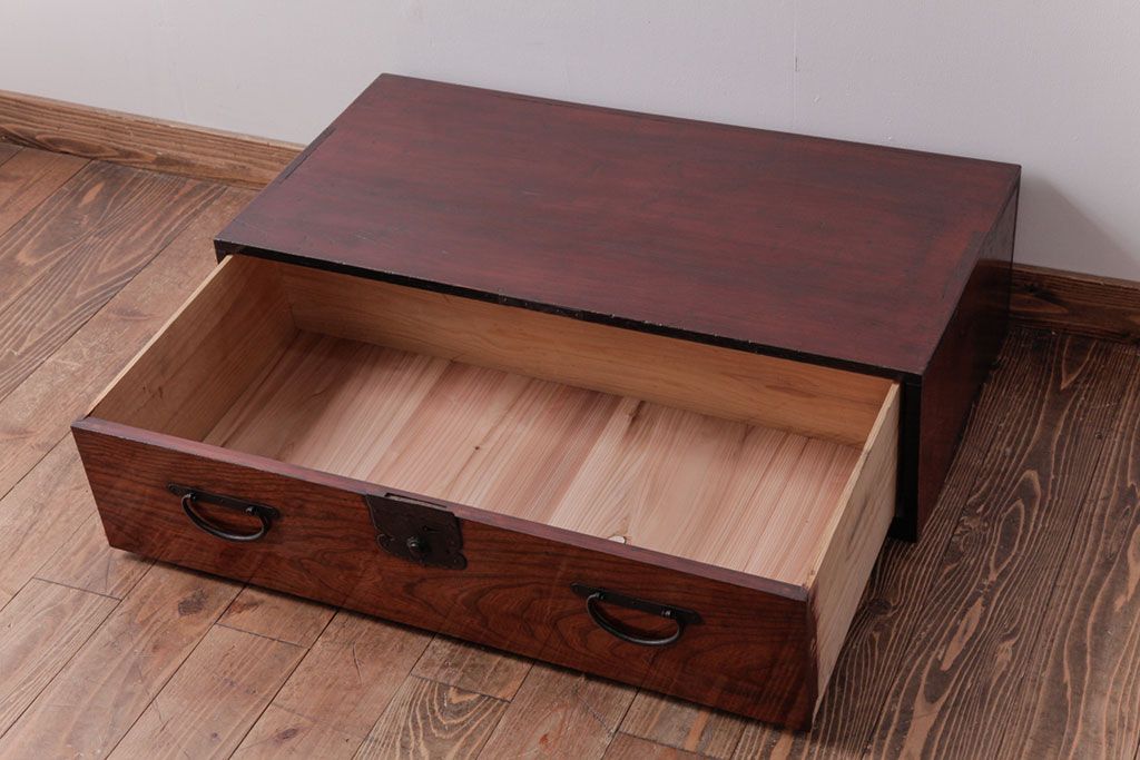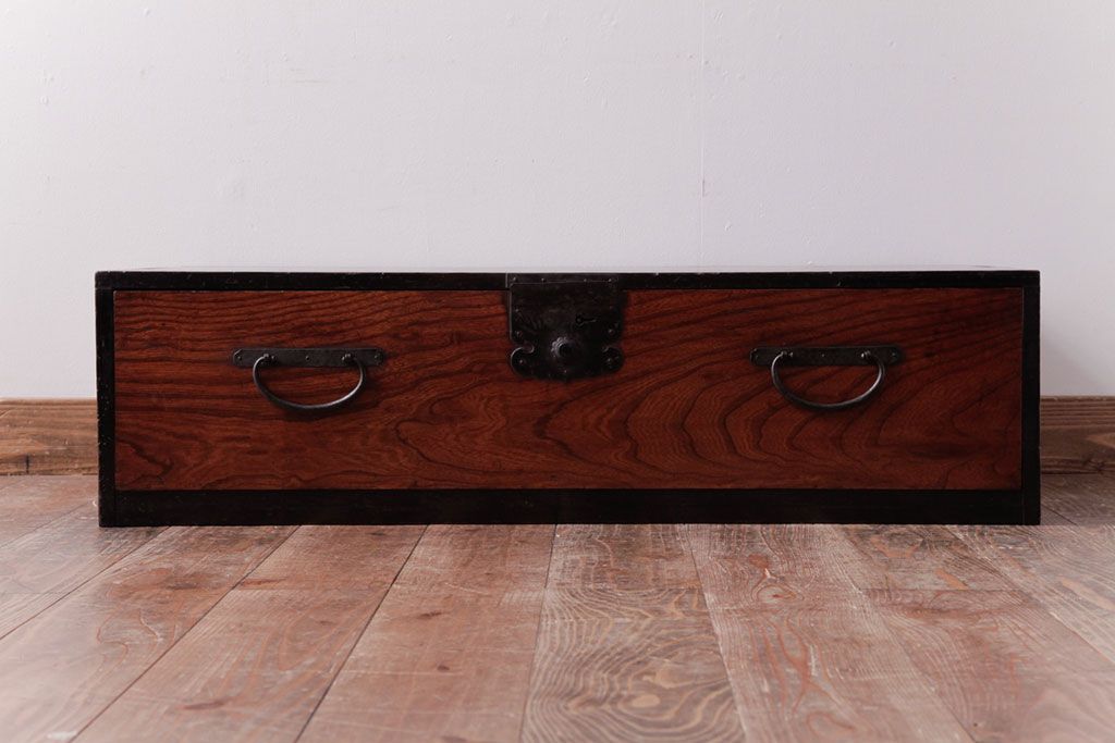 ラフジュ工房> 和箪笥 > アンティーク家具 和製アンティーク 前面ケヤキ材 古い質感が味わい深い時代箪笥ローボード(引き出し、衣装箪笥)