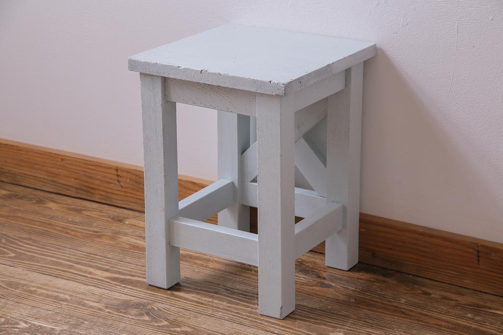 レトロ家具 昭和レトロ 淡い色合いが愛らしいペイントスツール(学校スツール、花台、板座チェア)(R-031611)です。