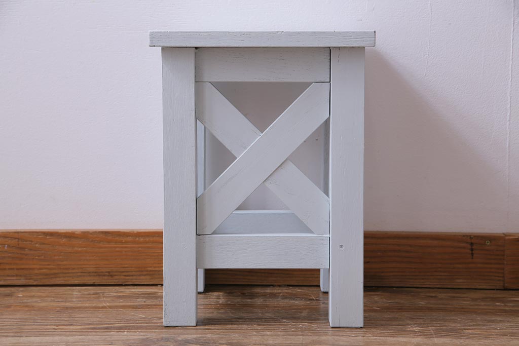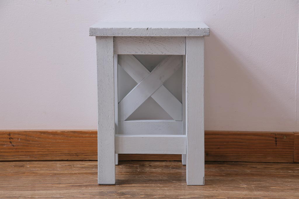 花台・飾り台 > レトロ家具 昭和レトロ 淡い色合いが愛らしいペイントスツール(学校スツール、花台、板座チェア)(R-031611)