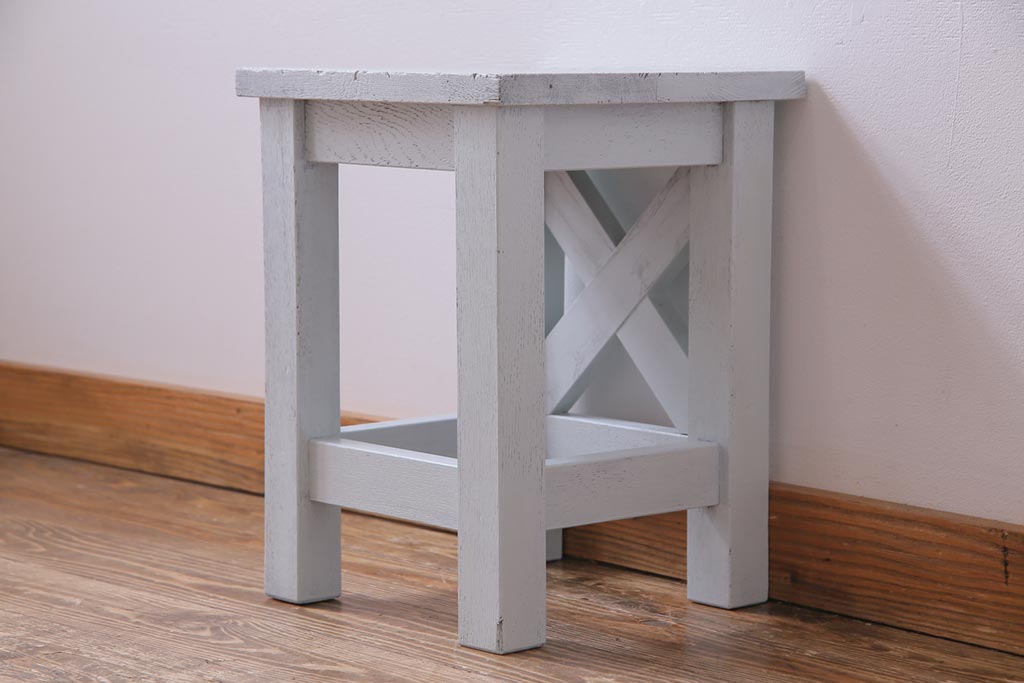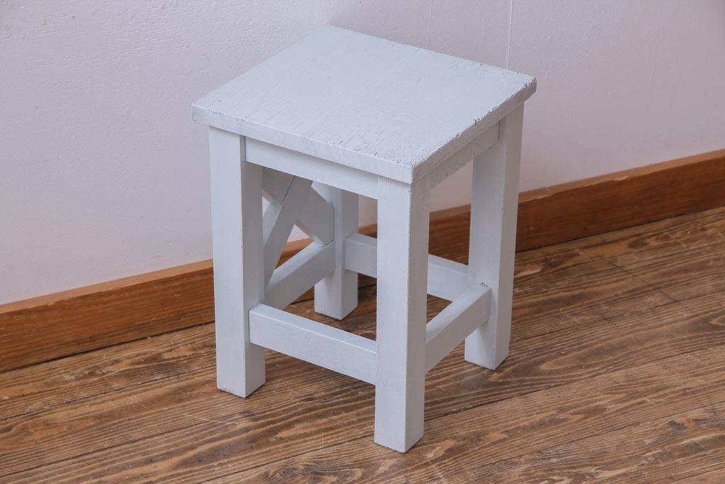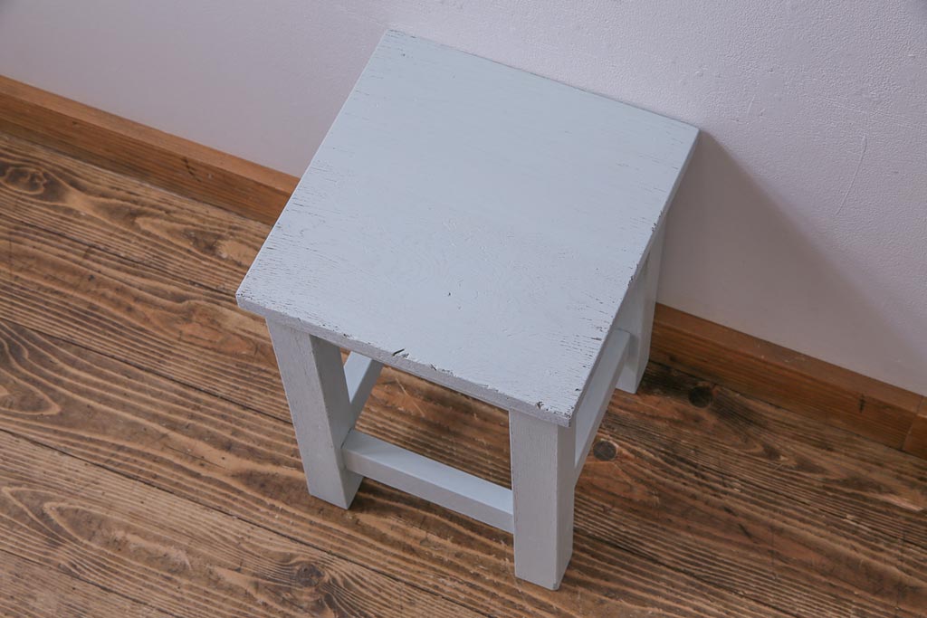 レトロ家具 昭和レトロ 淡い色合いが愛らしいペイントスツール(学校スツール、花台、板座チェア)(R-031611)