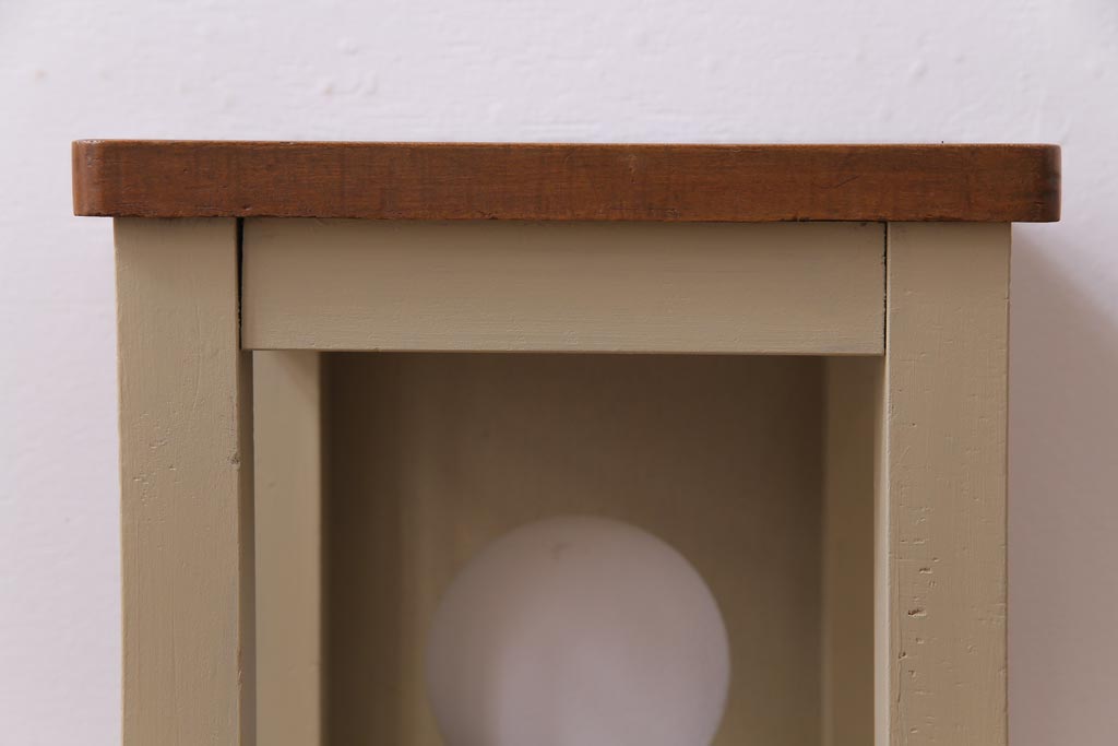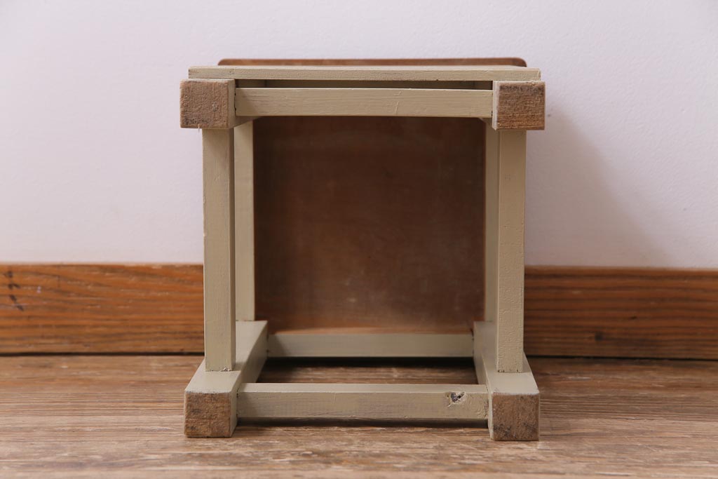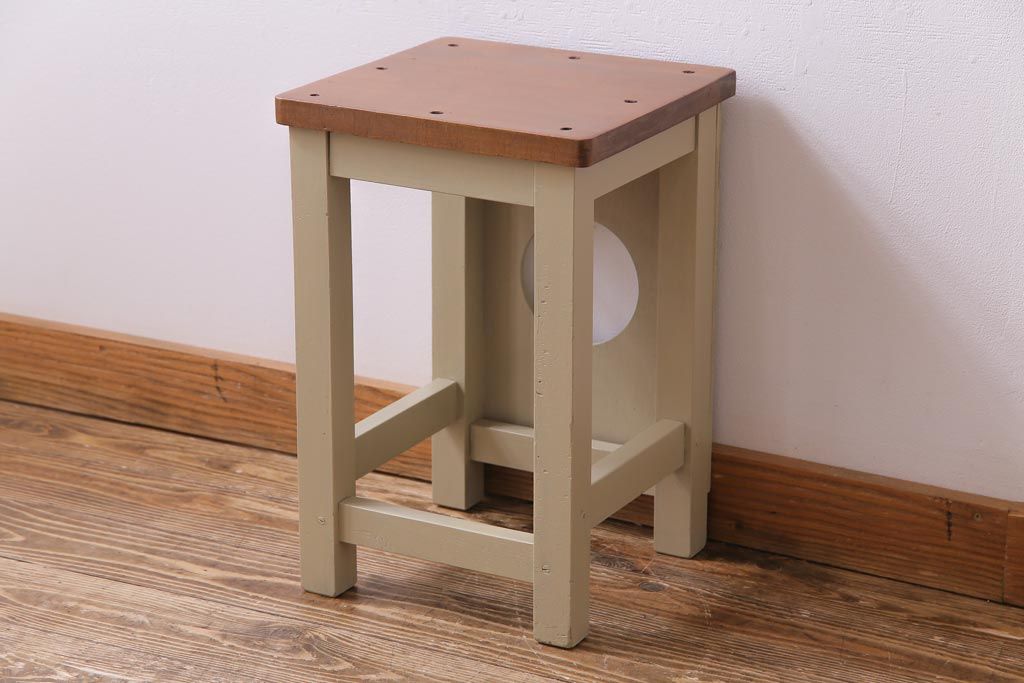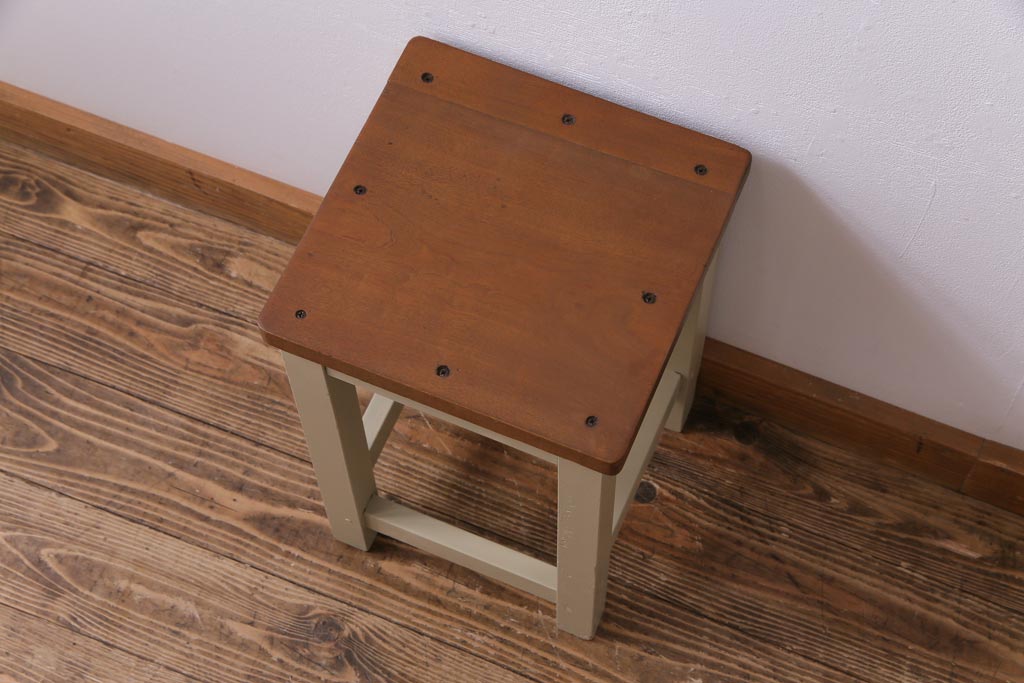 昭和中期 ペイント家具 ナチュラルな雰囲気が可愛らしい角スツール(モカベージュ、板座チェア、椅子、イス)(R-031647)