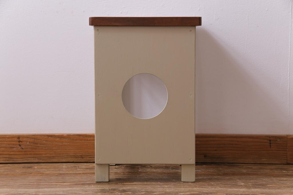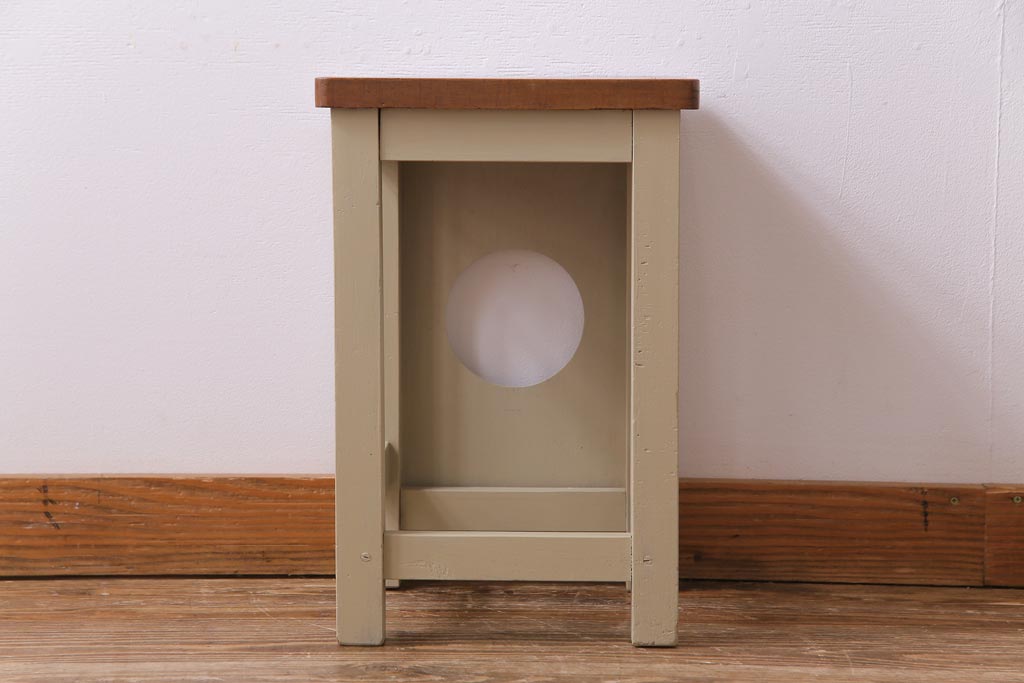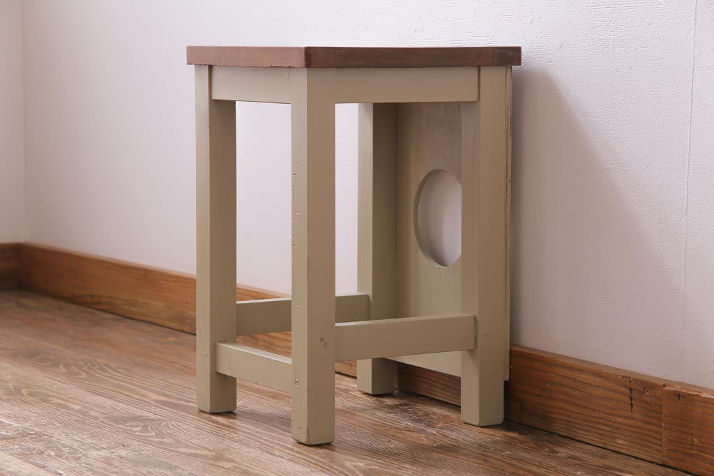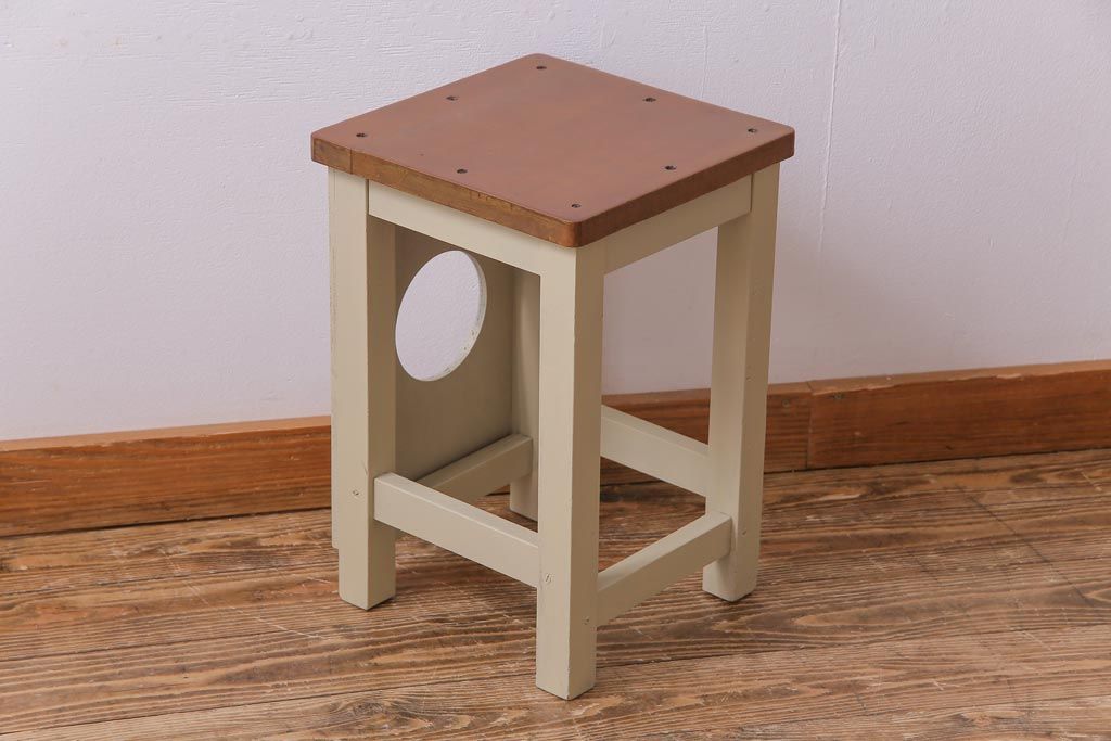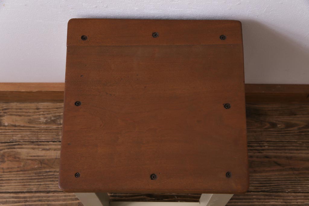 椅子・ベンチ> スツール > 昭和中期 ペイント家具 ナチュラルな雰囲気が可愛らしい角スツール(モカベージュ、板座チェア、椅子、イス)(R-031647)