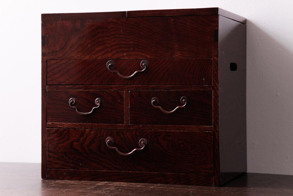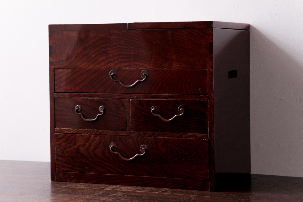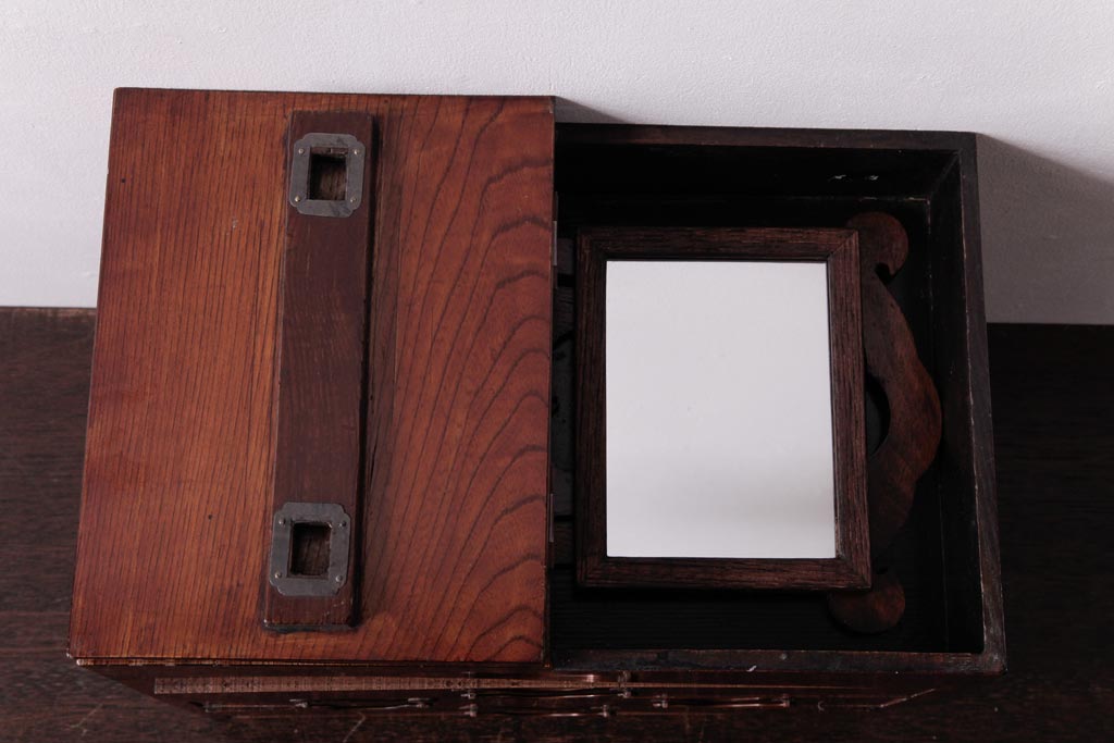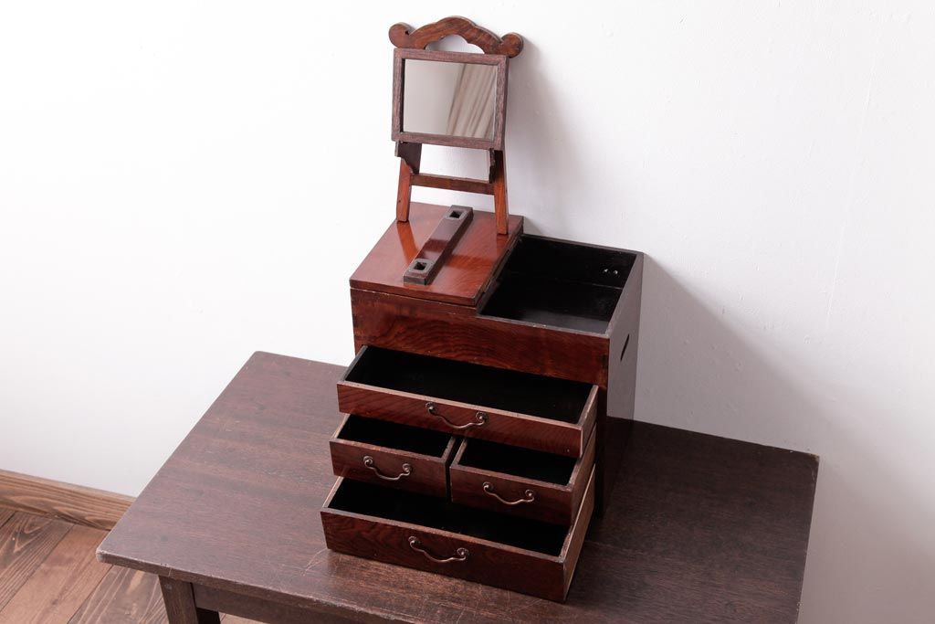 アンティーク家具 和製アンティーク 総ケヤキ材 玉杢が上品な引き出し付きの鏡台(化粧箱、小引き出し、小物収納)