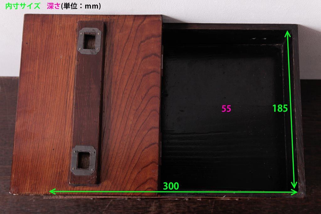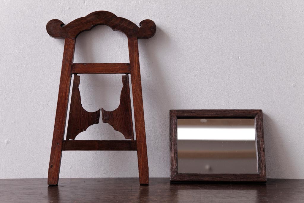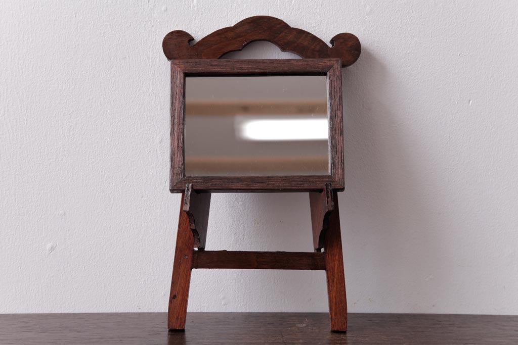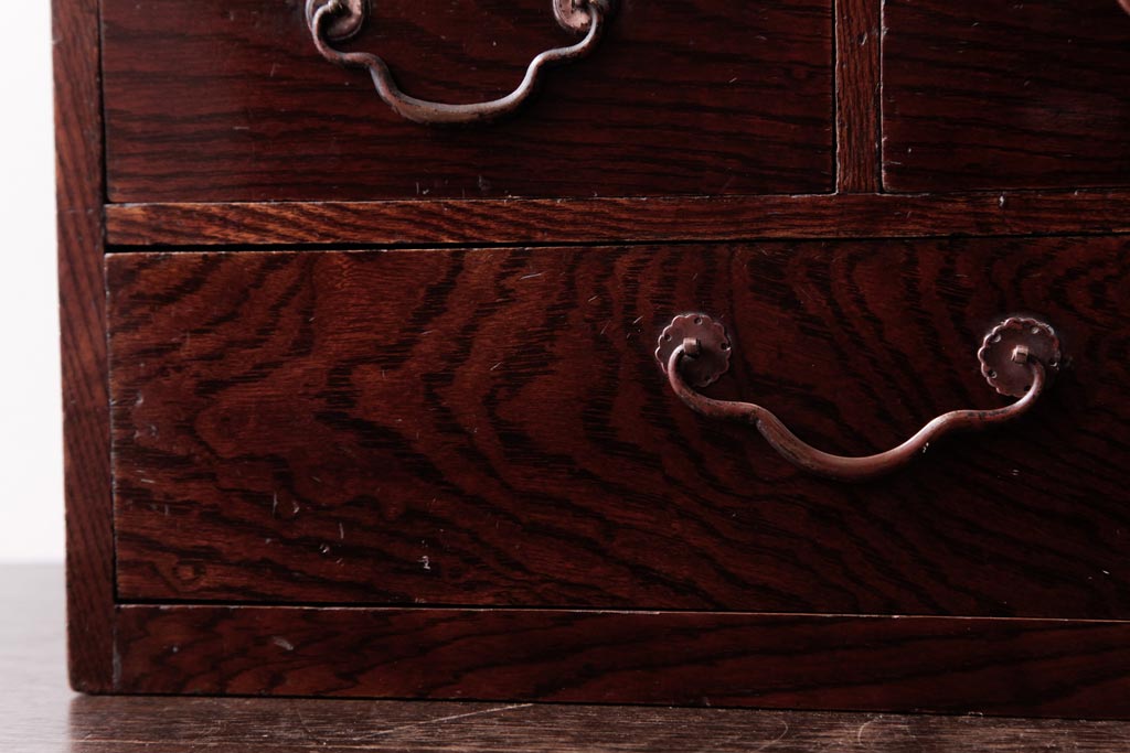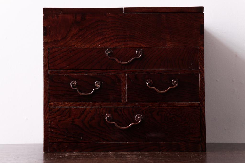 アンティーク家具 和製アンティーク 総ケヤキ材 玉杢が上品な引き出し付きの鏡台(化粧箱、小引き出し、小物収納)
