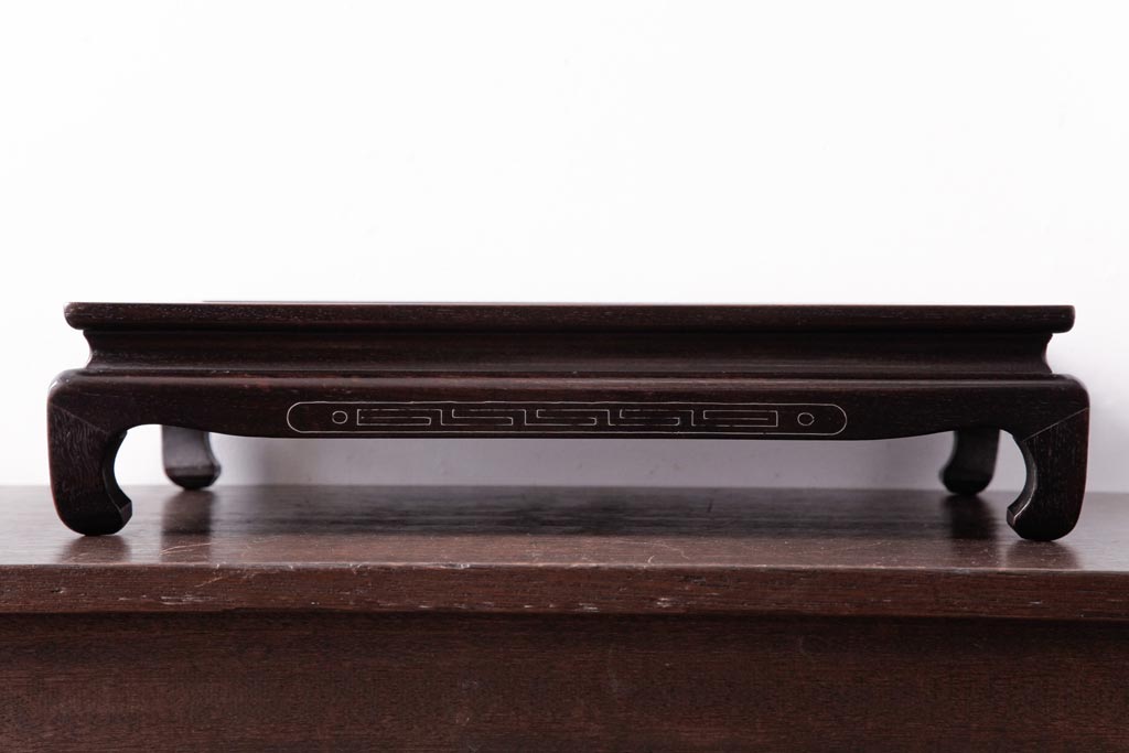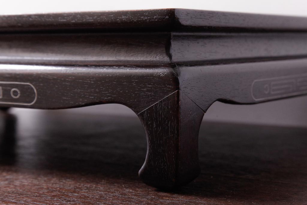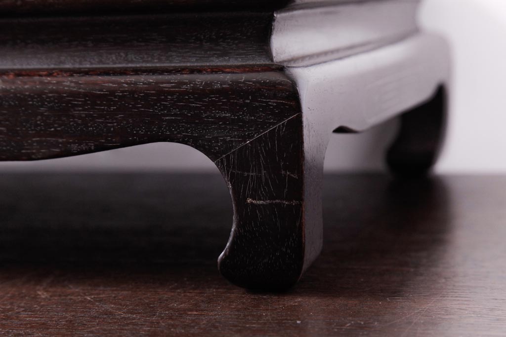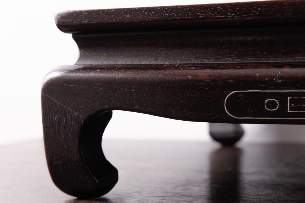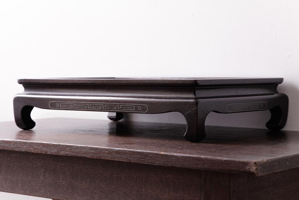 骨董・美術品 > アンティーク雑貨 古民具・骨董 象嵌入り 赤黒い艶めきが気品漂う紫檀材の花台(飾り台、盆栽卓)