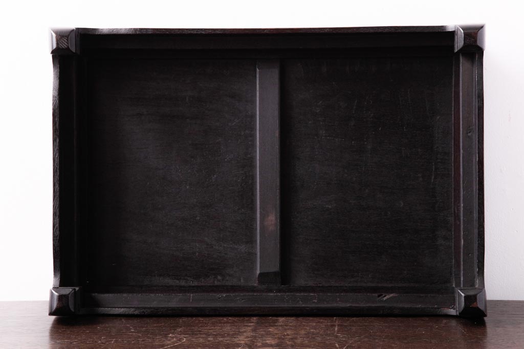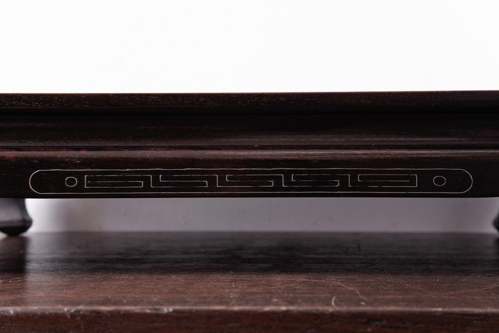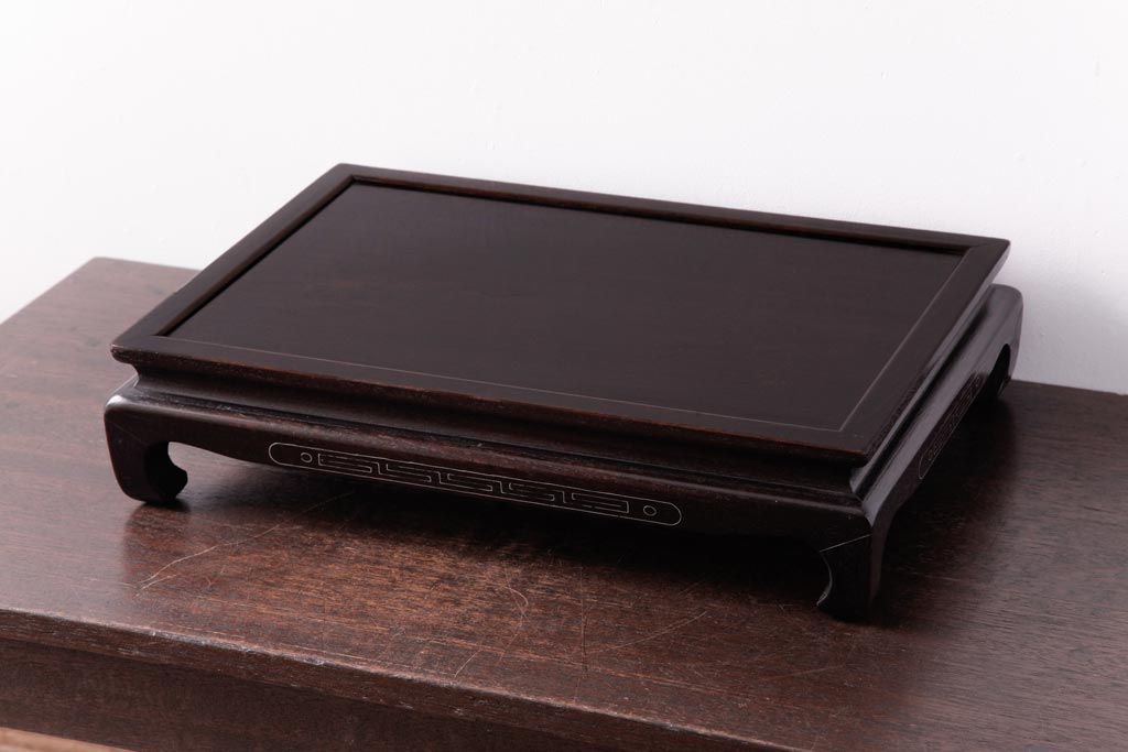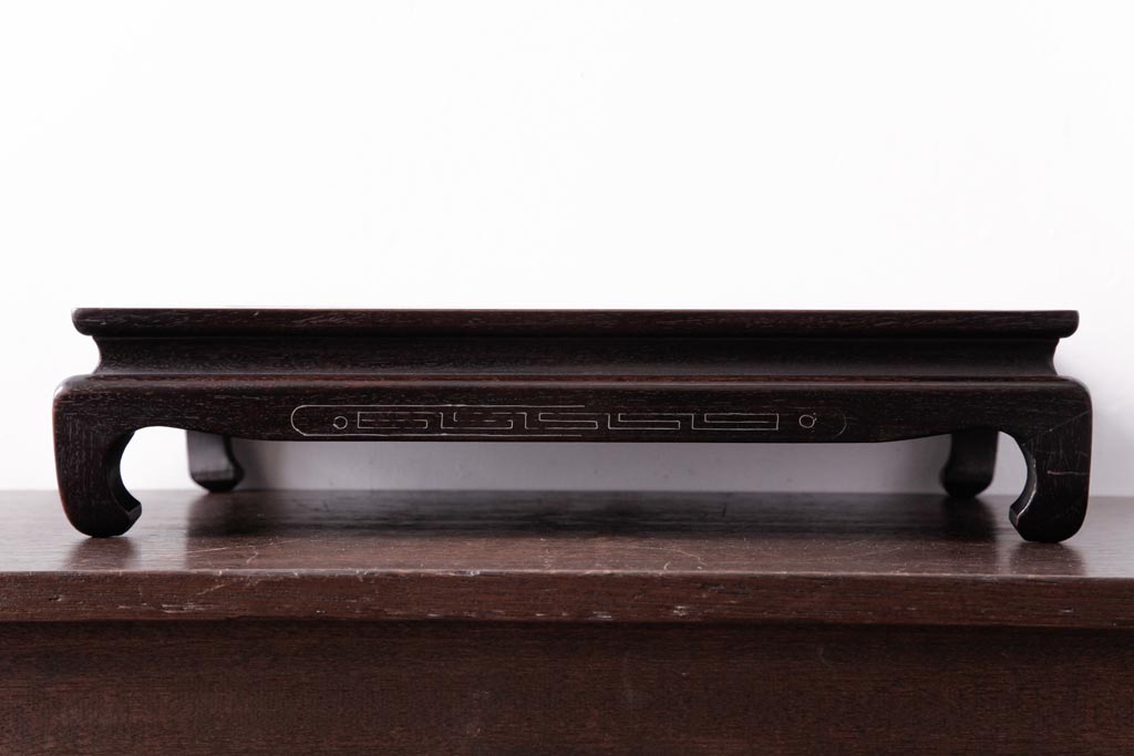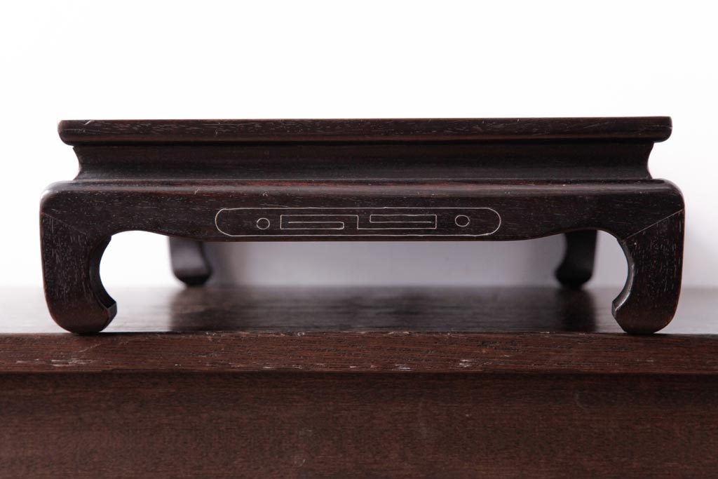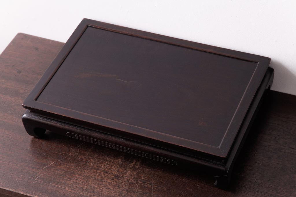 骨董・美術品 > アンティーク雑貨 古民具・骨董 象嵌入り 赤黒い艶めきが気品漂う紫檀材の花台(飾り台、盆栽卓)
