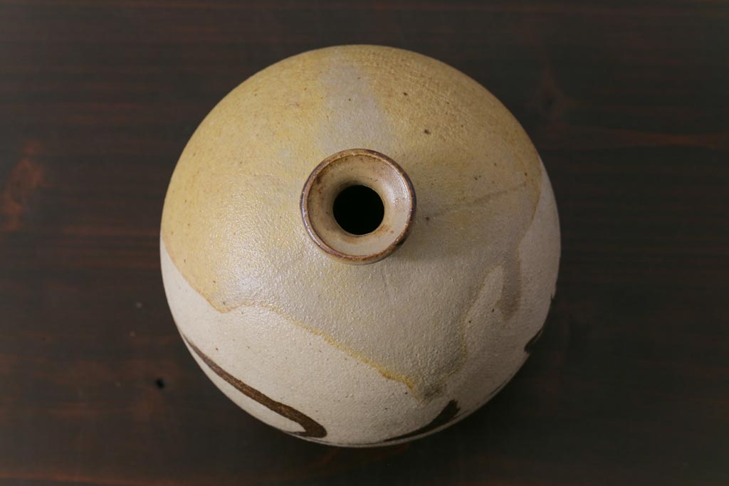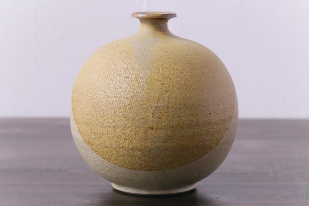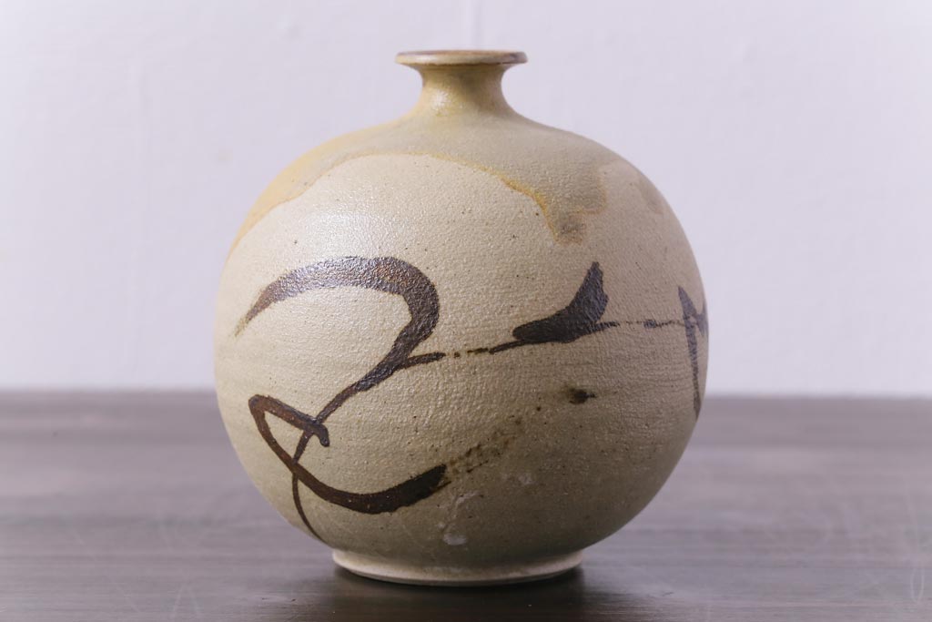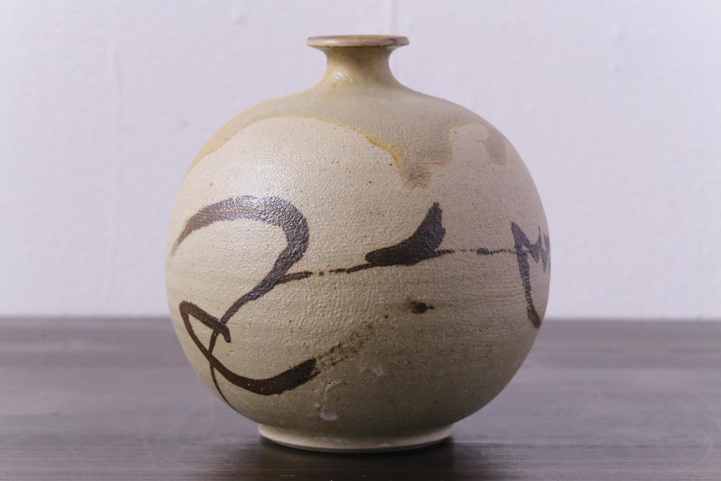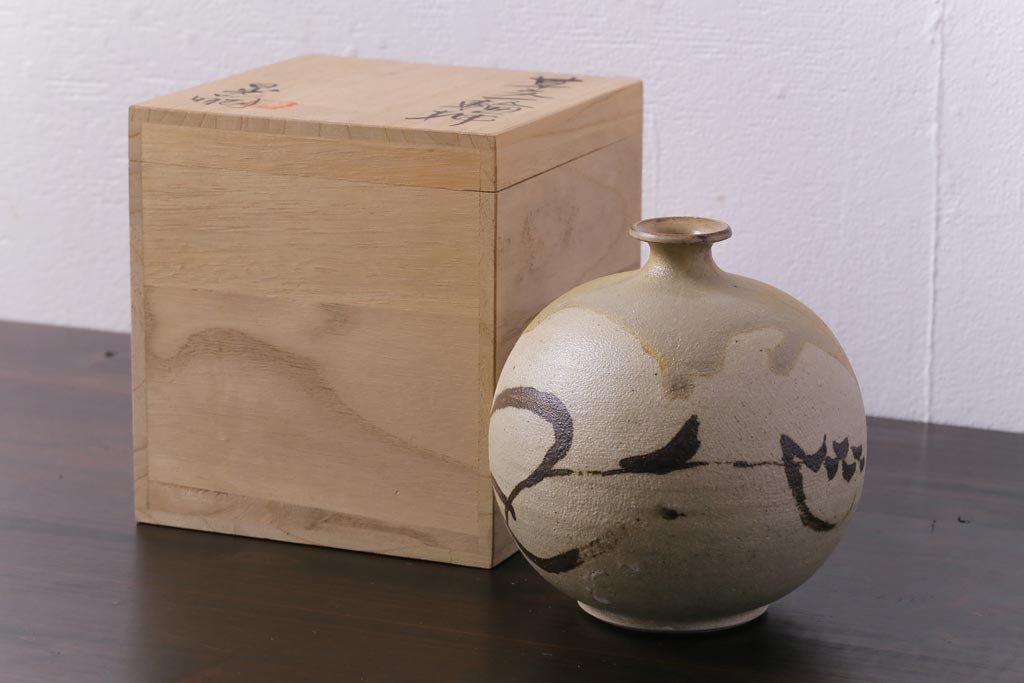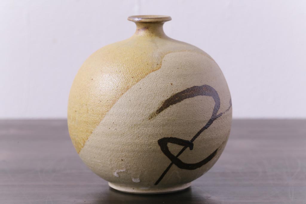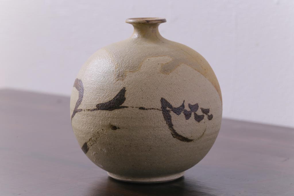 アンティーク雑貨 昭和期 笠間焼 中野晃嗣 草文一輪挿(花瓶、花器)