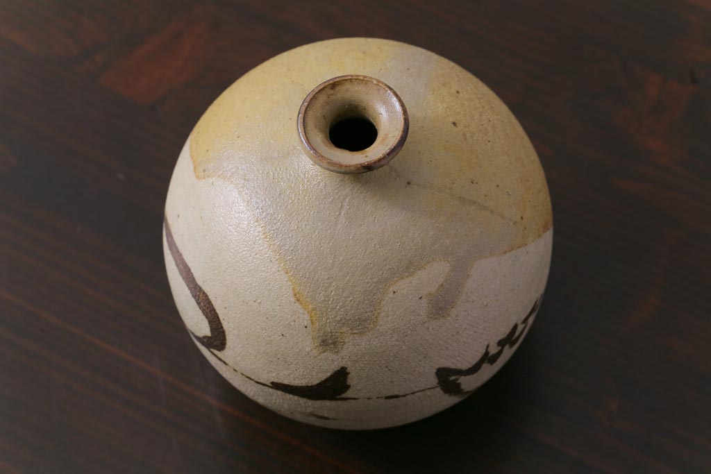 昭和期 笠間焼 中野晃嗣 草文一輪挿(花瓶、花器)です。