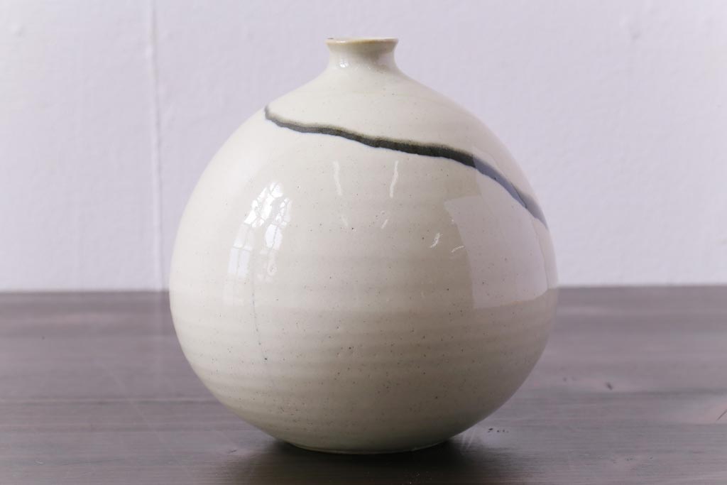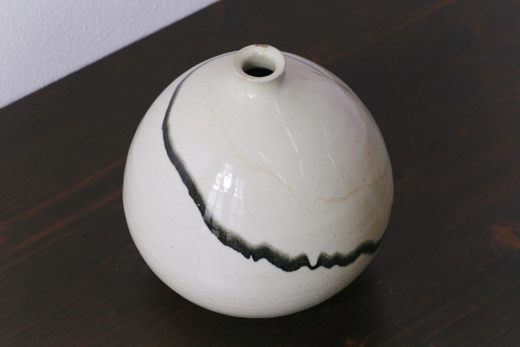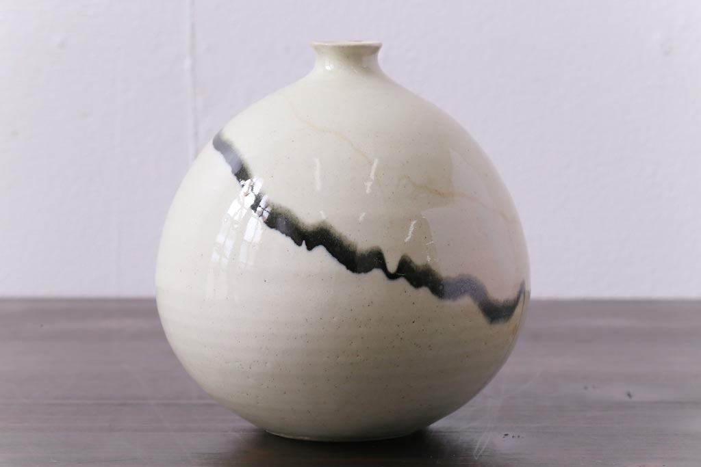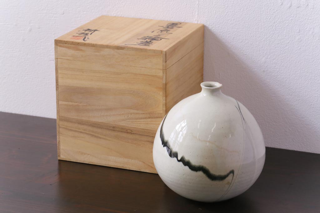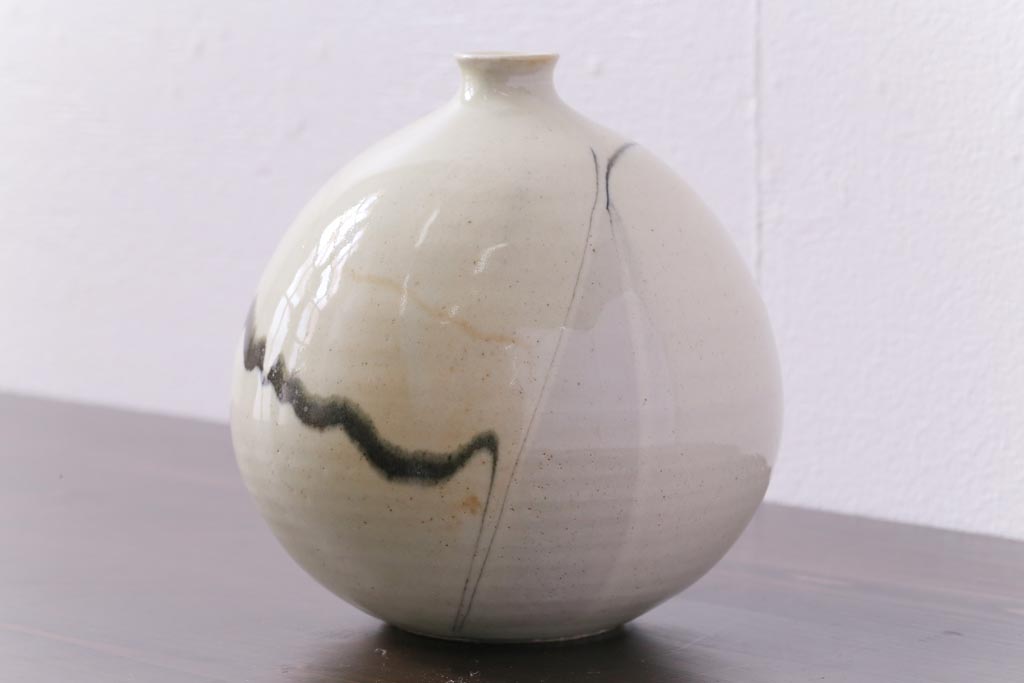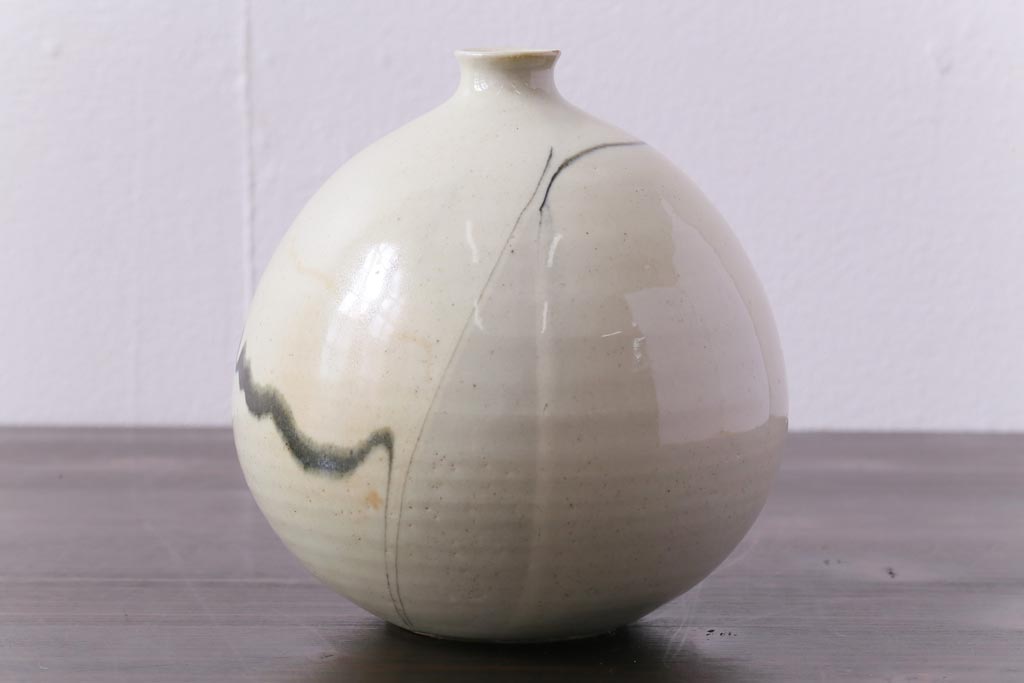 アンティーク雑貨 昭和期 笠間焼 荒田耕治 墨流一輪挿(花瓶、花器)