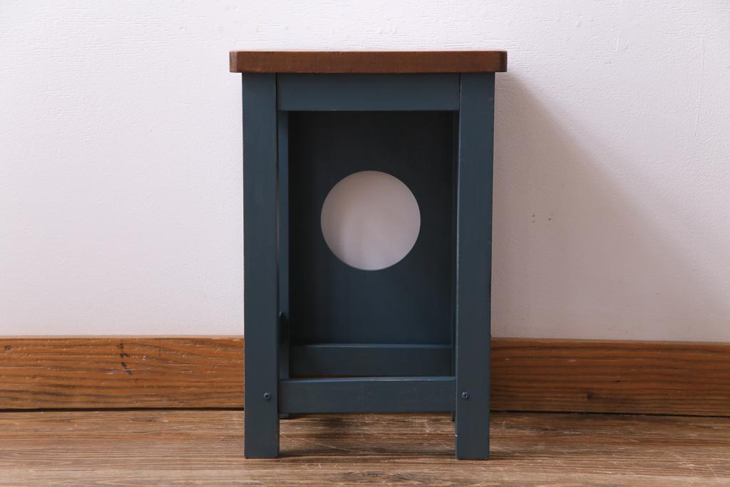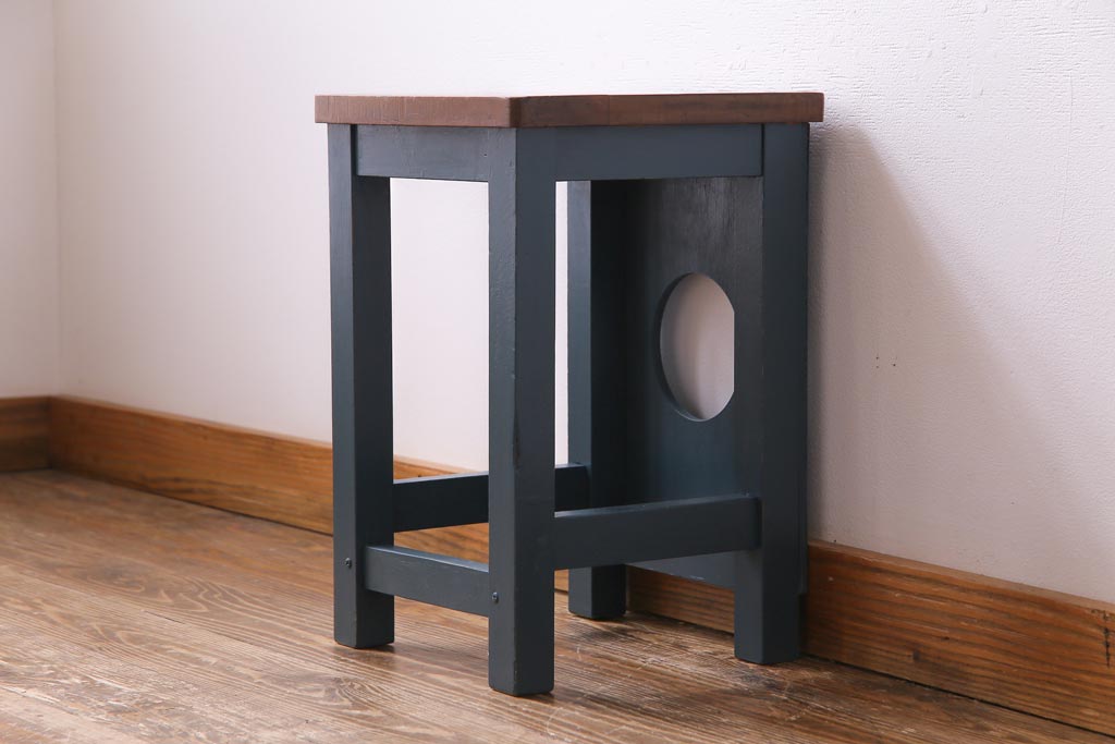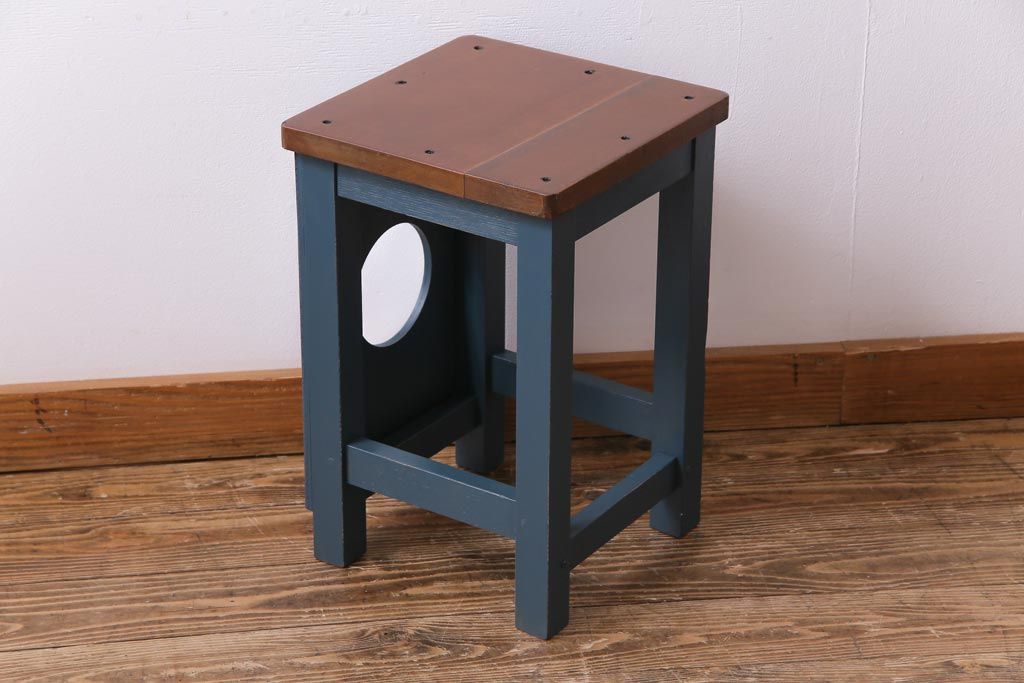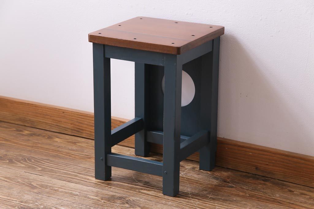 ペイント家具 メンズライクにもおすすめなネイビーカラーの学校スツール(角スツール、花台)(3)です。