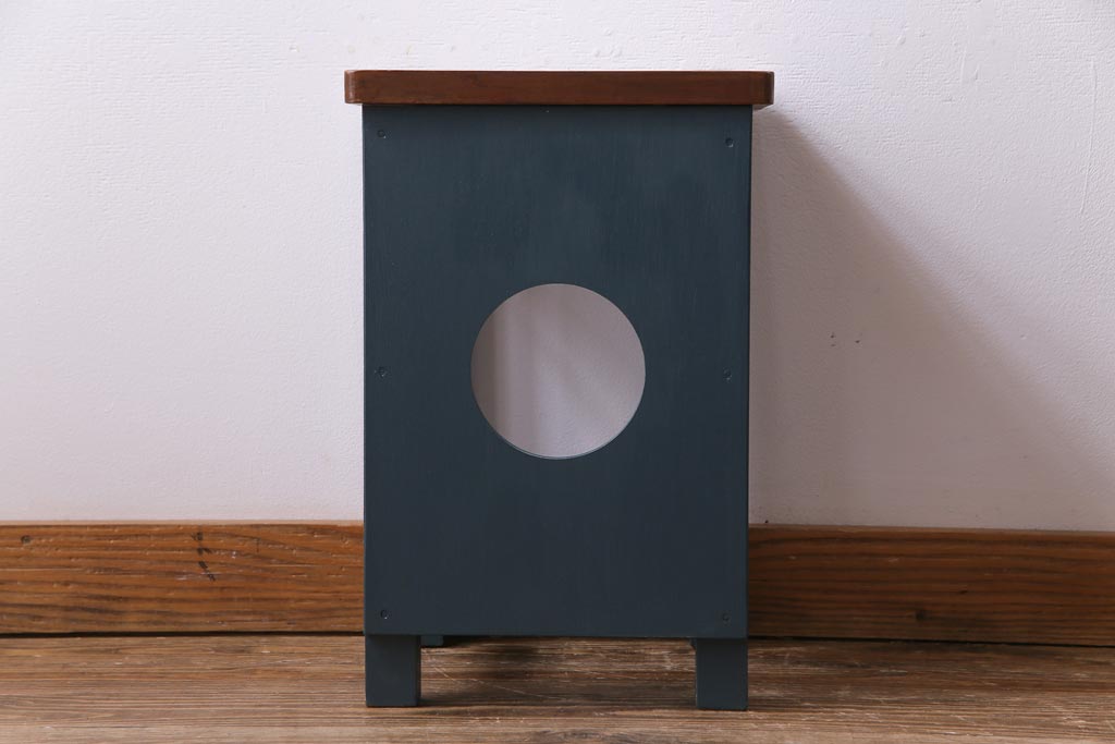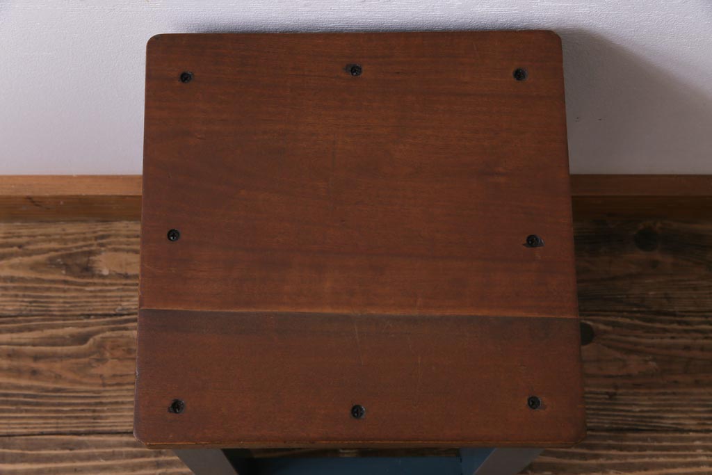 ペイント家具 メンズライクにもおすすめなネイビーカラーの学校スツール(角スツール、花台)(3)