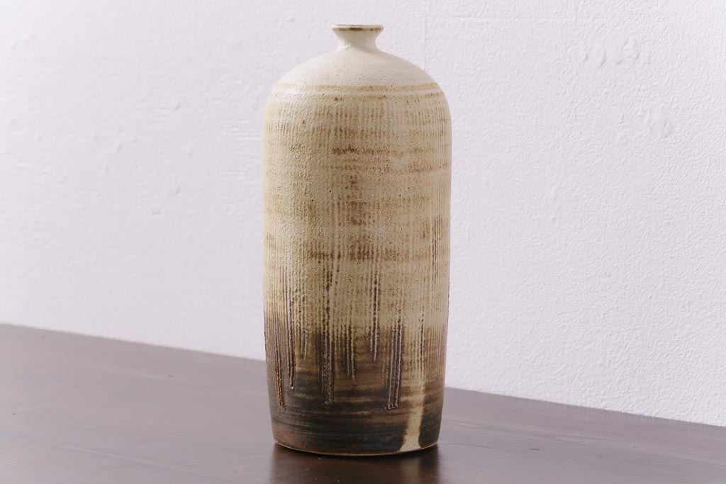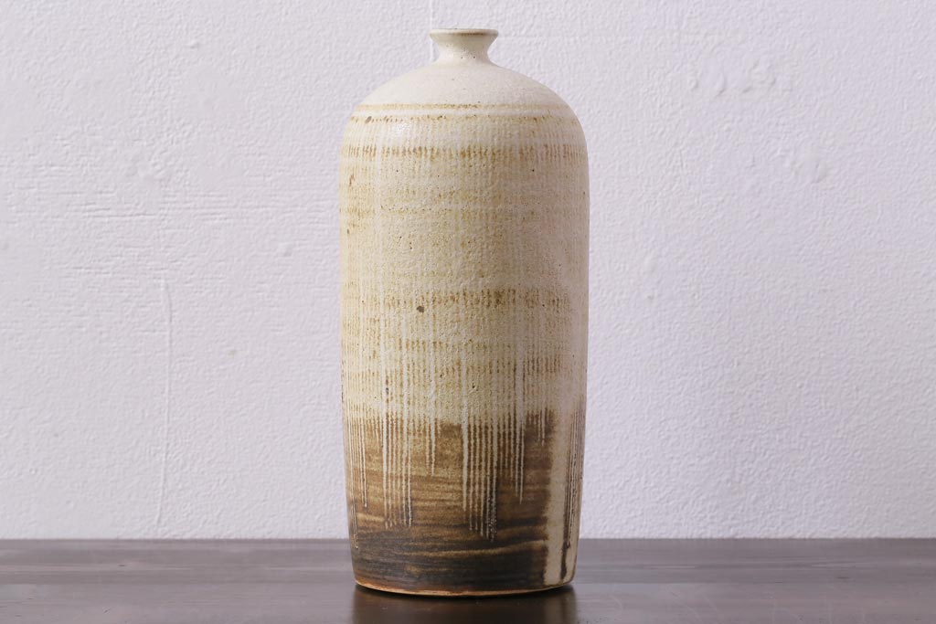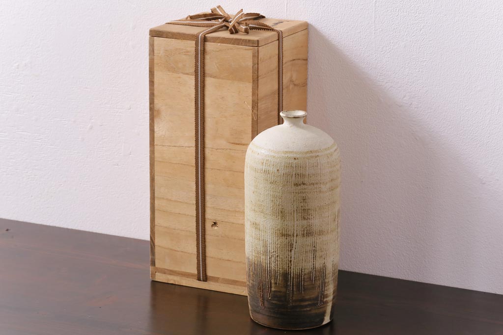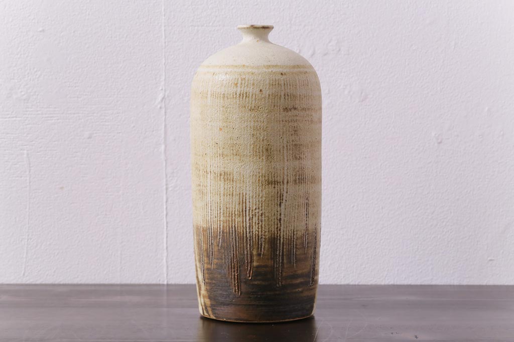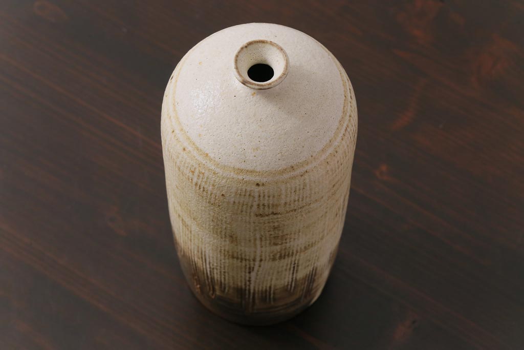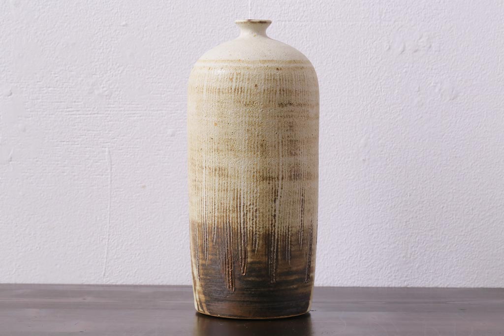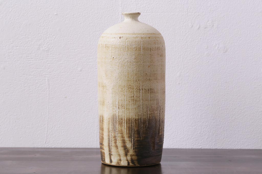 アンティーク雑貨 昭和期 笠間焼 記念品 荒田耕治作 一輪挿(花瓶、花器)(3)